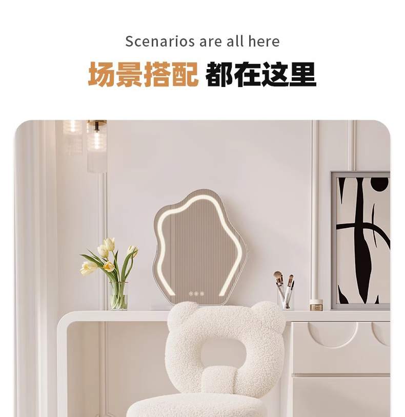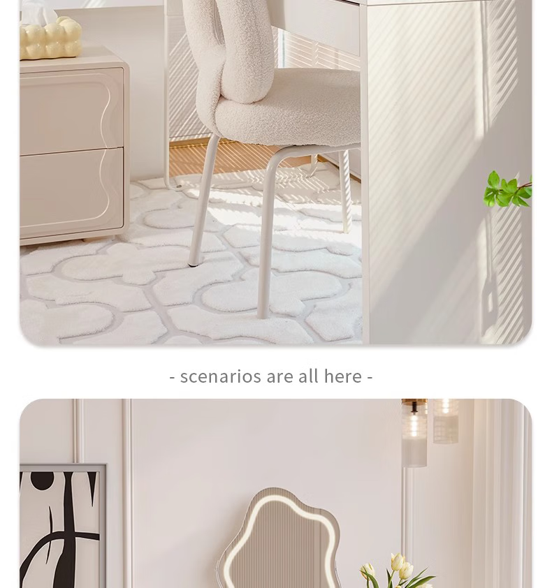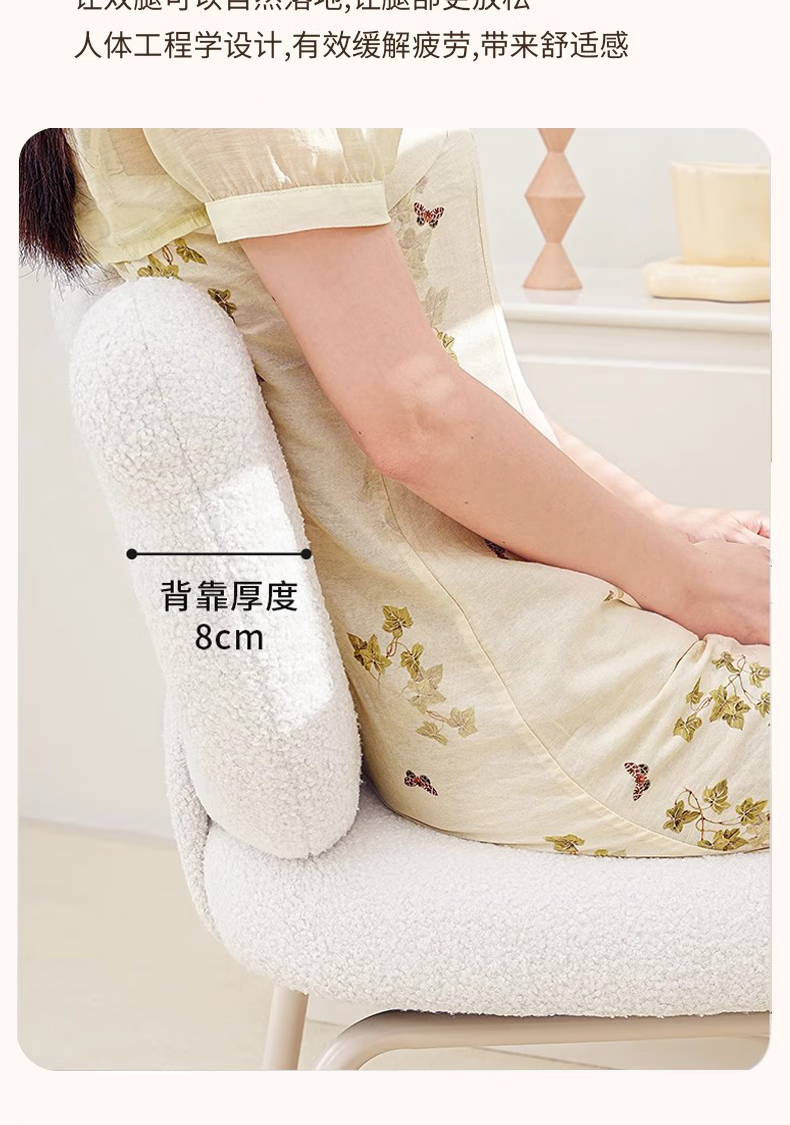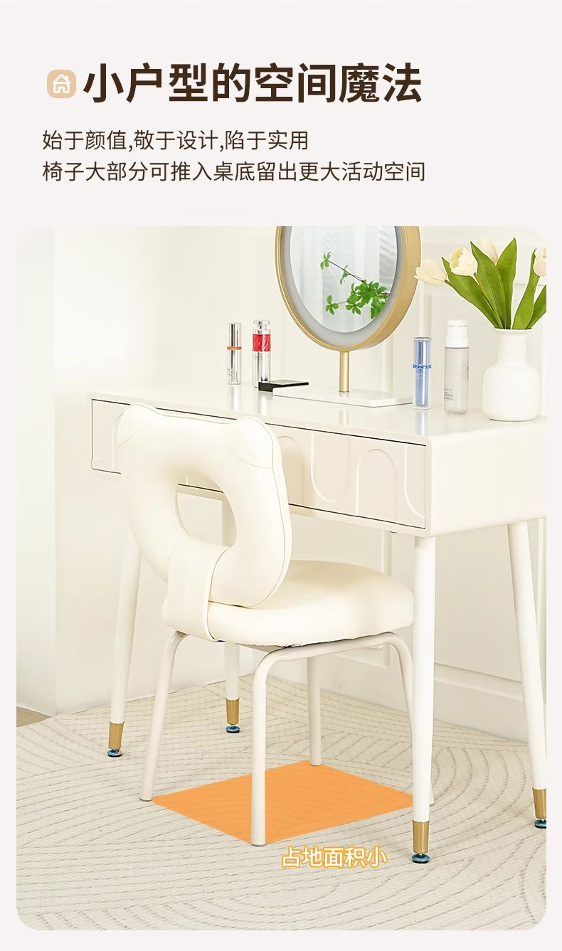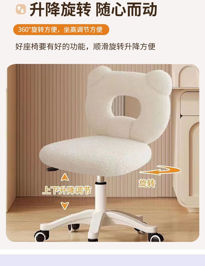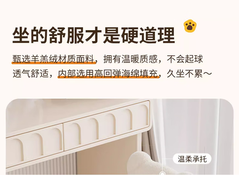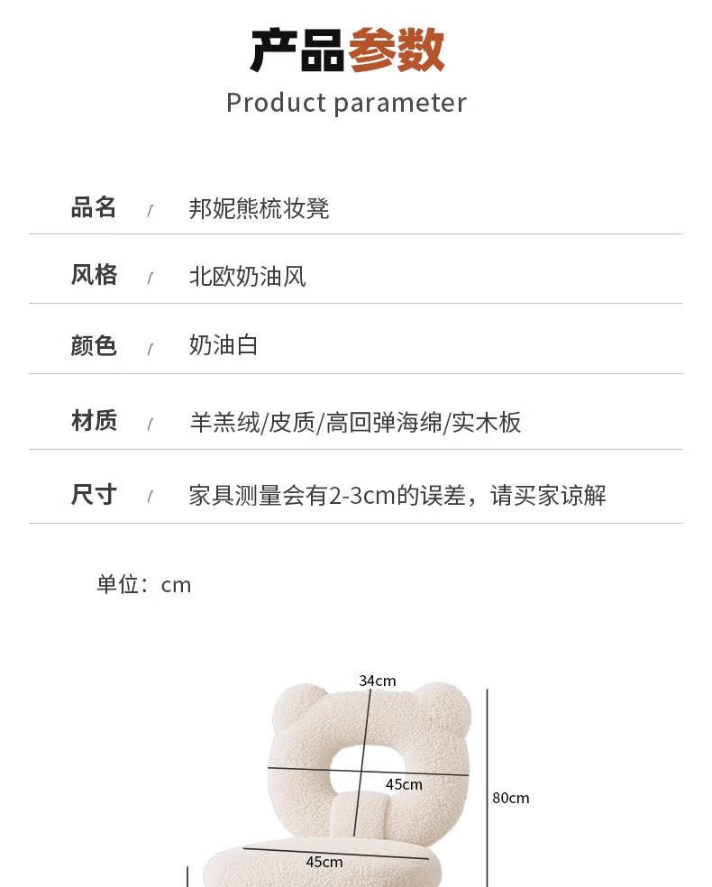 Guda makeup stool cream style makeup chair bedroom sherpa dressing table stool women's home backrest leisure office chair white sherpa fixed style