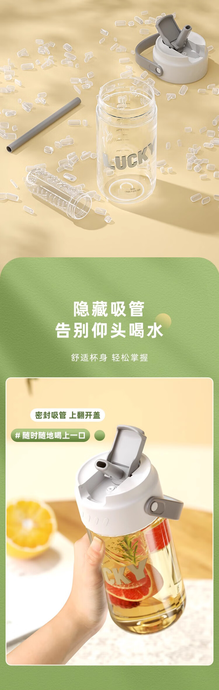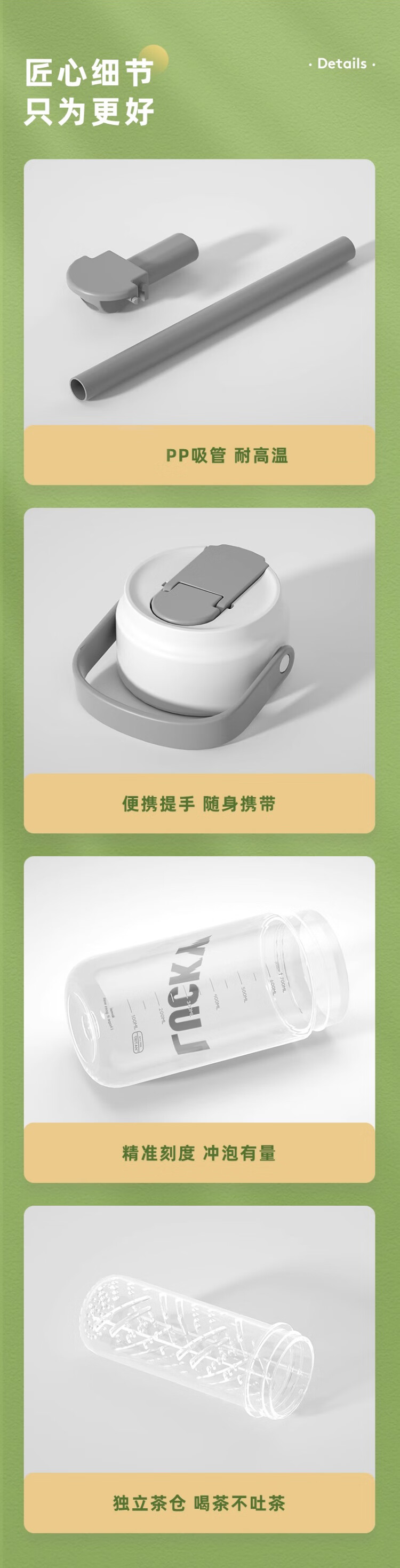 Wanjia full straw water cup female portable cup student cup large capacity plastic cup with tea separator tea cup flower tea cup white flower tea cup 800ml