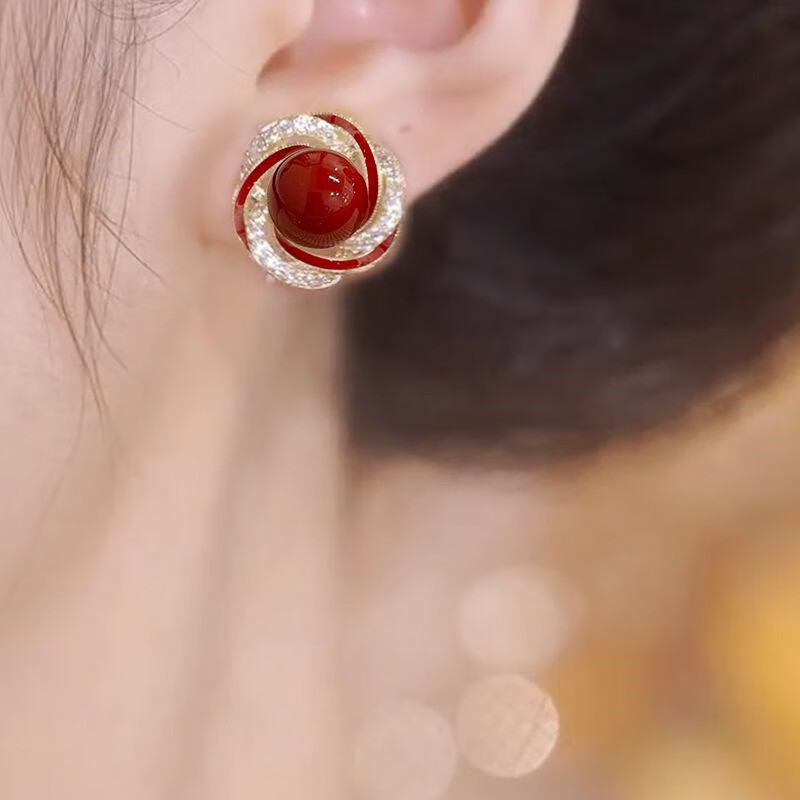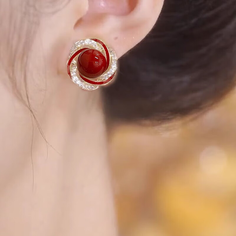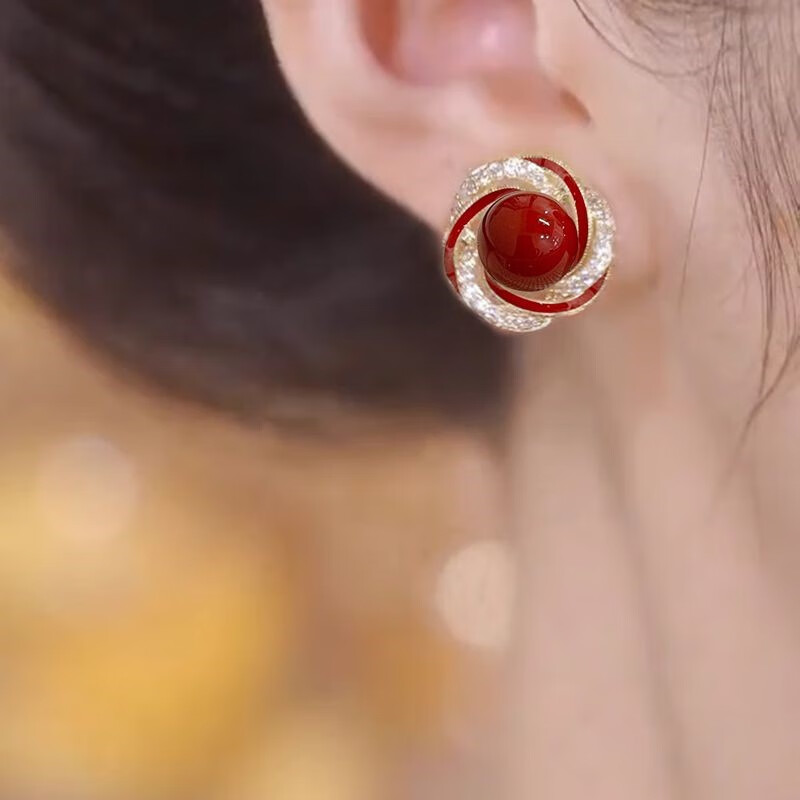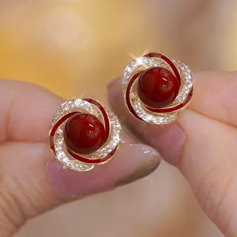 Yuman New Year red pearl earrings for women, exquisite and compact s925 silver needle earrings, elegant and temperament New Year sterling silver earrings, oil dripping pearl earrings, 925 silver needle