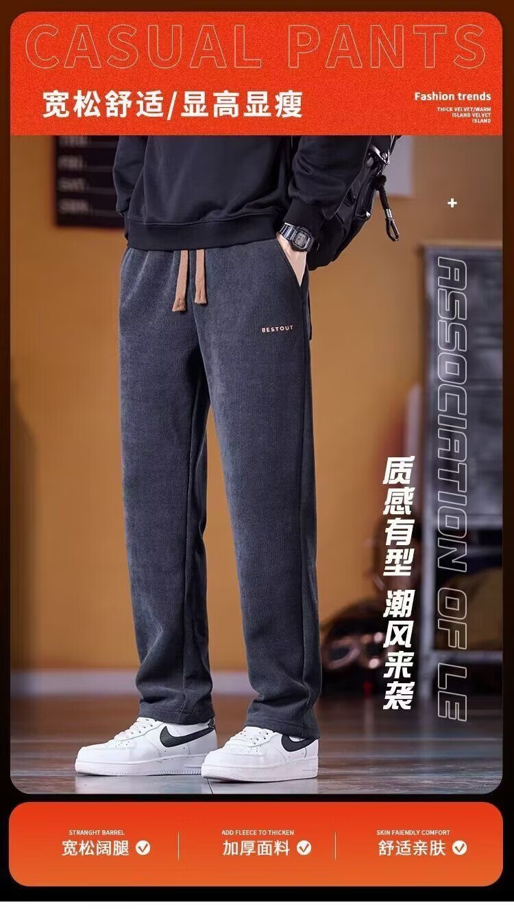 Cexi pants men's autumn and winter plus velvet warm loose men's casual pants large size work sweatpants straight trousers K45 black XL - recommended 110-140 Jin Jin is equal to about 0.5 kg