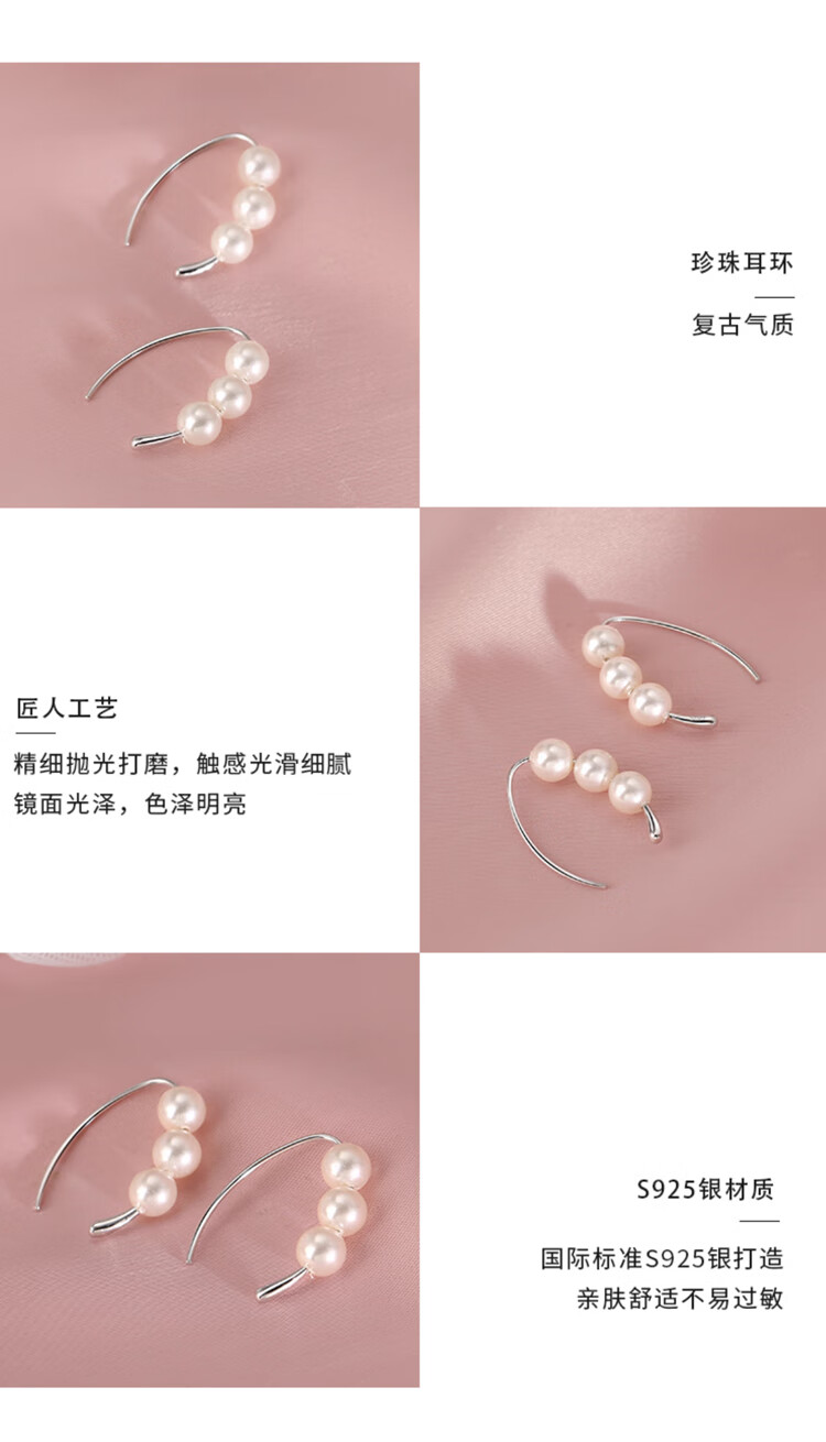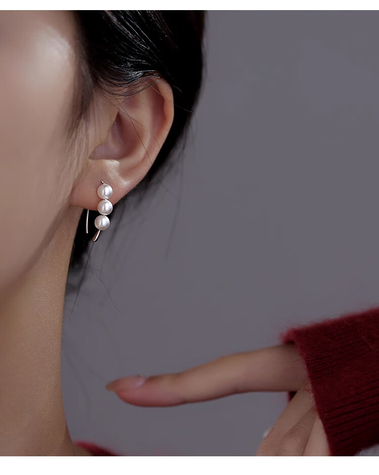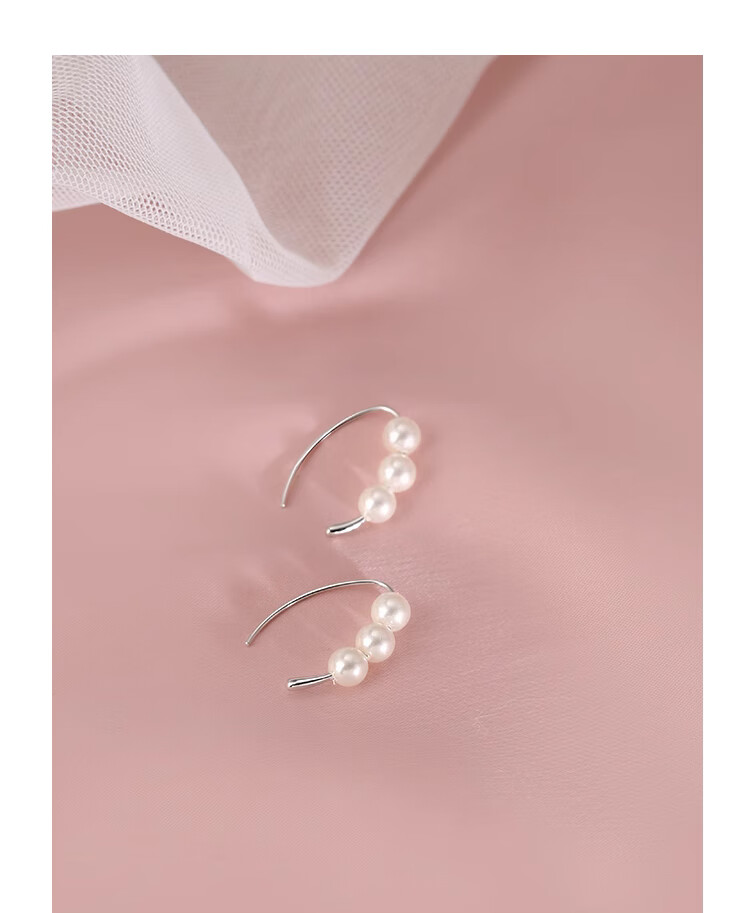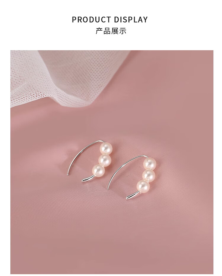 Lnieer S925 silver hook pearl earrings for women, simple temperament, anti-allergenic earrings, niche design ear hook earrings, hook pearl earrings, S925 silver