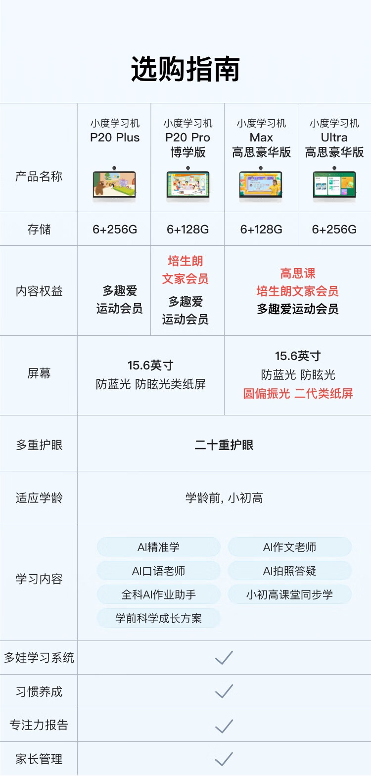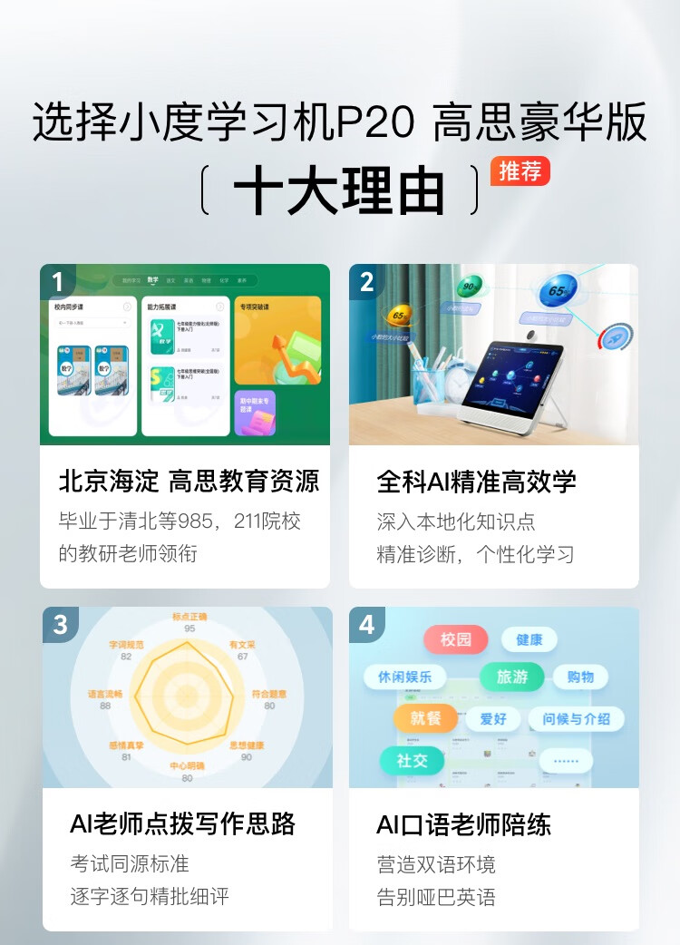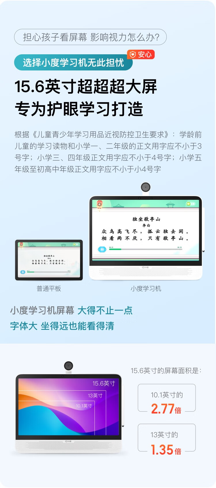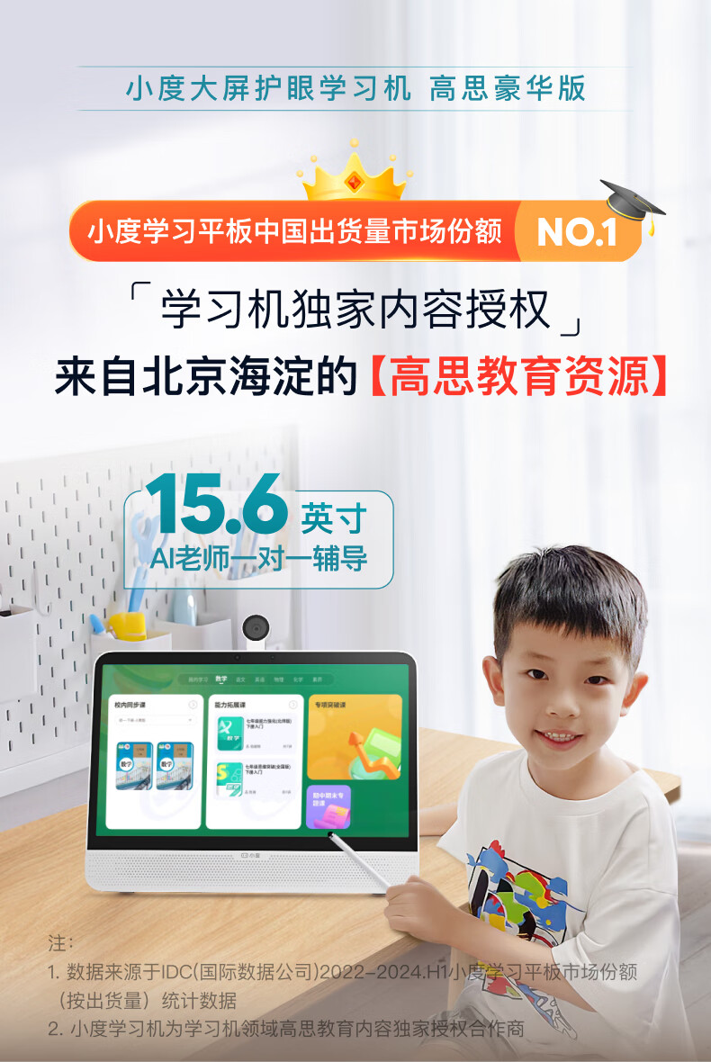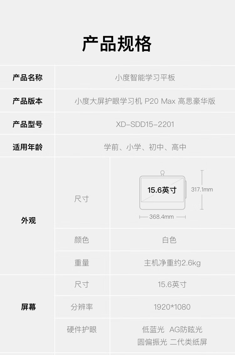 Xiaodu large-screen learning machine P20Max Gaosi Deluxe Edition 15.6-inch primary school to high school course student tablet computer early education machine learning and practicing all-in-one point reading machine tutoring machine Xiaodu P20Max Gaosi Deluxe Edition (6+128G)
