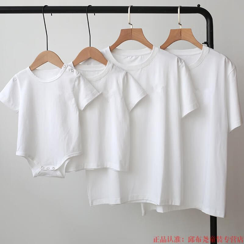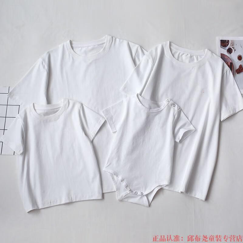 G.duck2025 white parent-child clothing for a family of three and four babies pure cotton short-sleeved T-shirt family photo studio photo T-shirt white T-shirt (fine cotton) adult L size (125-145Jin Jin is equal to 0.5 kg)