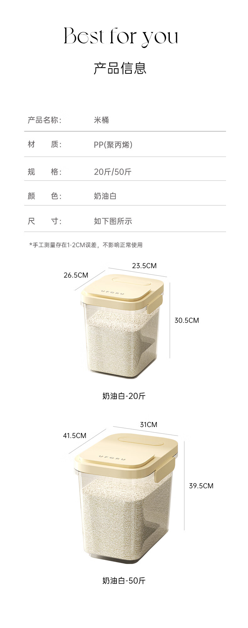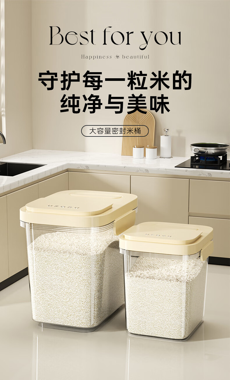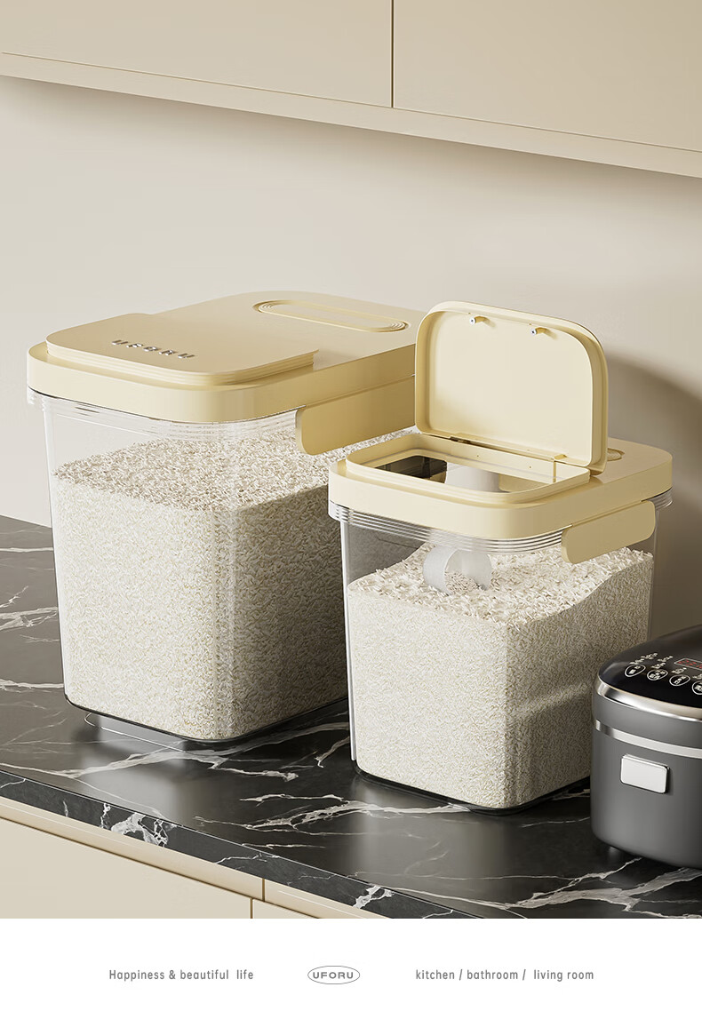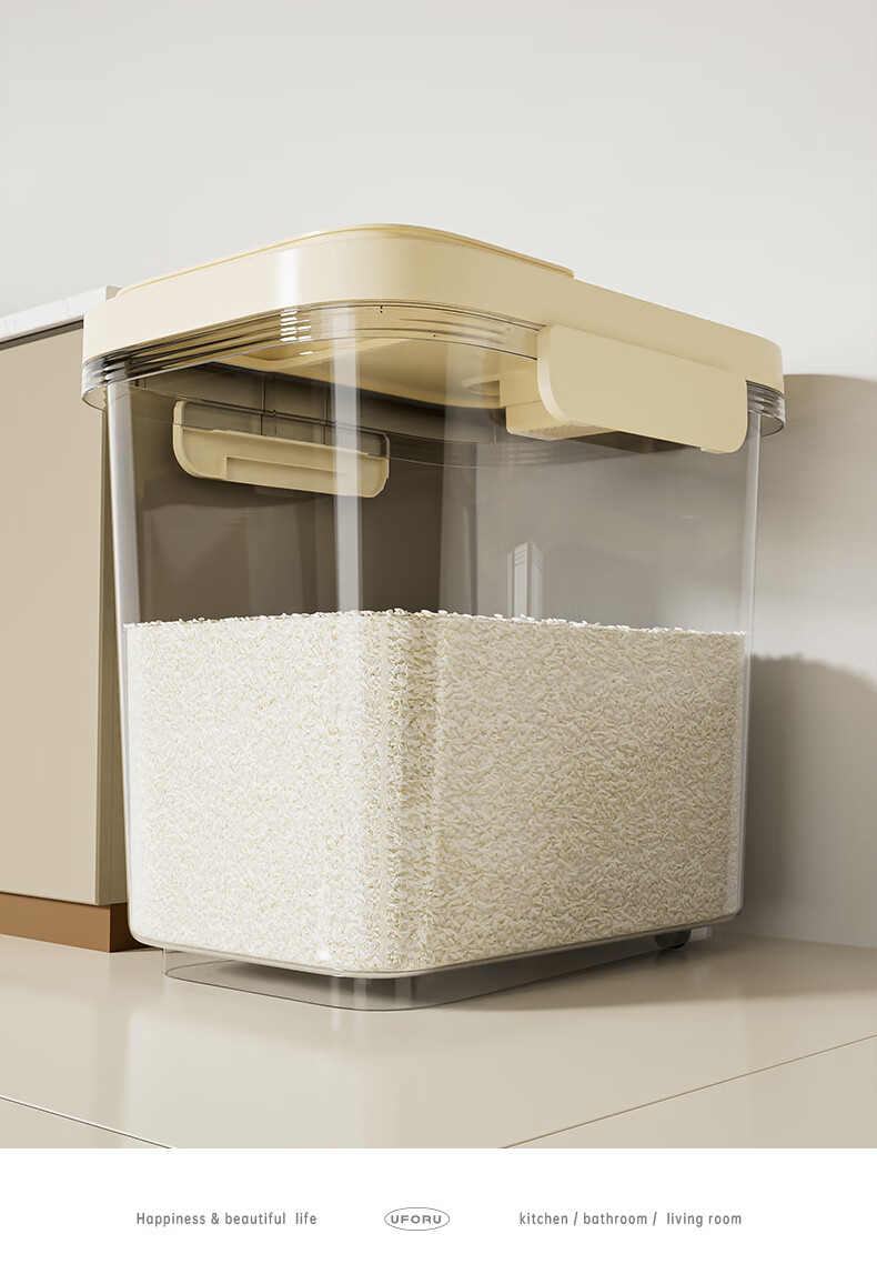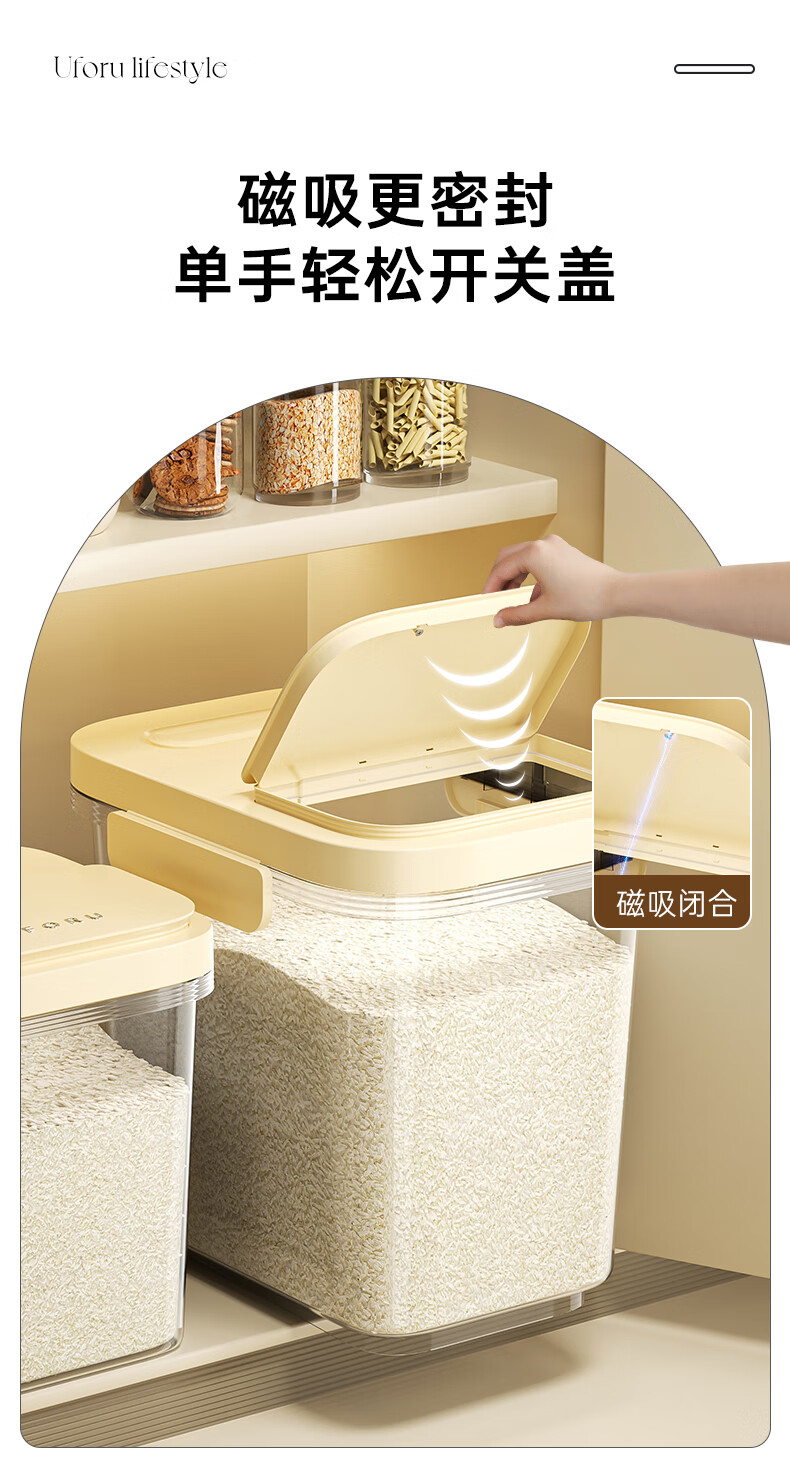 Cupboard Star Rice Bucket 20Jin Jin equals 0.5kg, contains 2026 new insect-proof and moisture-proof rice storage box, sealed surface barrel rice cylinder, household food-grade storage tank, cream white-20Jin Jin equals 0.5kg, magnetic opening lid, with measuring cup