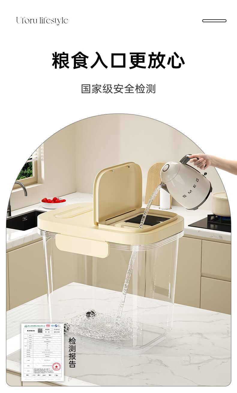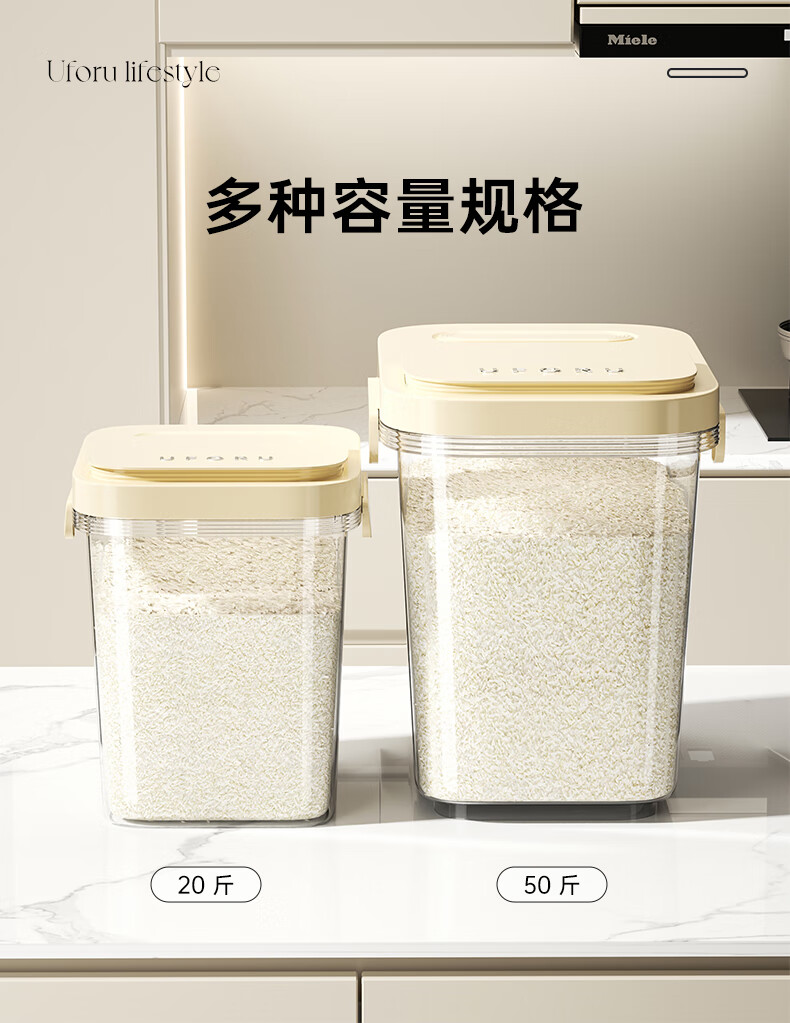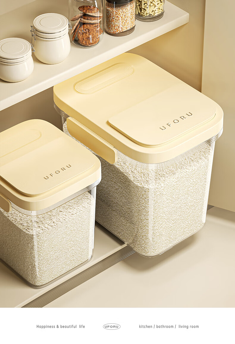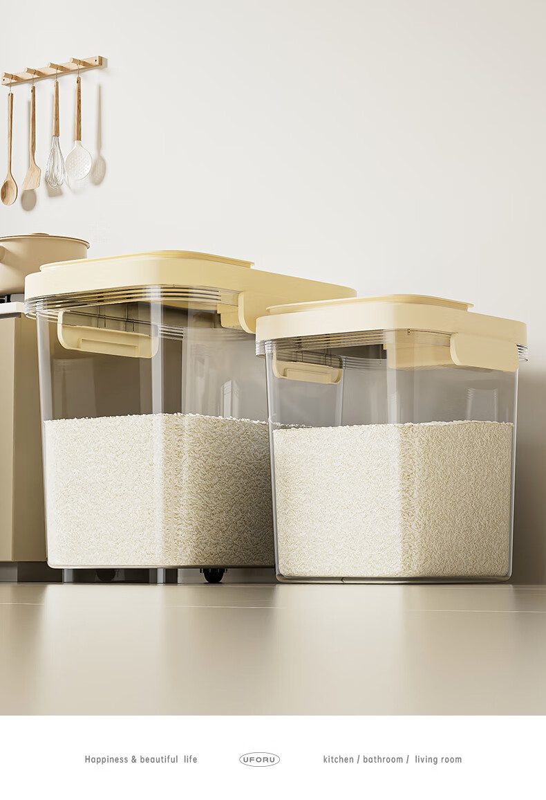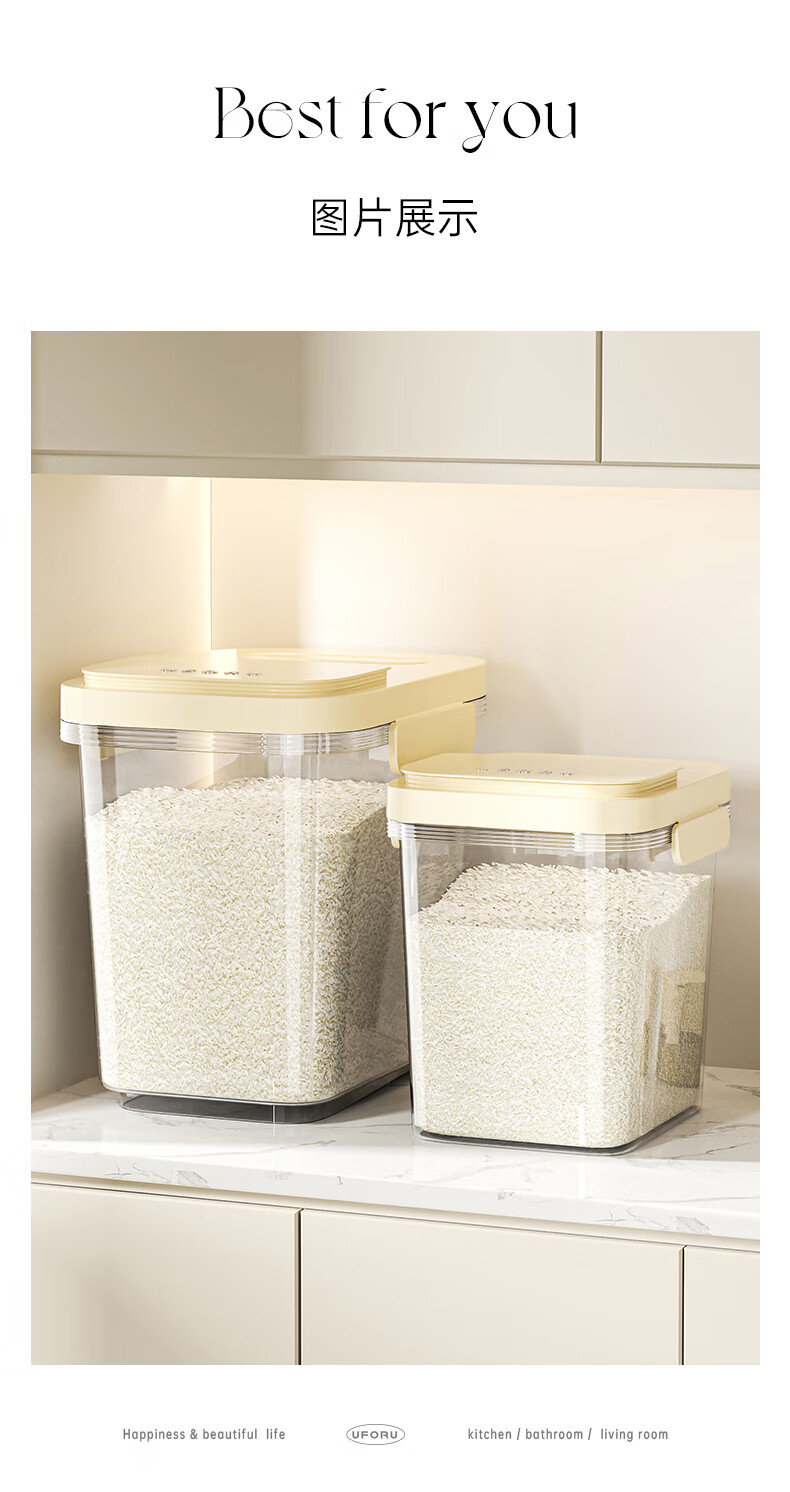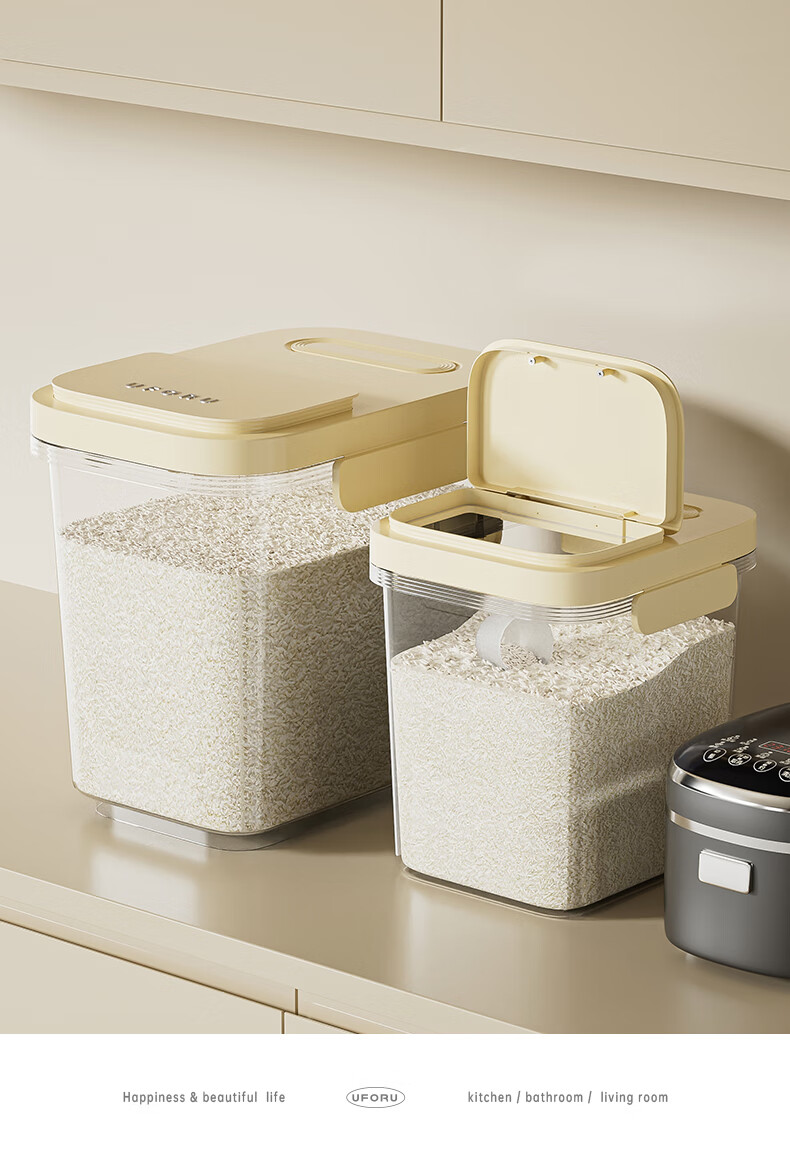 Cupboard Star Rice Bucket 20Jin Jin equals 0.5kg, contains 2026 new insect-proof and moisture-proof rice storage box, sealed surface barrel rice cylinder, household food-grade storage tank, cream white-20Jin Jin equals 0.5kg, magnetic opening lid, with measuring cup