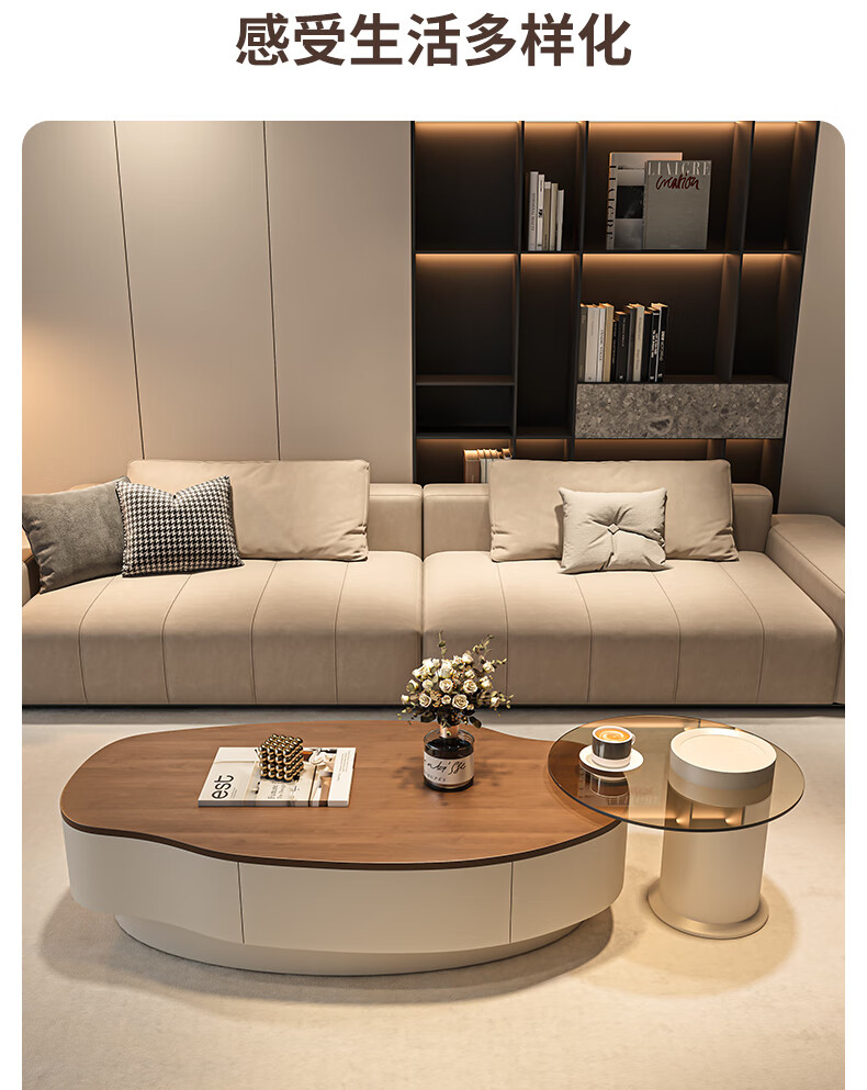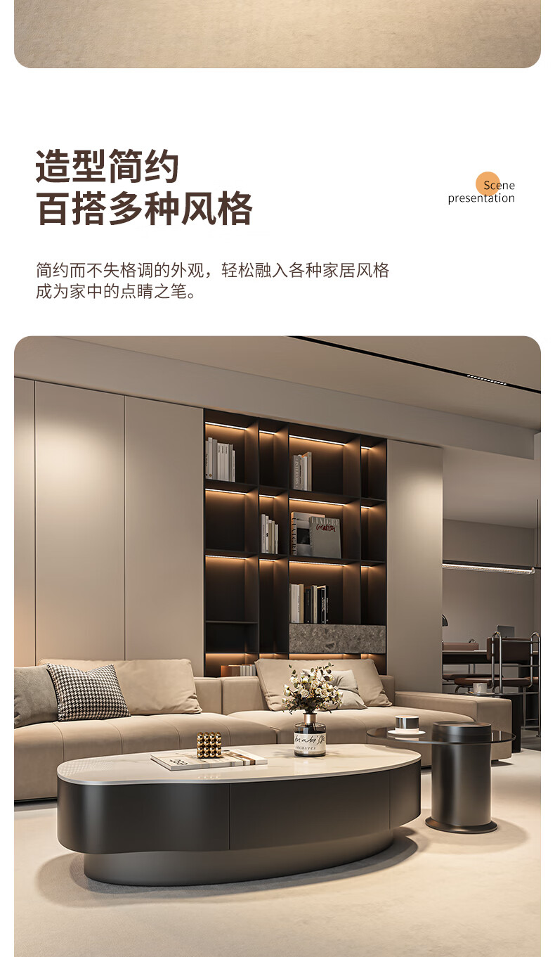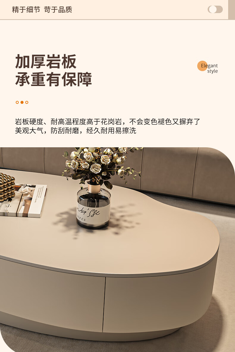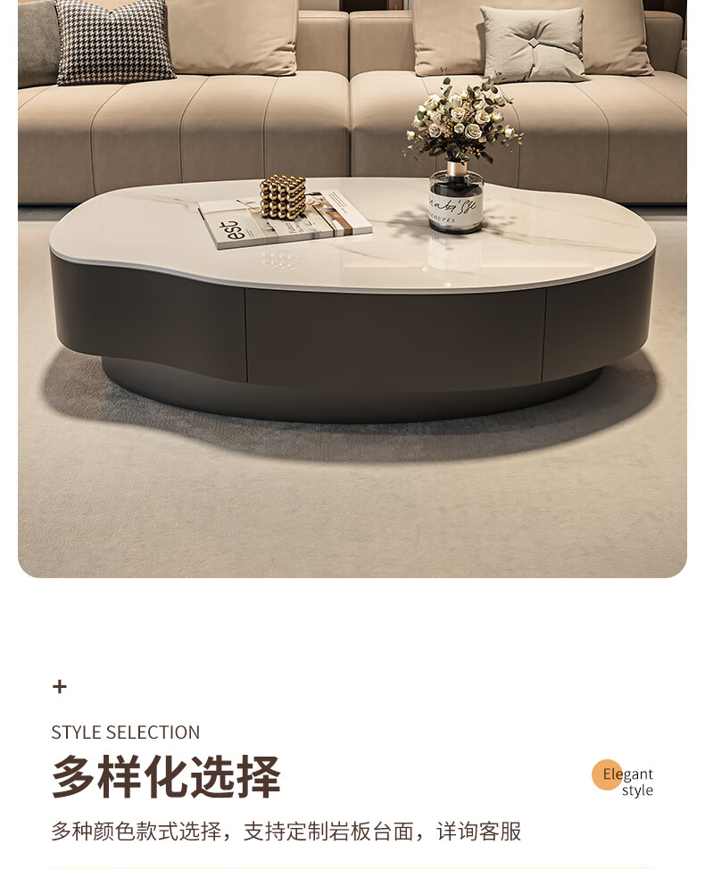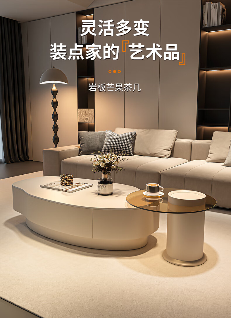 Seaworthy simple coffee table living room special-shaped combination slate coffee table dining table home high-end atmospheric size apartment light luxury tea table white frame white cabinet pure white slate 120