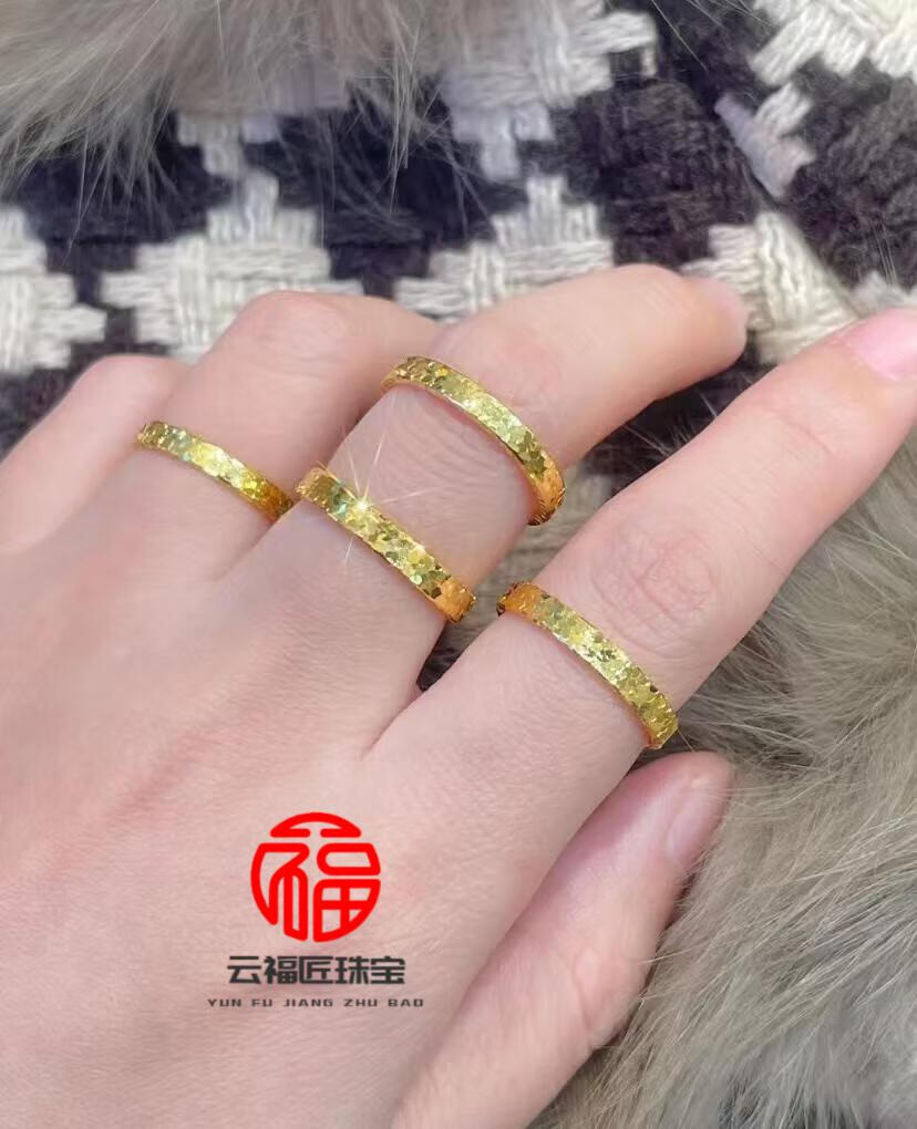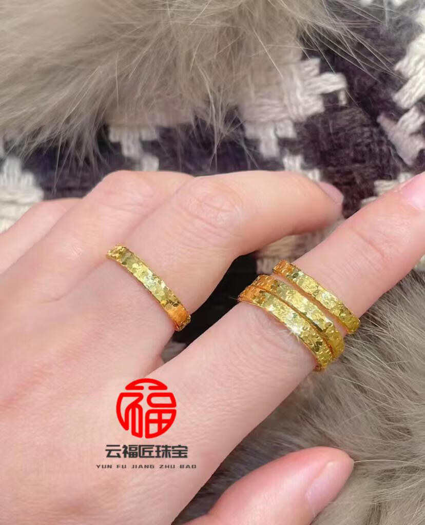 Fat Donglai's same style broken ice ring yellow l gold ring broken ice ice broken gold ring autumn and winter prosperous wealth ring super flash broken gold ring silver version plated with 24k gold opening adjustable