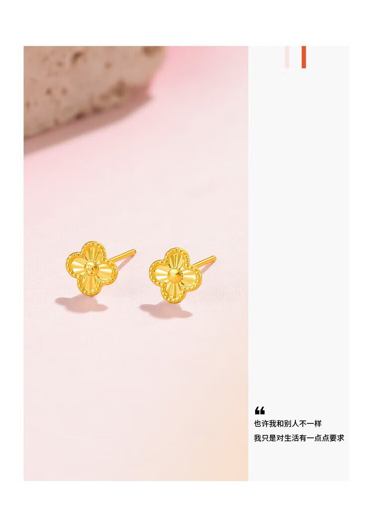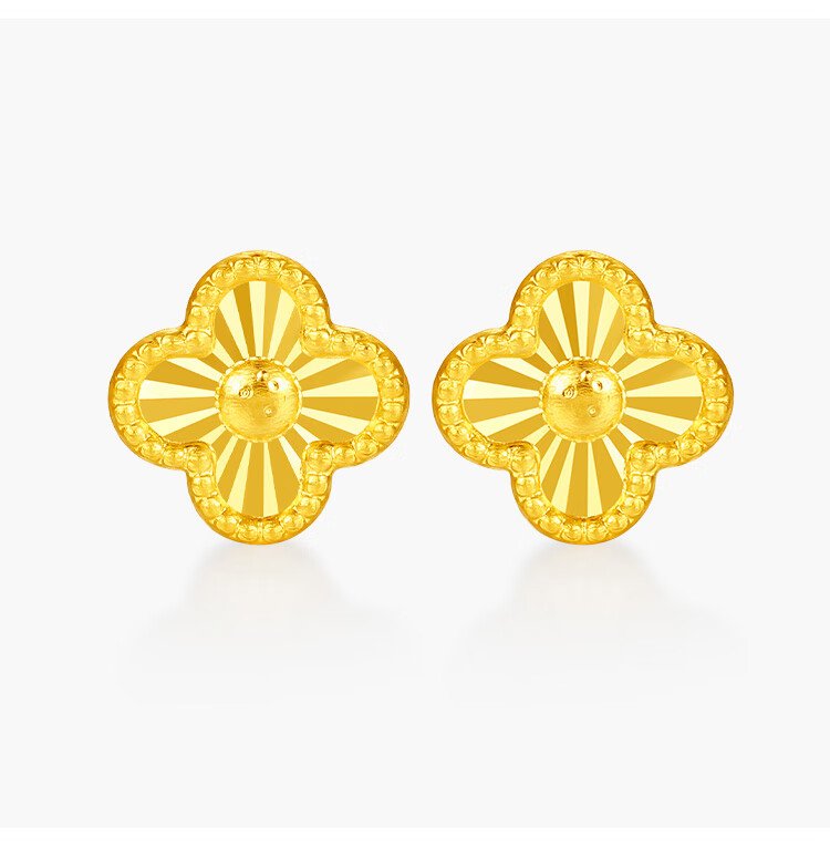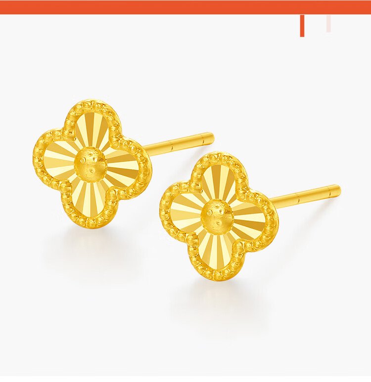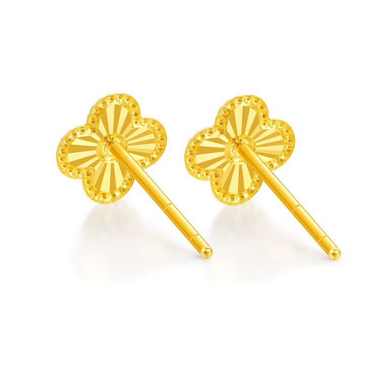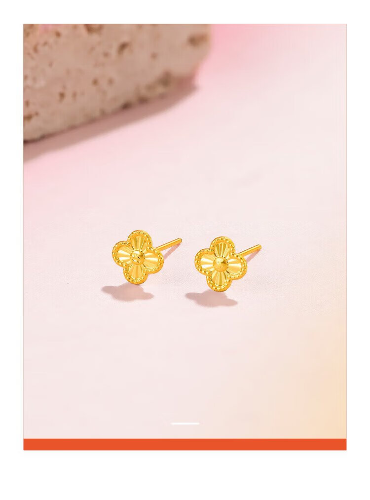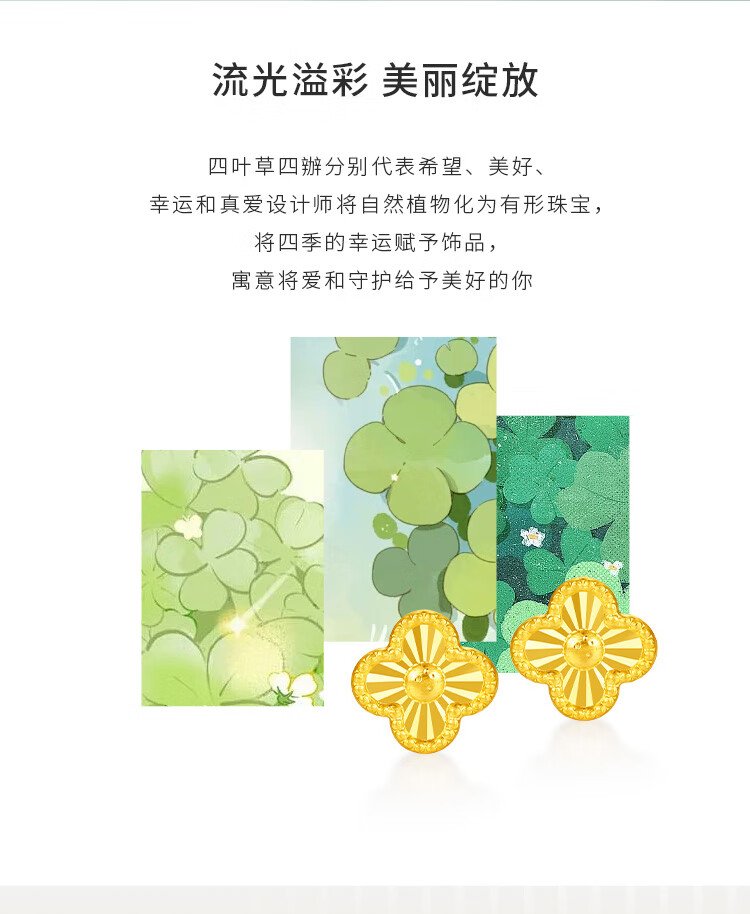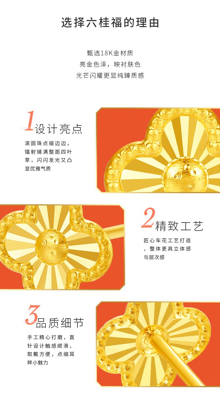 Liuguifu Jewelry Yellow 18K Gold Earrings Women's Dazzling Four-leaf Clover Colored Gold Earrings Birthday Gift About 0.1g + Brand Gift Box