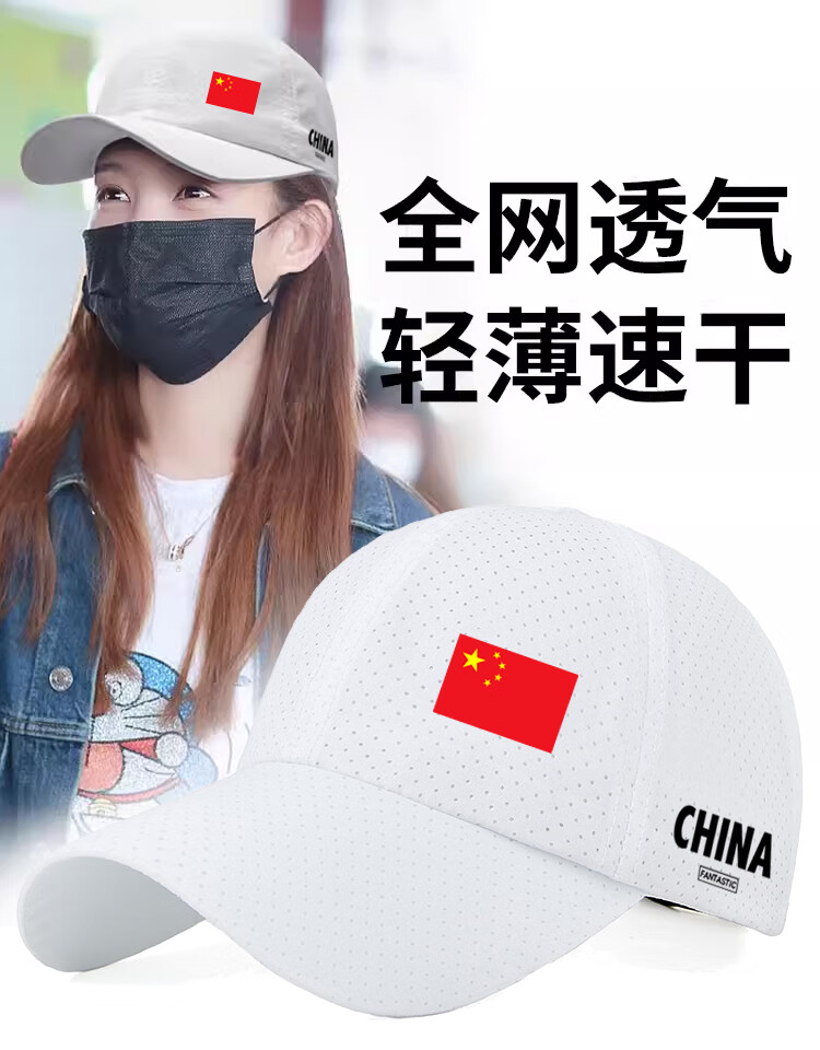 CHINA Chinese Hat Men's Sun Hat Outdoor Sun Protection Baseball Cap Casual Breathable Sun Hat Fishing Peaked Cap Black Red Flag CHINA Mesh Adult Version Adjustable 52-64cm
