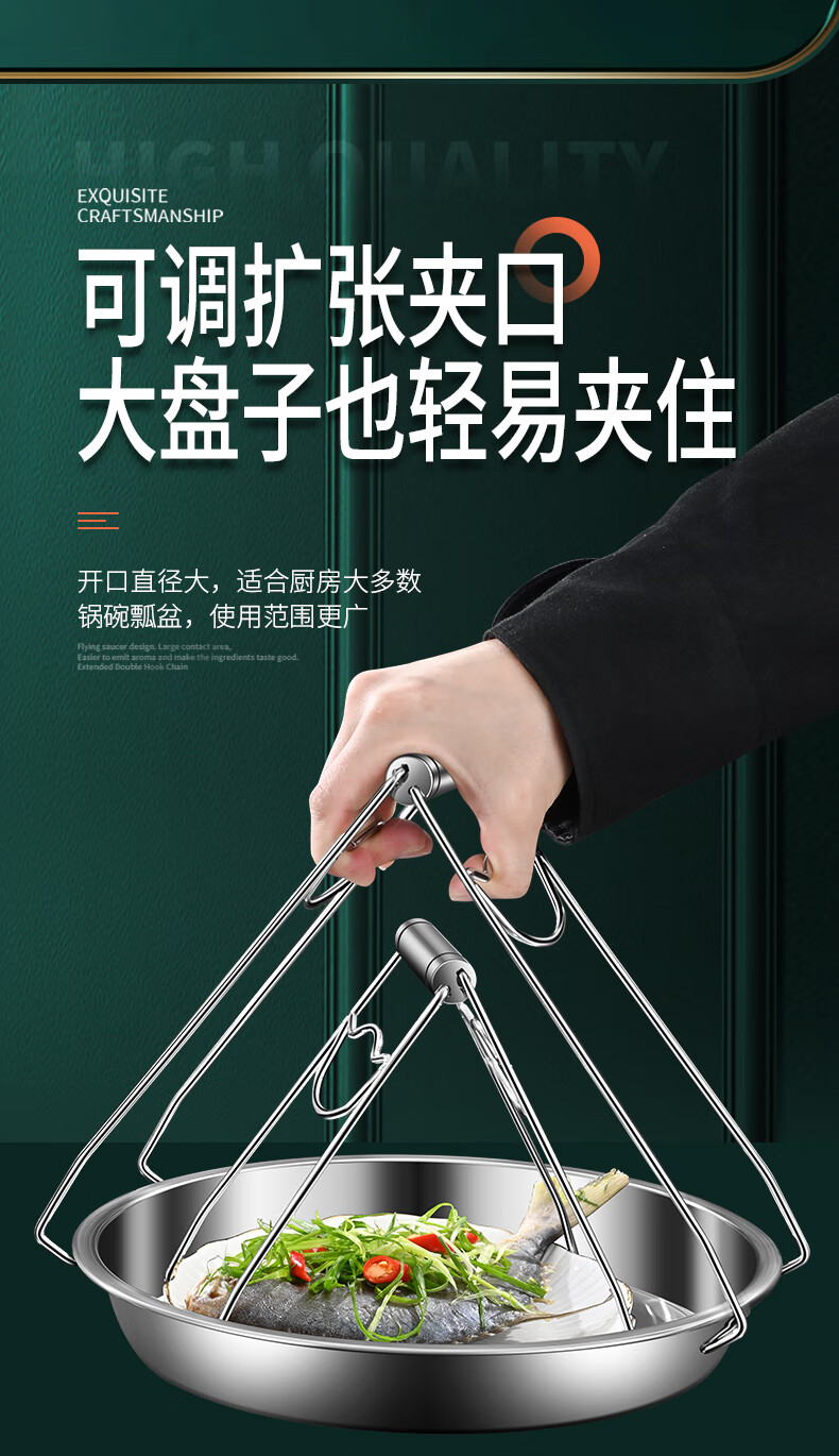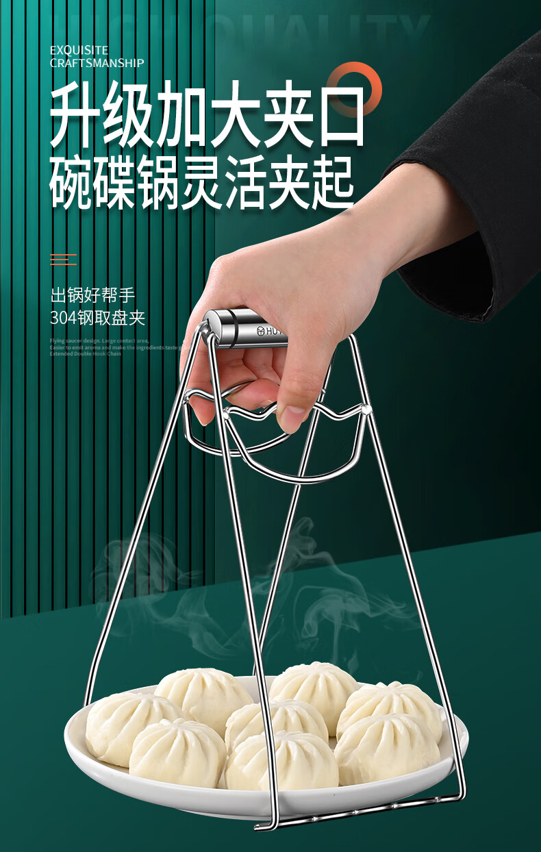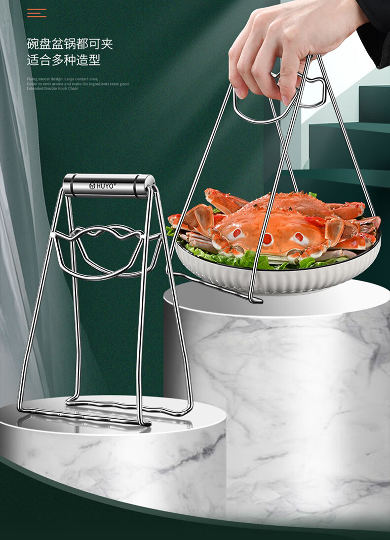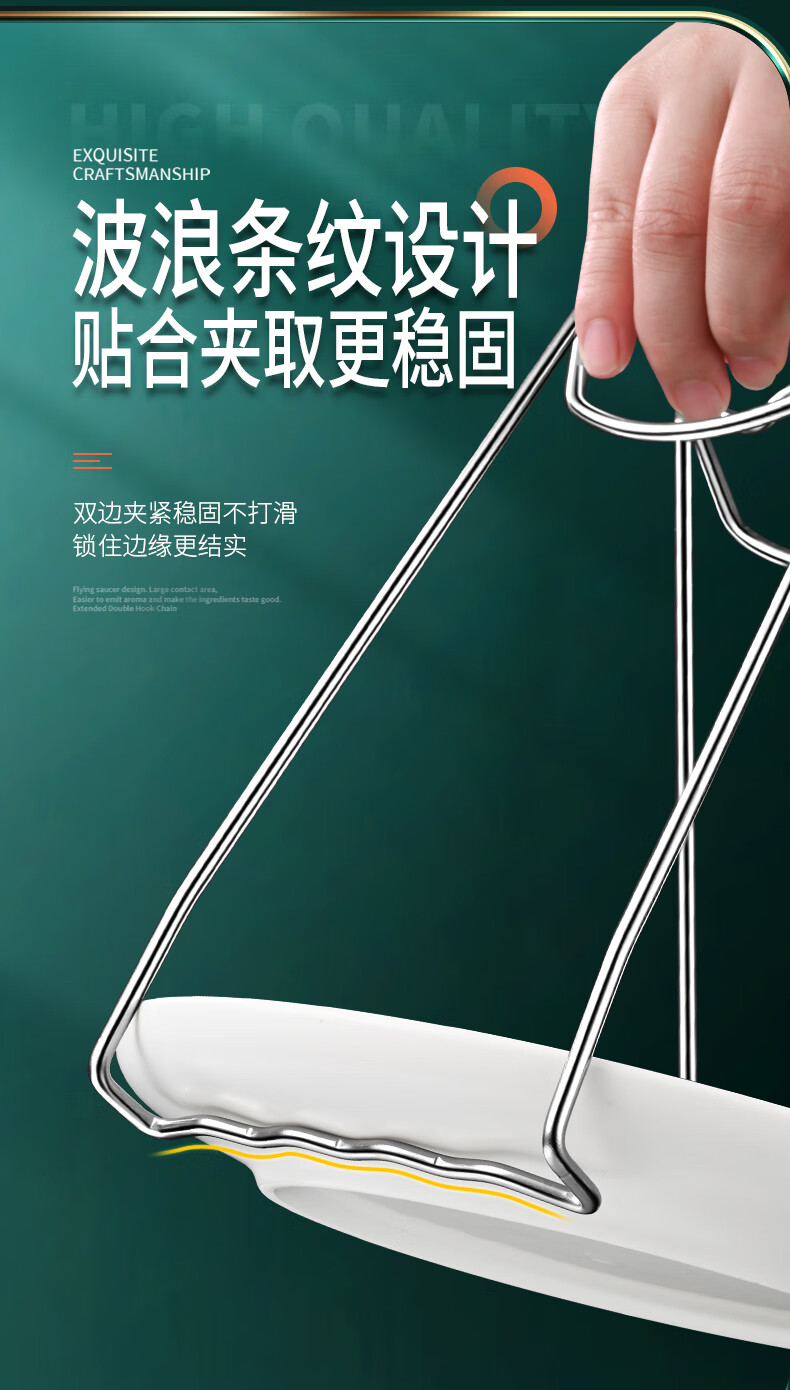 HUYO304 stainless steel anti-scalding bowl clamp kitchen steamer steamer vegetable clamp plate lifter extended anti-slip dish clamp artifact thick 304 steel extra large 90% selection