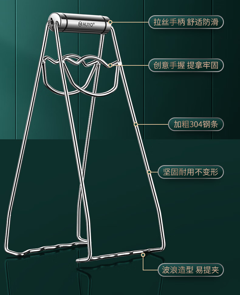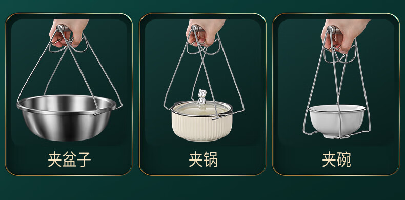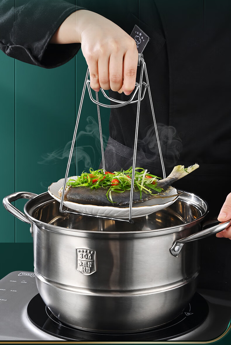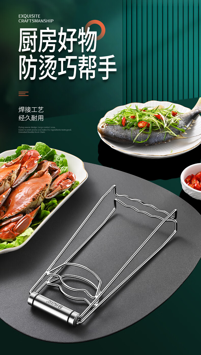 HUYO304 stainless steel anti-scalding bowl clamp kitchen steamer steamer vegetable clamp plate lifter extended anti-slip dish clamp artifact thick 304 steel extra large 90% selection