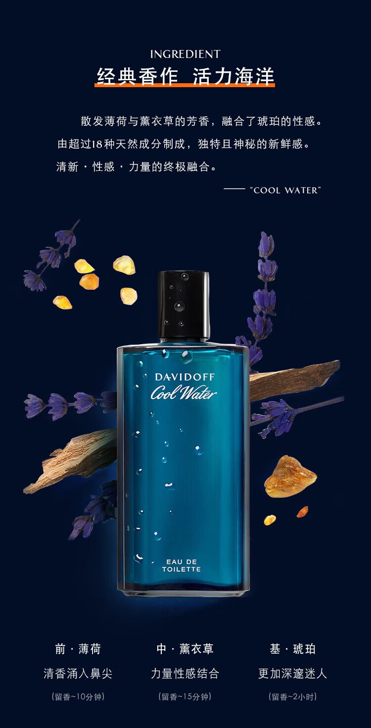 Davidoff Cold Water Men's Eau de Toilette Fresh Marine Fragrance New Year Gift for Boyfriend Birthday Gift Holiday Gift Cold Water Men's Perfume 40ml