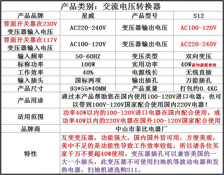 Power transformer Xingwei 220 to 110V bidirectional transformer high power 100W voltage converter