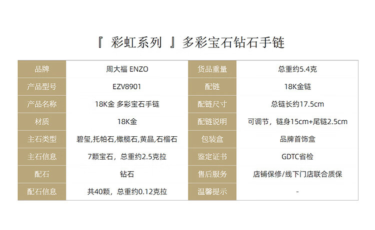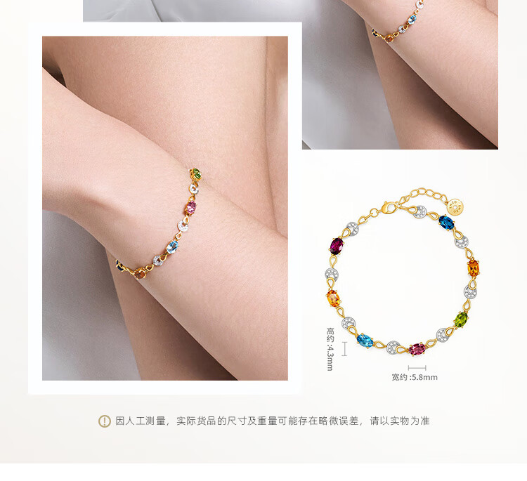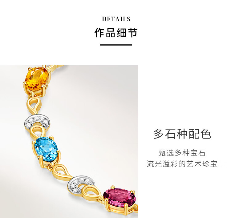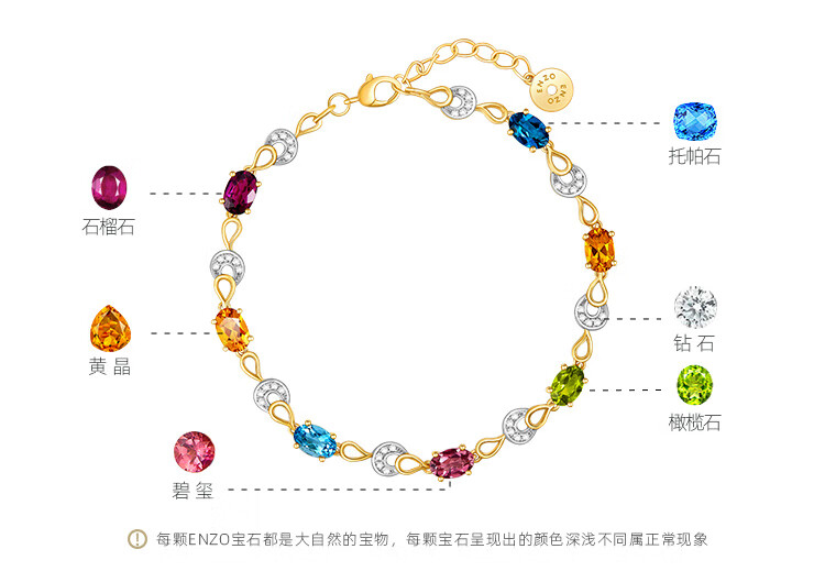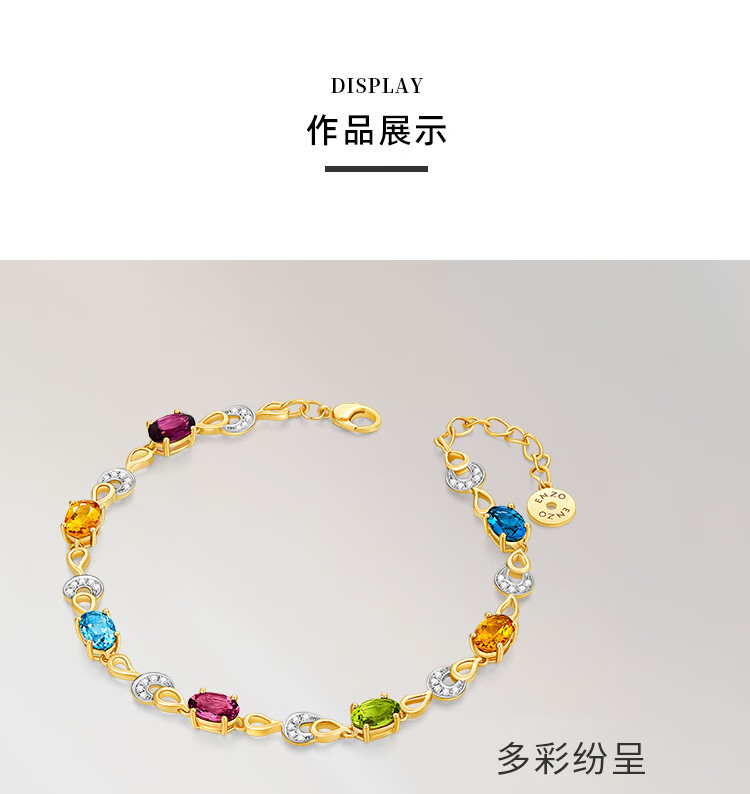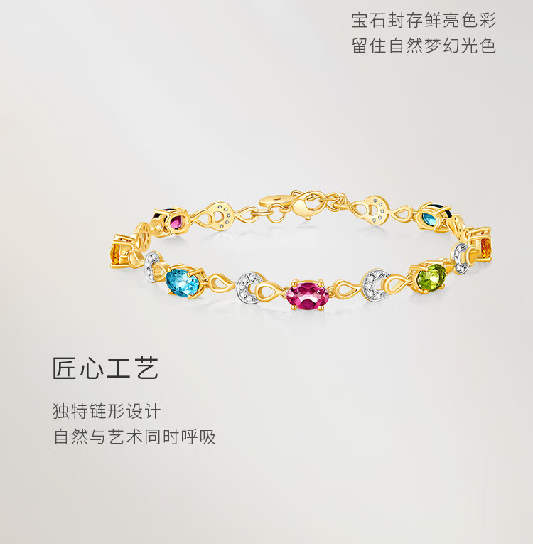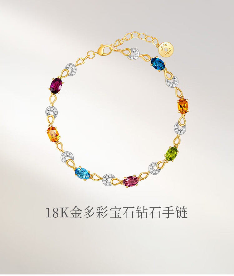 Chow Tai Fook ENZO Neon Carnival 18K Gold Colorful Gemstone Diamond Bracelet Women EZV8901 Birthday Gift 15cm