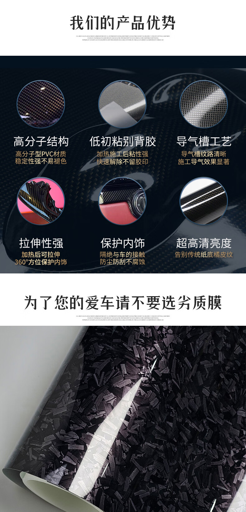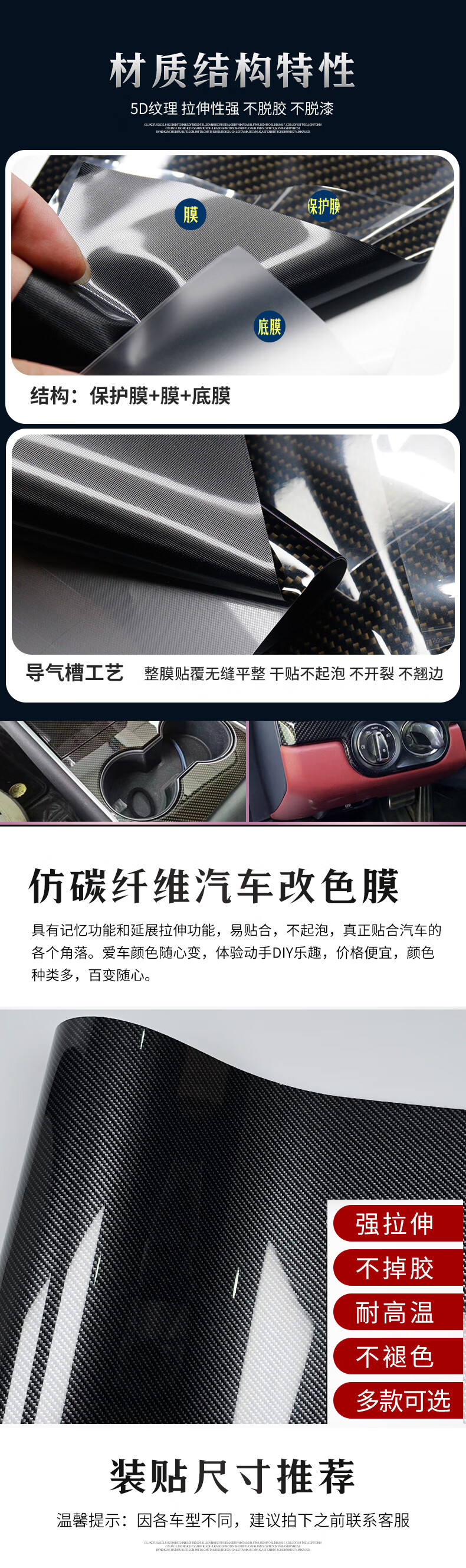 Orlisto pet car simulation forging 6d carbon fiber interior sticker high temperature resistant central control interior rearview mirror color changing film PET6D carbon fiber black 30CM wide * 1 meter