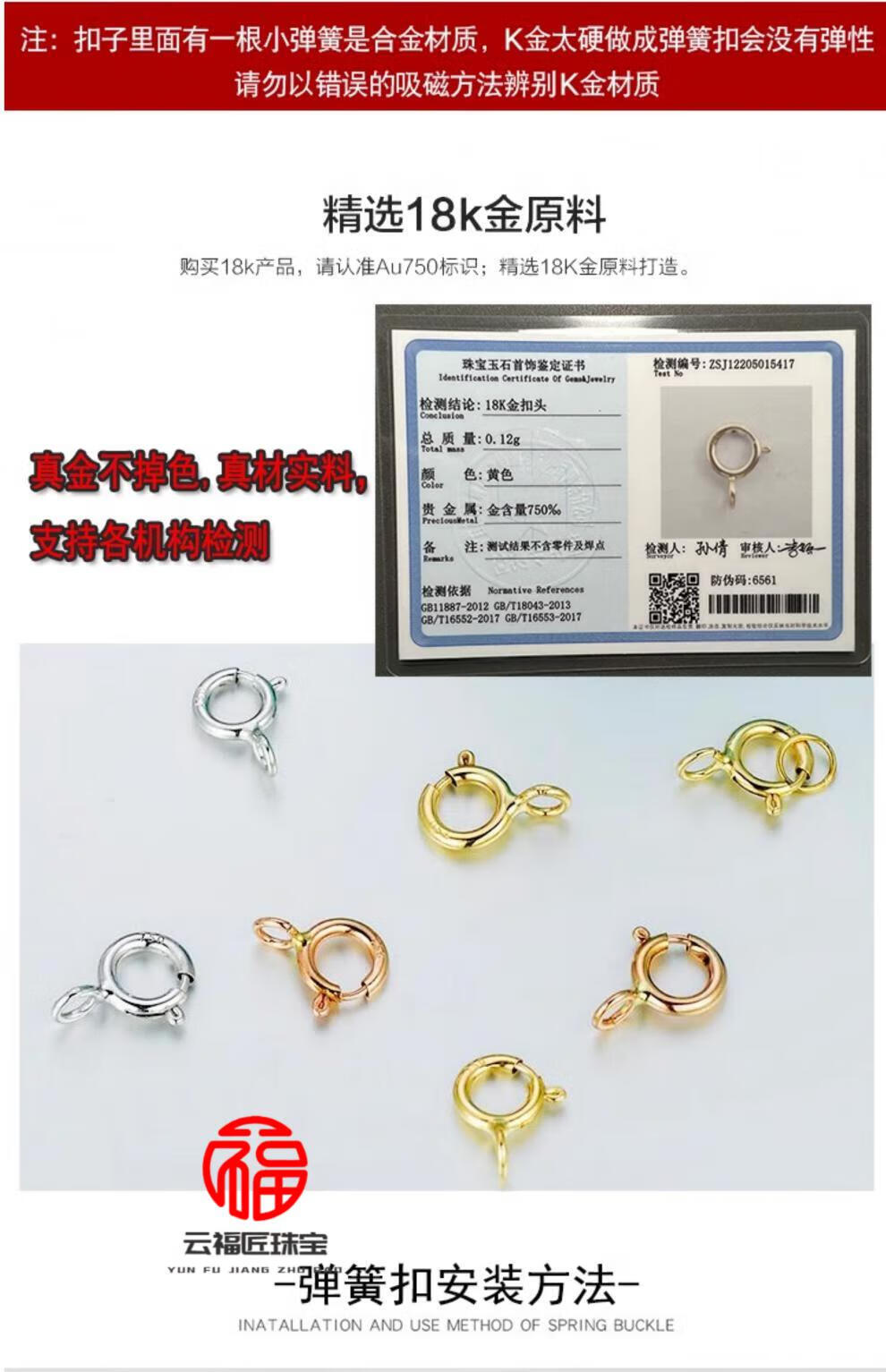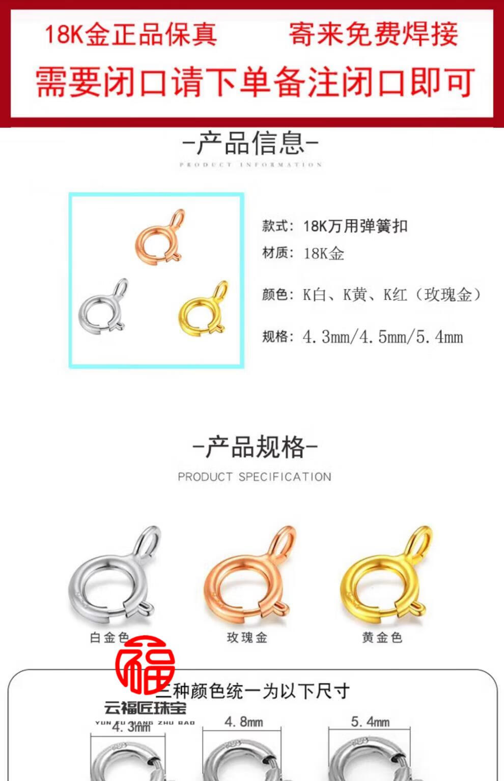 Fat Donglai's same style k gold spring buckle head 18k gold necklace buckle head bracelet buckle universal buckle color gold rope buckle rose gold K white (4.3mm)