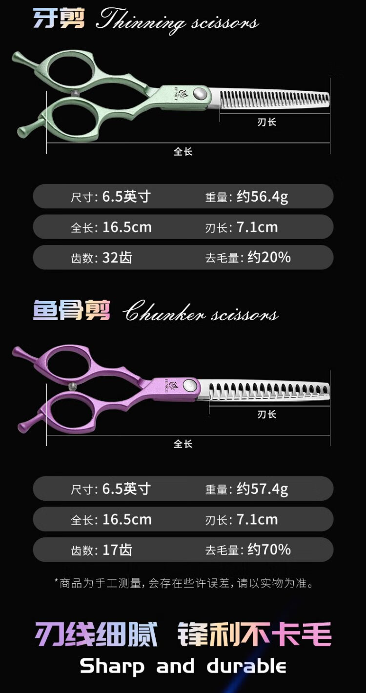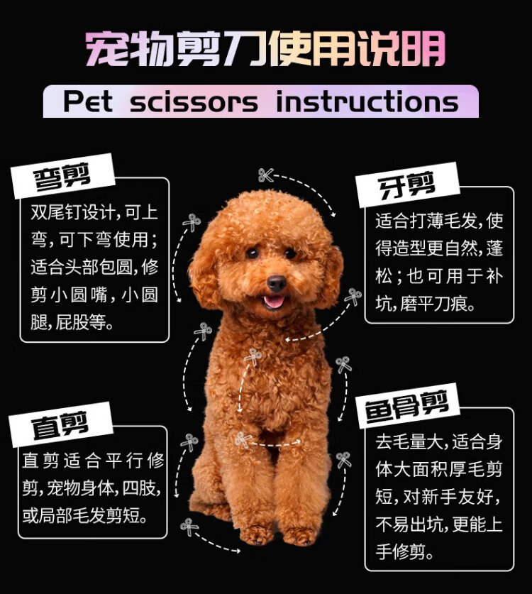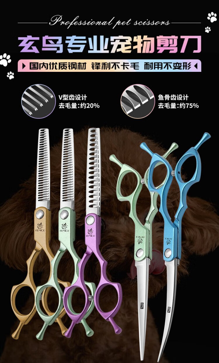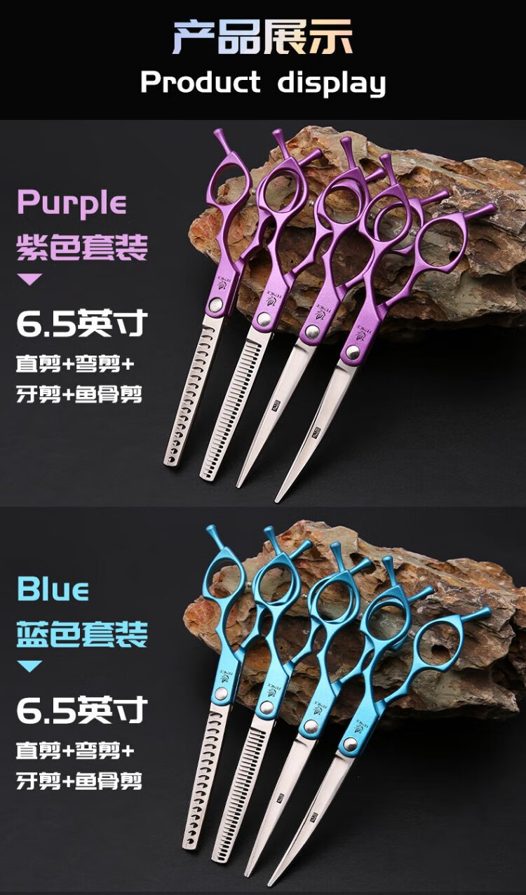 Black Bird Pet Scissors Dog Hair Cutting Haircut Scissors Straight Cutting Curved Cutting Dog Hair Professional Grooming Sharp Puppy Scissors Set Curved Scissors Purple 6.5 Inch Household Grade 9CR Steel