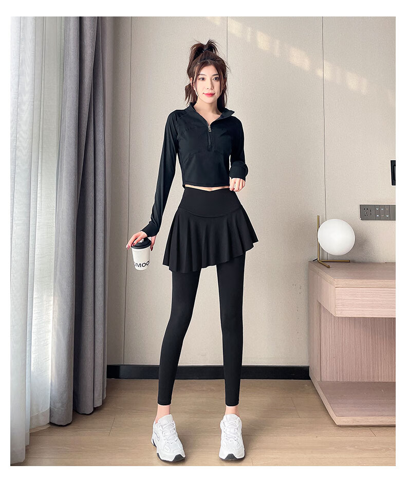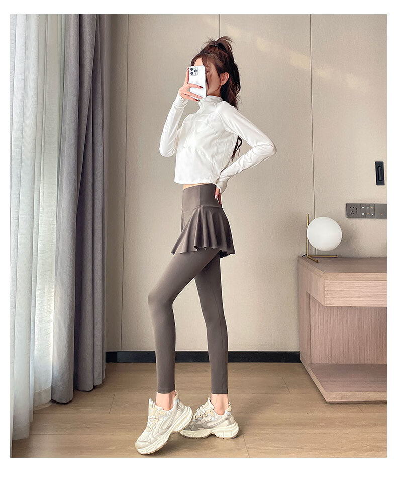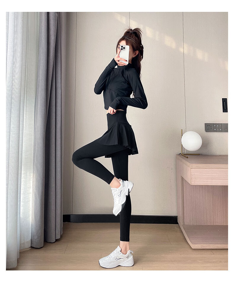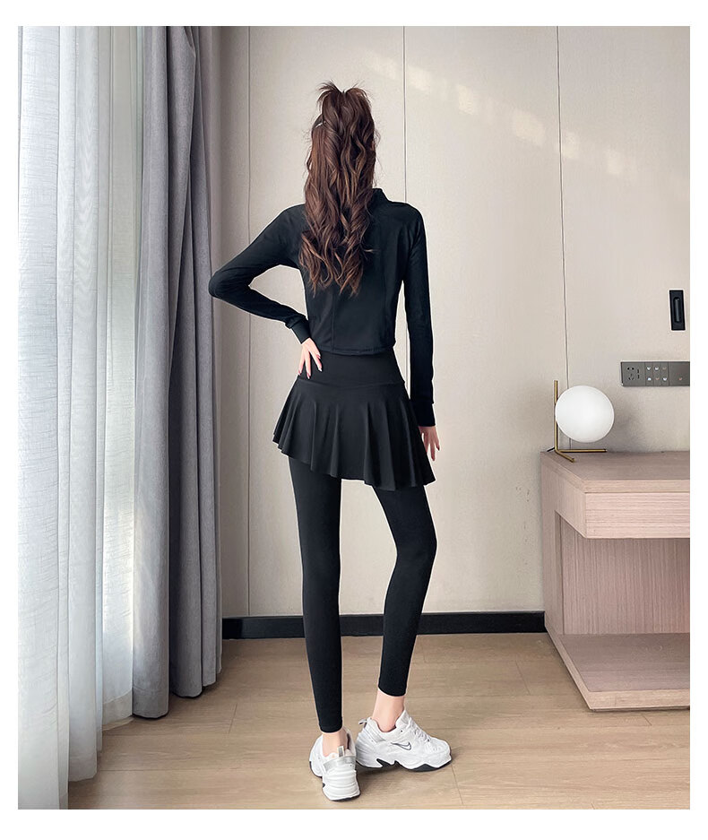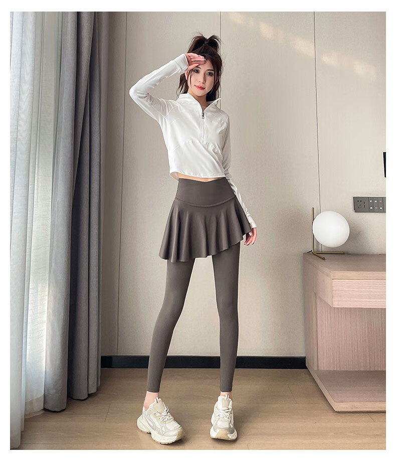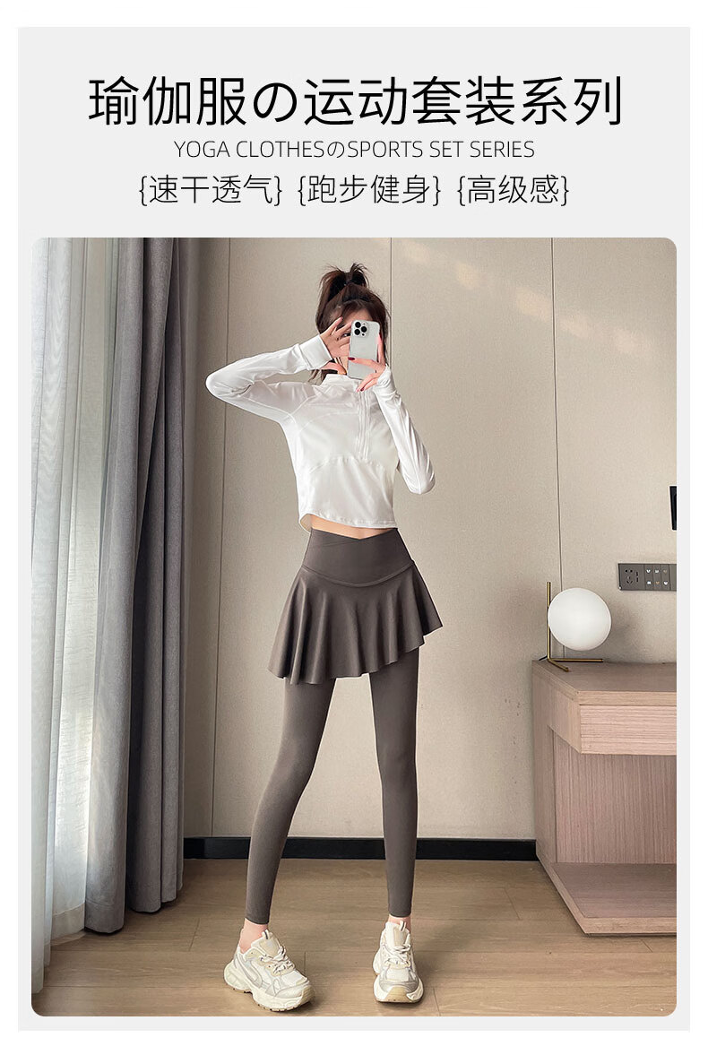 Aimengniao yoga suit T-shirt 2024 new Pilates sports suit for women fitness morning run badminton quick-drying suit for women suit white + tea brown L (refer to bust and waist for size selection)