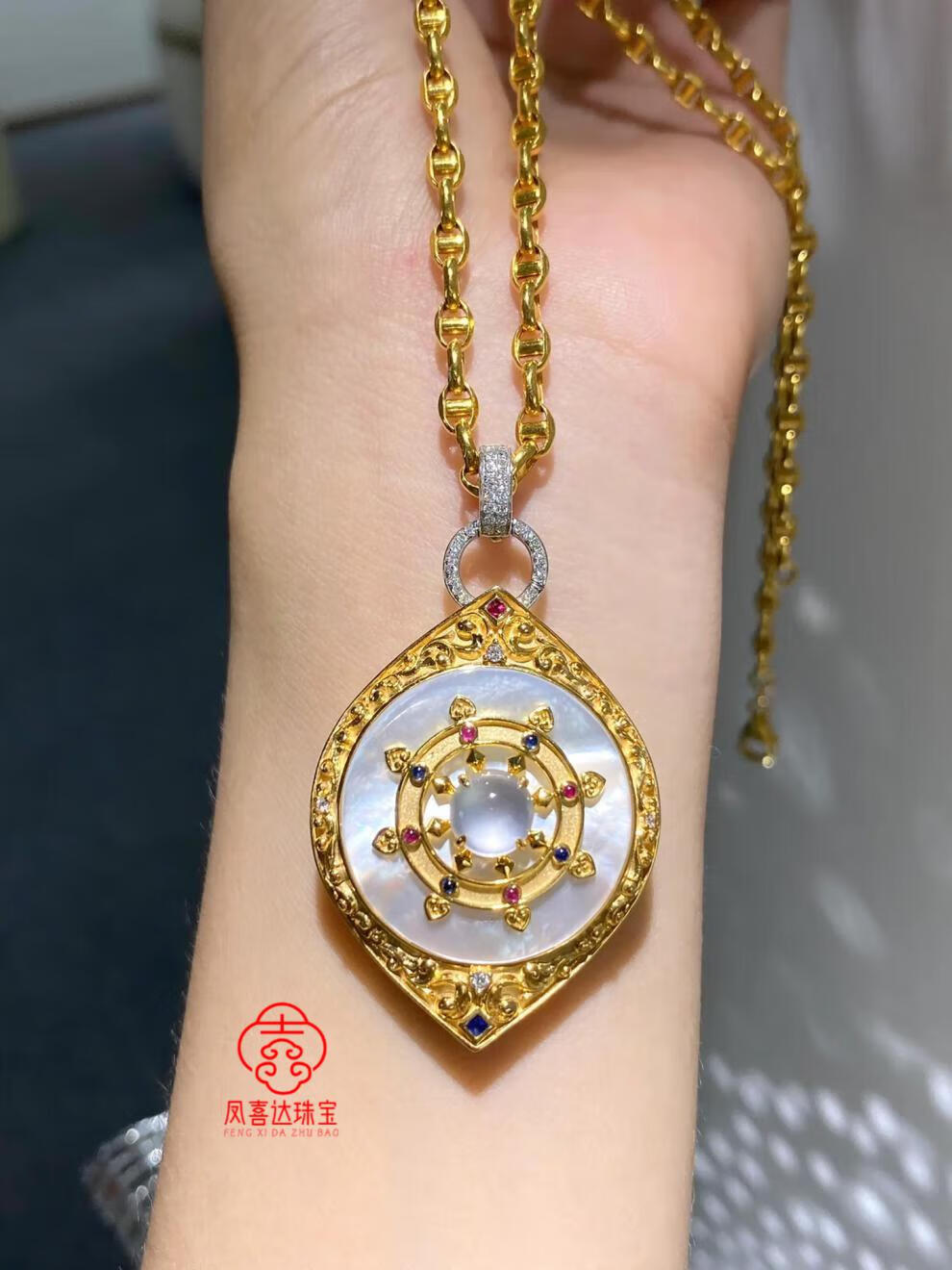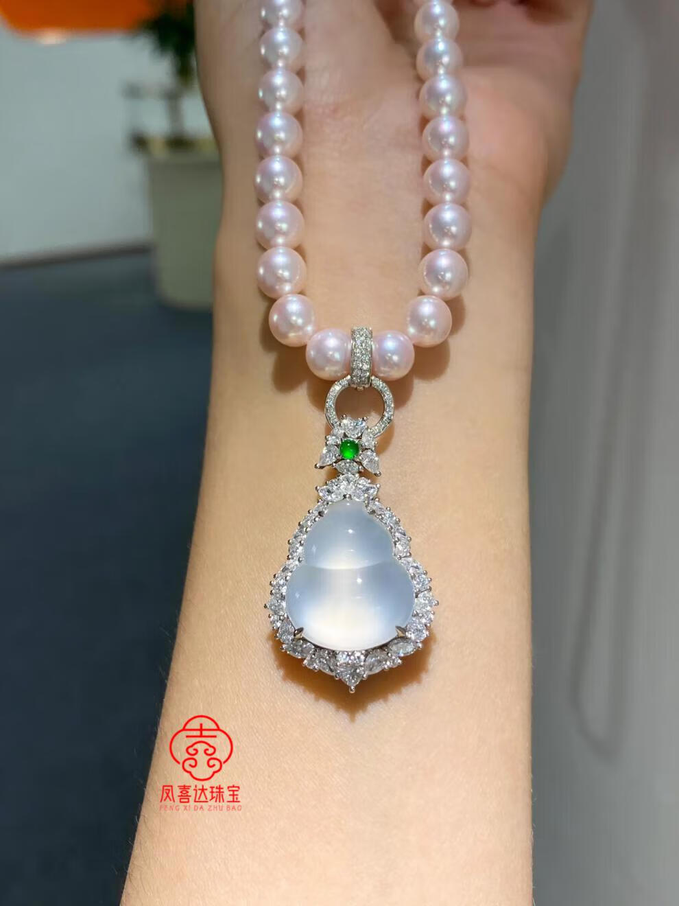 Fat Donglai's same style jade buckle 18k gold platinum full diamond buckle pearl necklace jade gemstone connection full diamond buckle - white gold