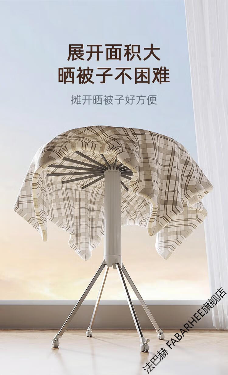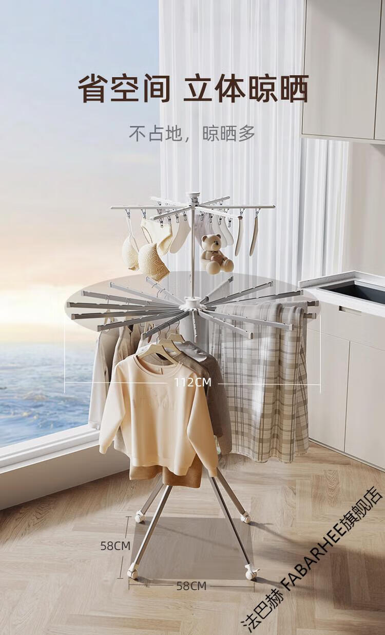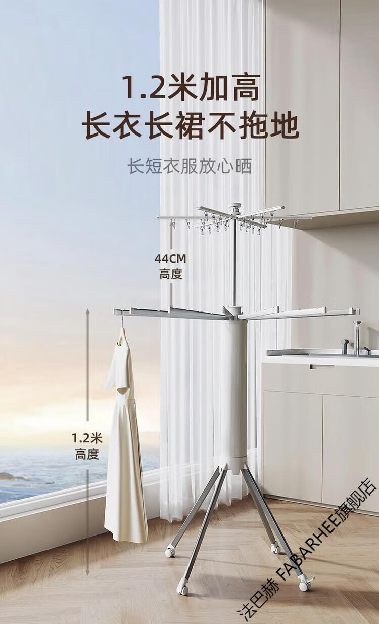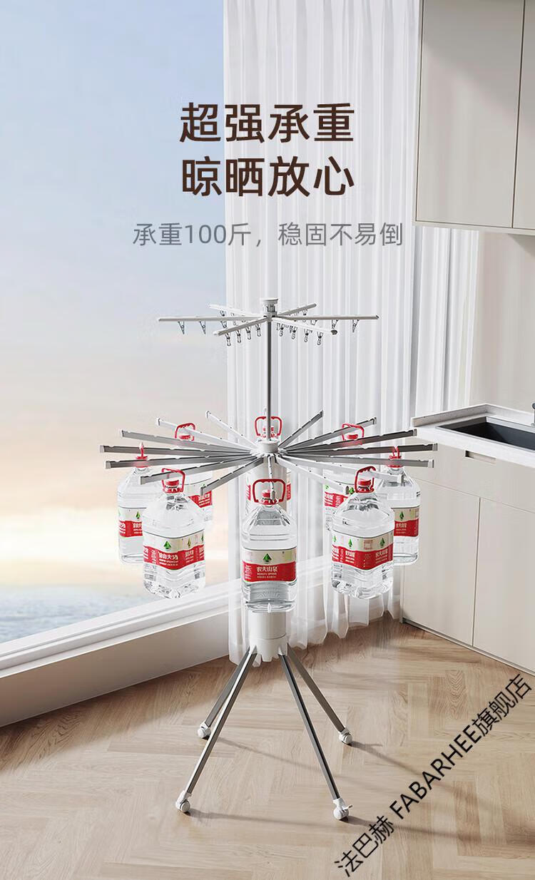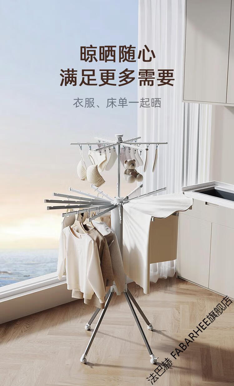 FABARHEE folding clothes drying rack floor-standing balcony indoor home octopus installation-free removable does not take up space for drying quilt rack double-layer model 24 clips + 16 poles four-legged wheels