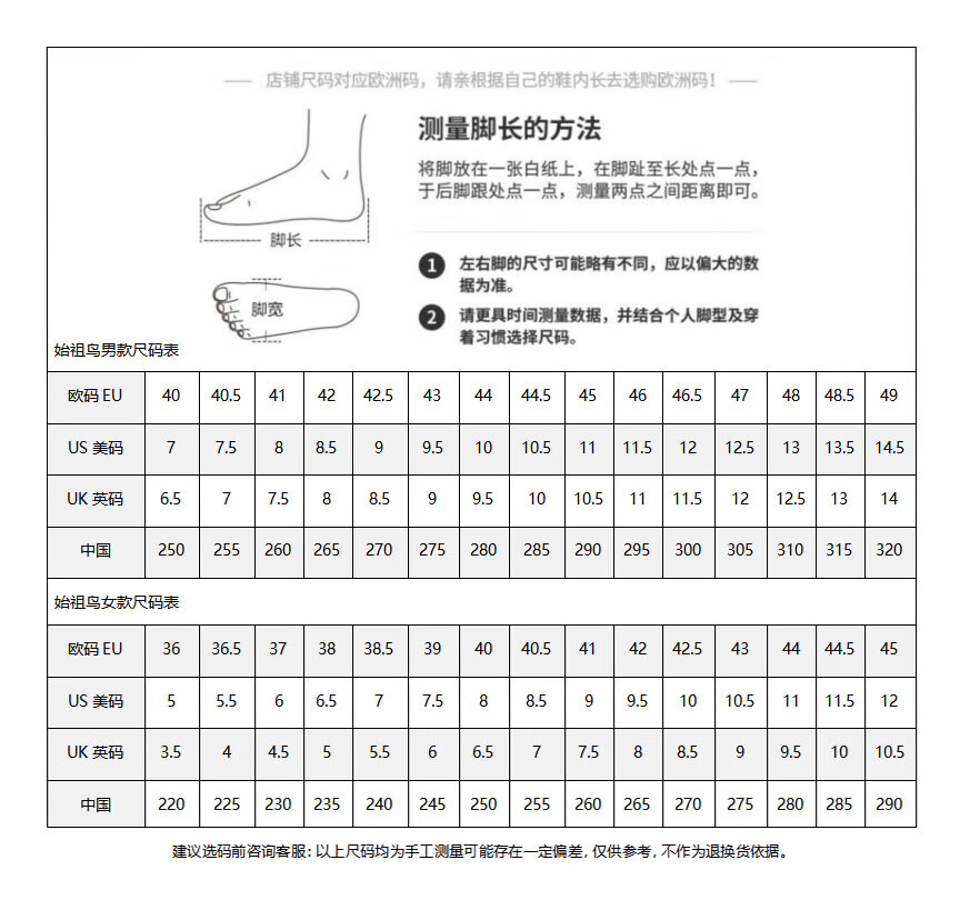 China (cm) 36 - 37 38 - 39 40 - 42 43 - 44 45 - 47