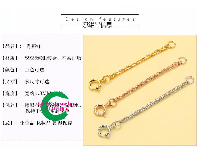 GUIG boutique necklace extension chain 18k gold chain 925 silver diy accessories material Chopard hand extension white gold 6cm (single price)