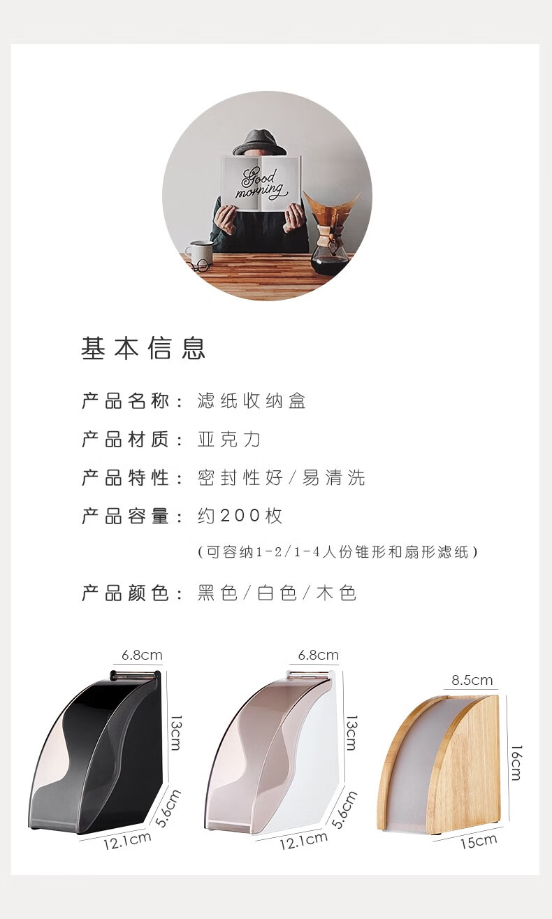Bincoo hand-brewed coffee filter holder hanging ear coffee filter storage box V60 fan-shaped filter paper dust-proof rack universal model V02 filter paper 50 pieces