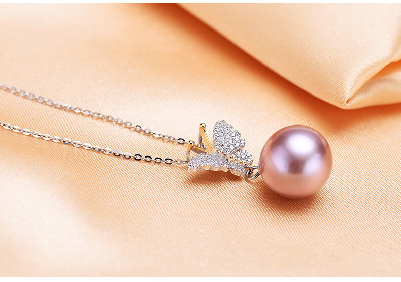 Thousand Foot Pearl 12-13mmS925 Silver Pendant Butterfly Style Nearly Round Necklace Purple 12-13mm