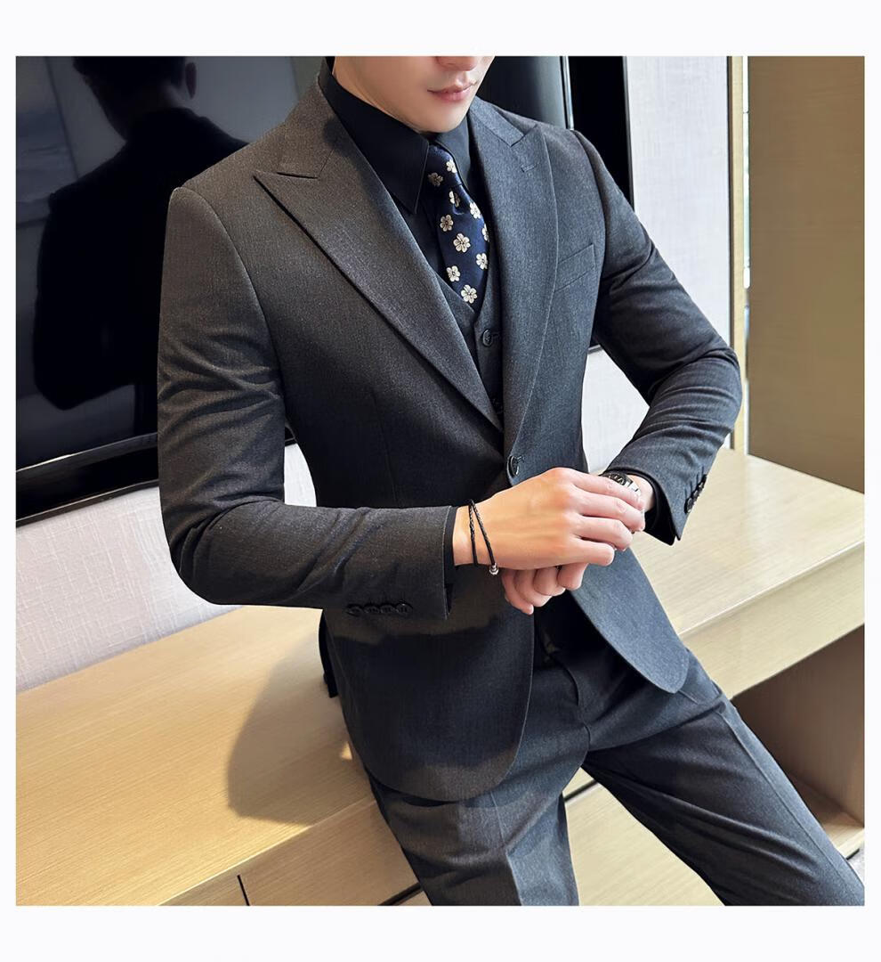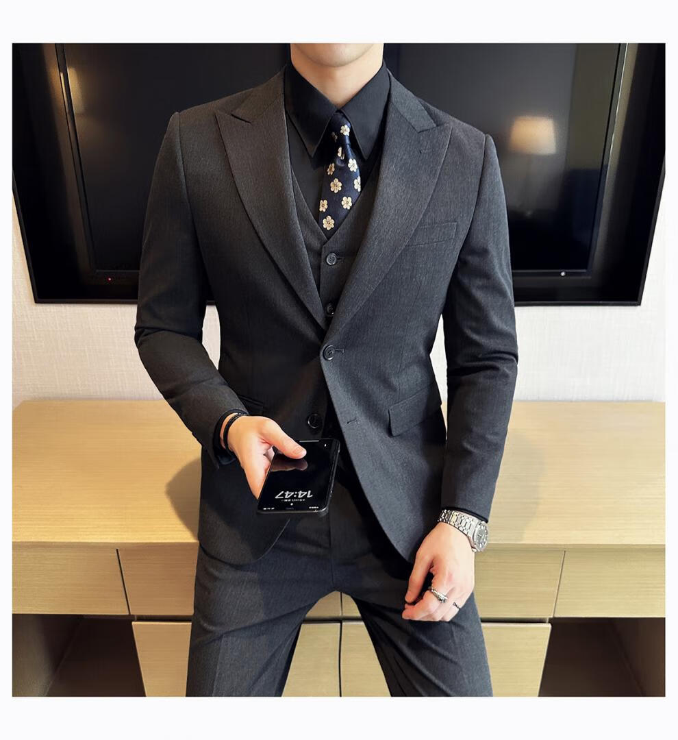 Hengyuanxiang casual suit jacket men's high-end fashion British slim lapel two-button groom's wedding suit gray single suit XL 125-140Jin Jin equals 0.5 kg