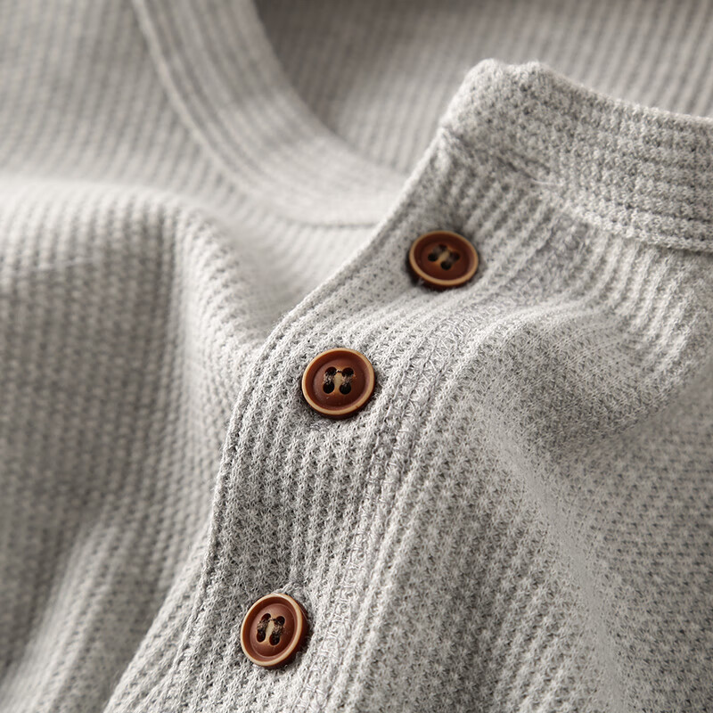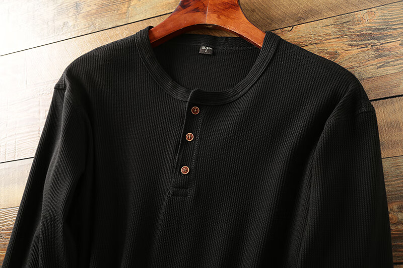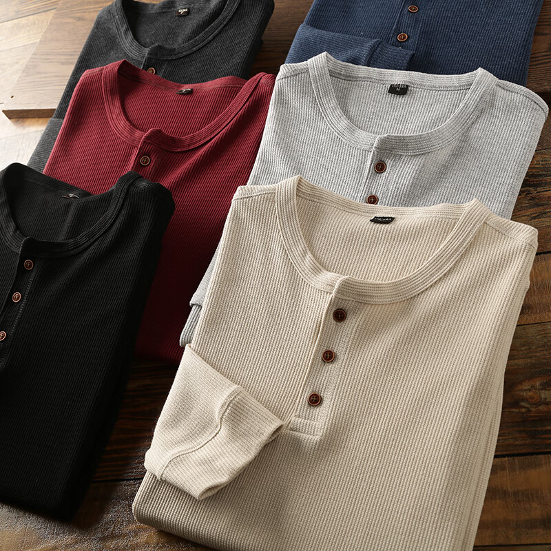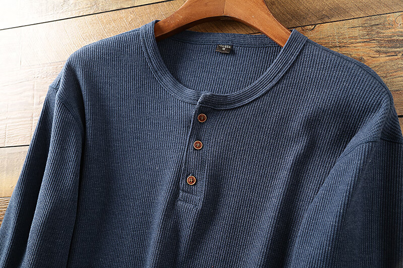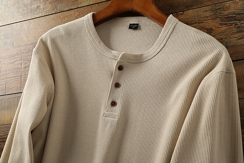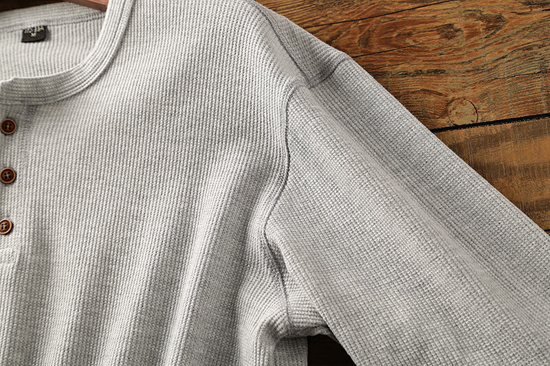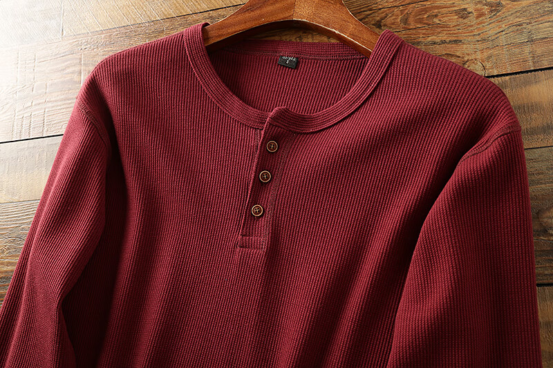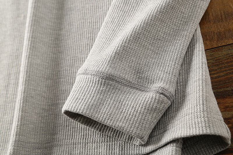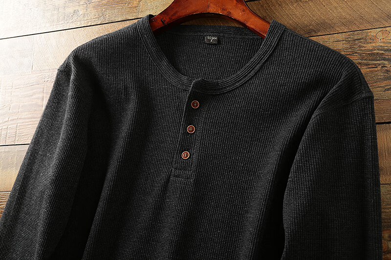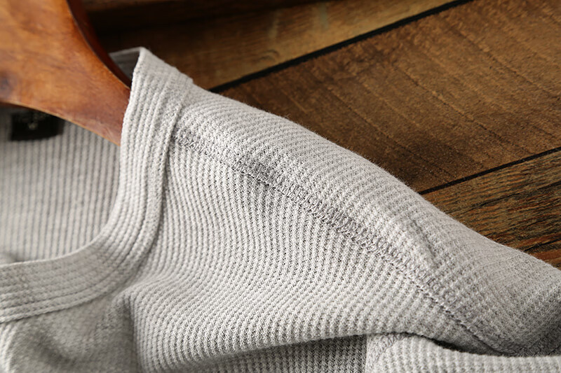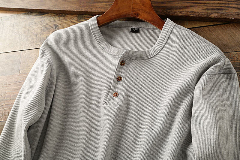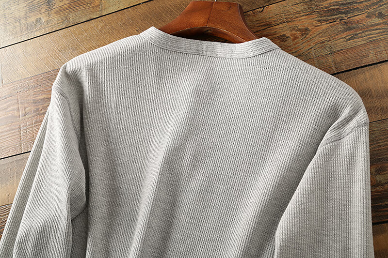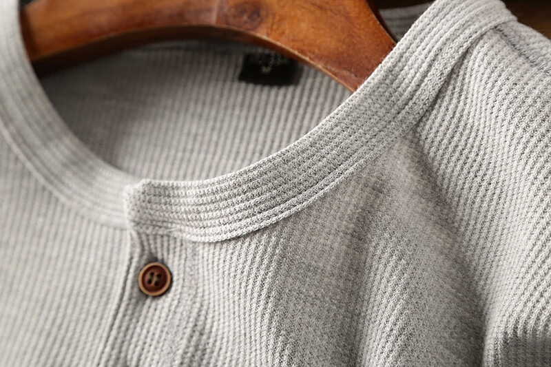 ROMON has a good reputation, waffle Henry collar, men's solid color loose knitted pullover bottoming shirt, casual long-sleeved T-shirt, light gray S 115-130Jin Jin is equal to 0.5 kg