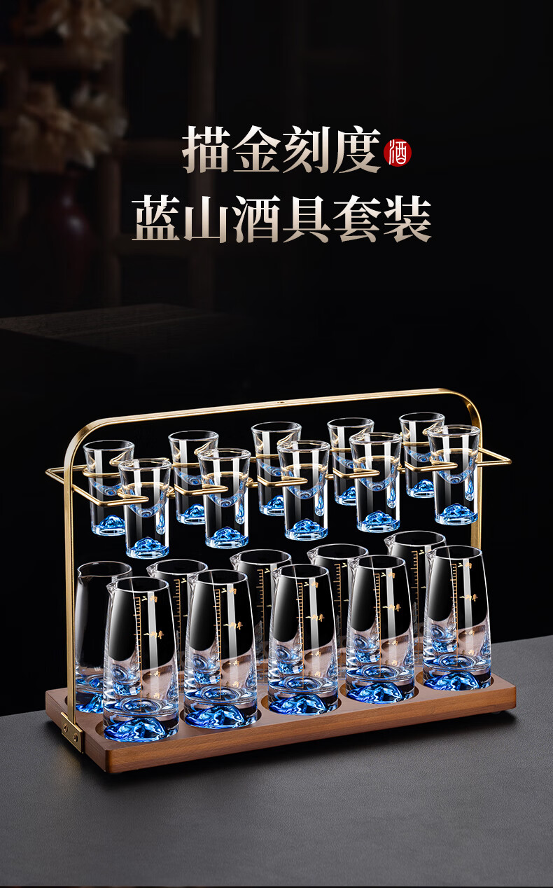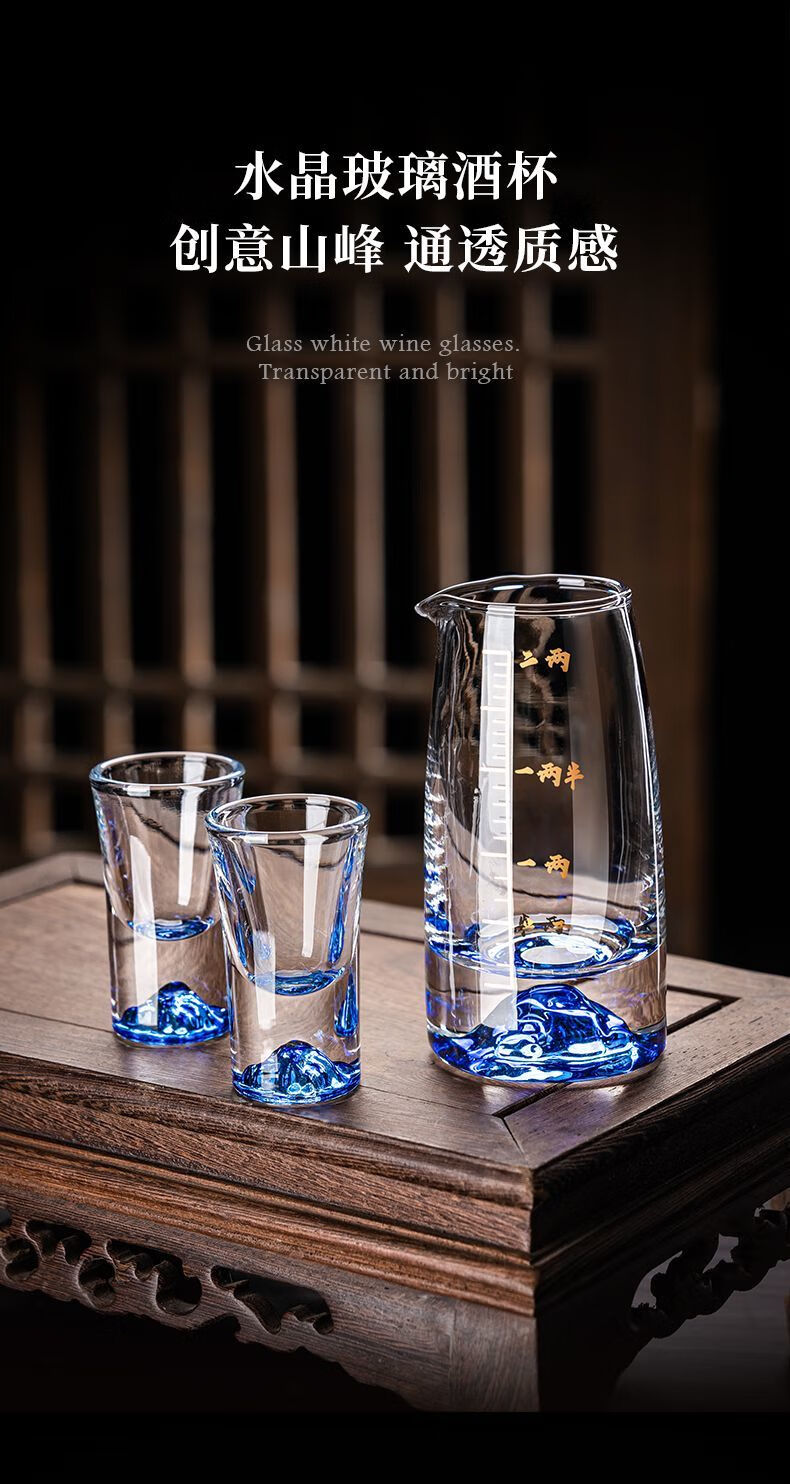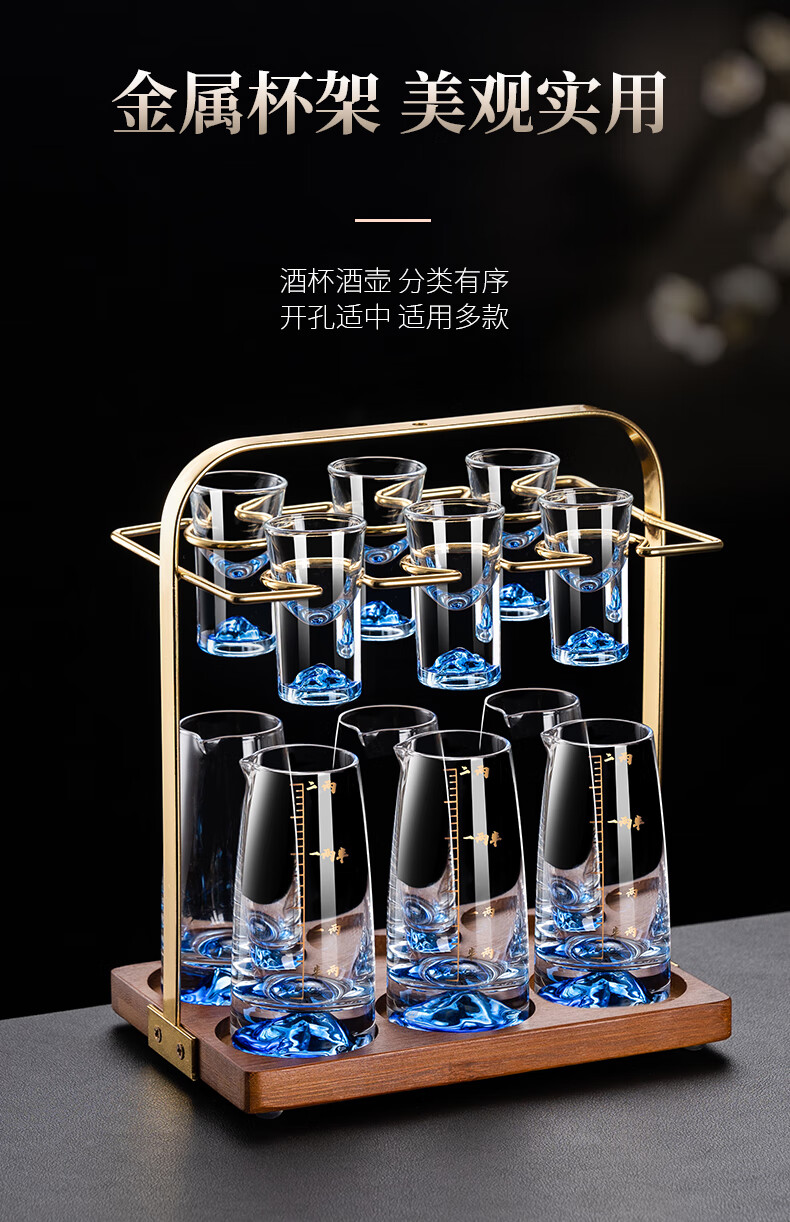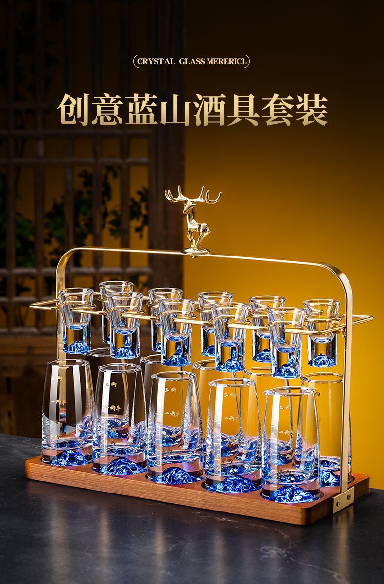 Lanyuan Crystal Glass Blue Mountain Wine Splitter White Wine Glass Household Wine Set Light Luxury Chinese One-cup Small Wine Cup Spirits Single-Layer Rack 6 Pots and 6 Cups Blue Mountain Wine Set