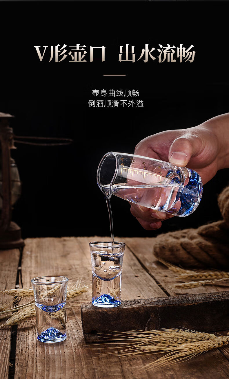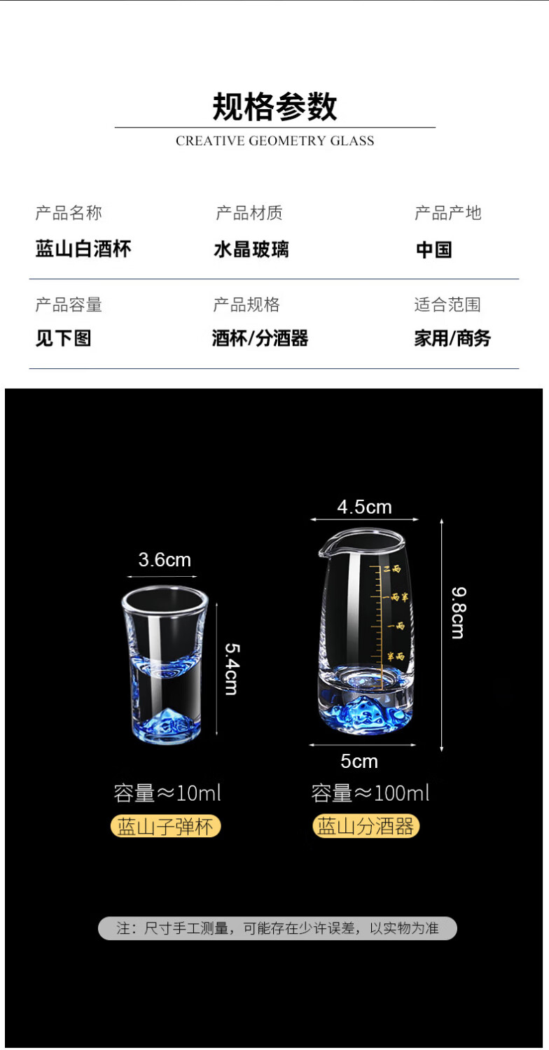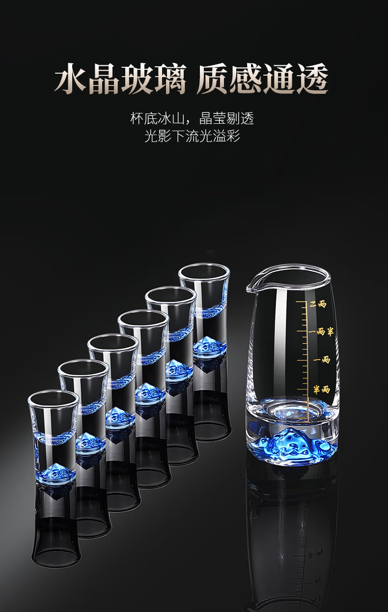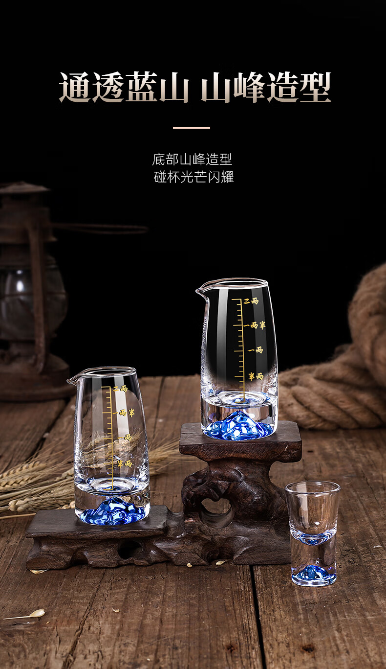 Lanyuan Crystal Glass Blue Mountain Wine Splitter White Wine Glass Household Wine Set Light Luxury Chinese One-cup Small Wine Cup Spirits Single-Layer Rack 6 Pots and 6 Cups Blue Mountain Wine Set