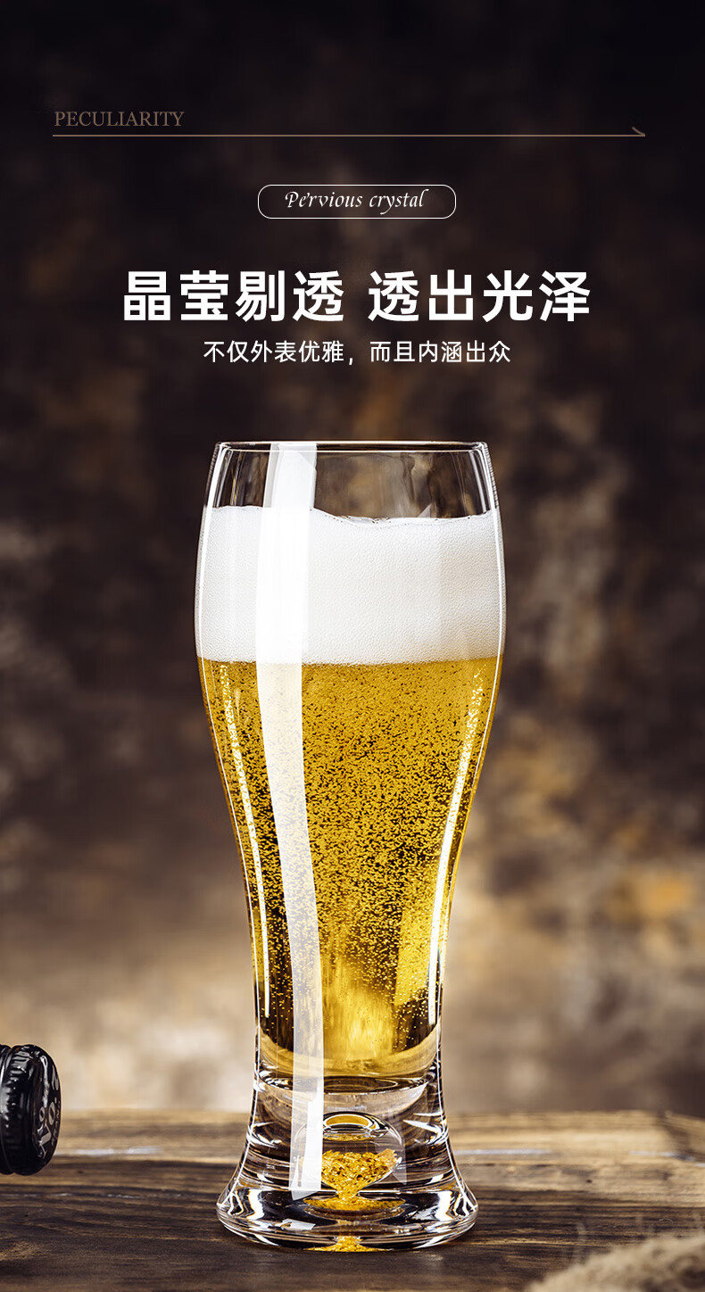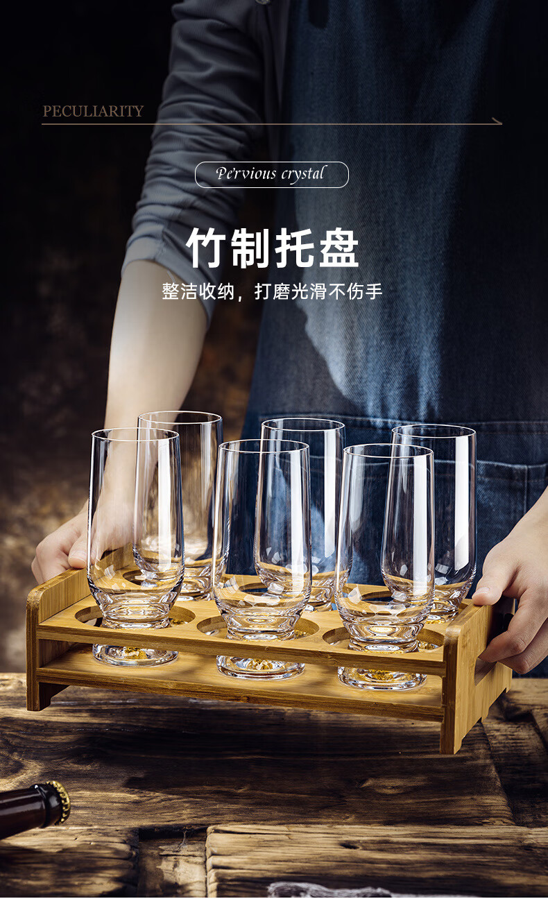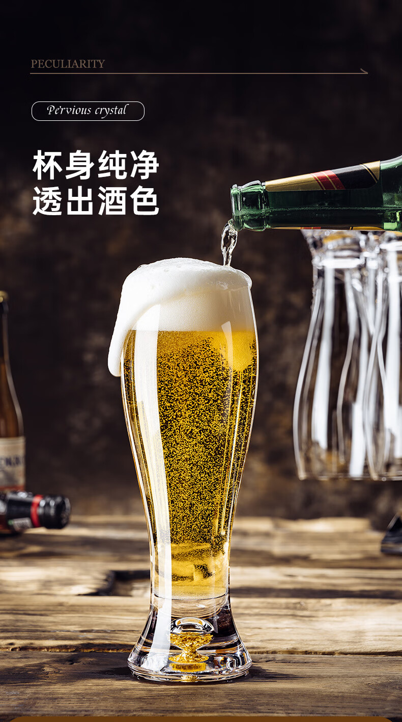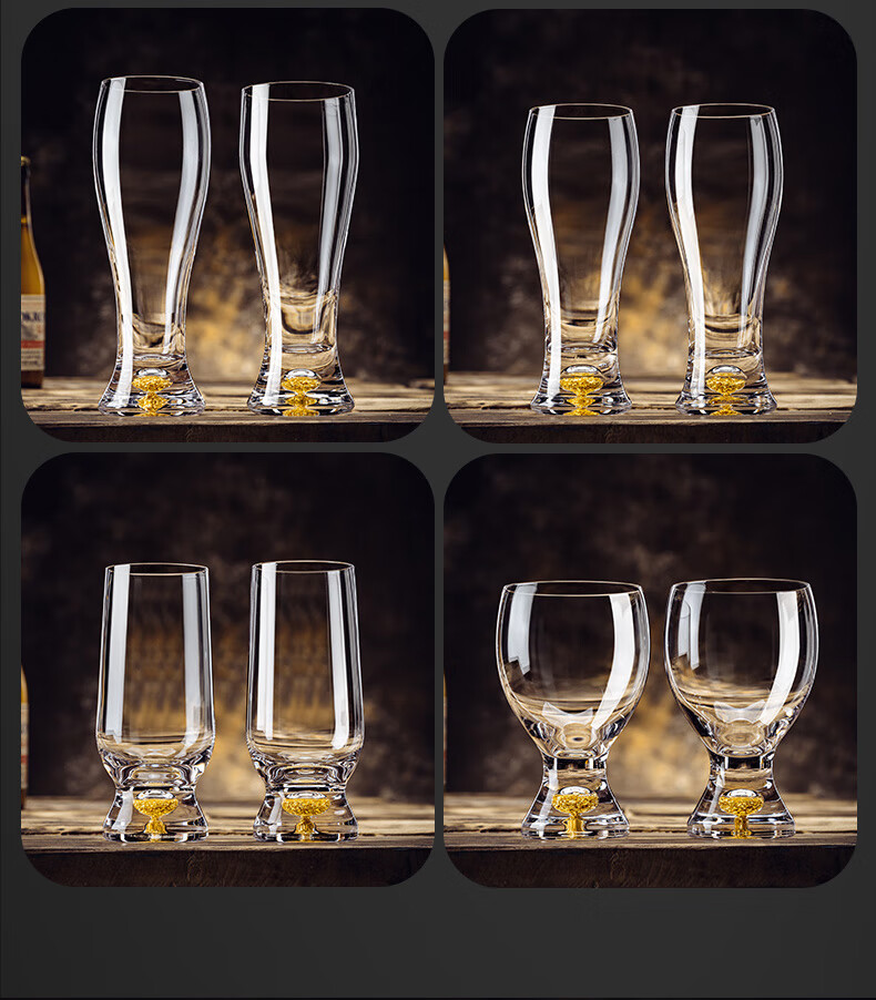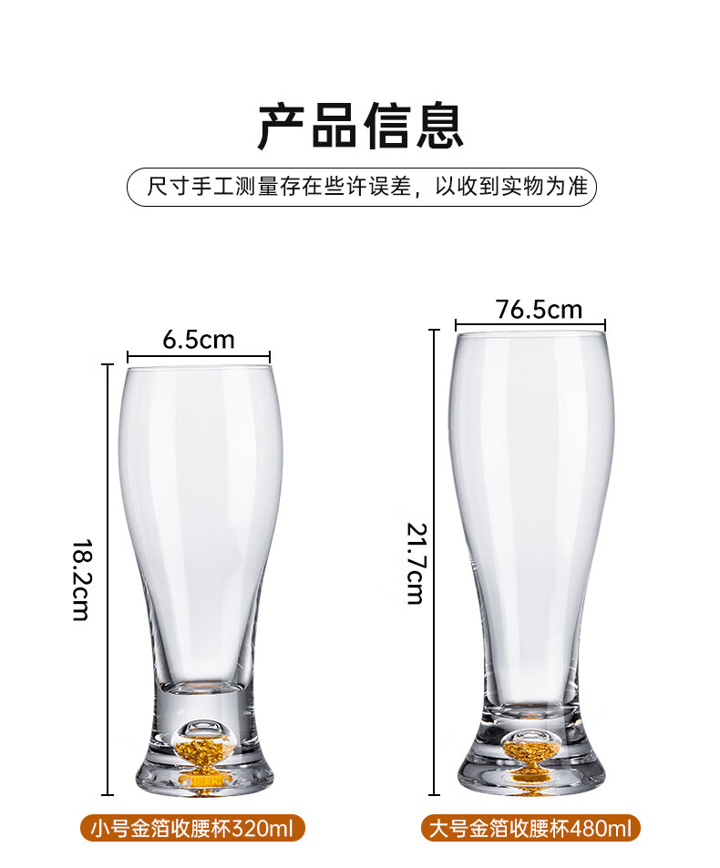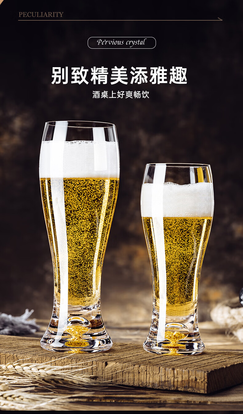 VINOS high-end glass waisted beer mug, household large-capacity draft beer mug, creative craft beer mug with cup holder, high-looking cup holder + gold foil tall beer mug, 6 pieces 370ml