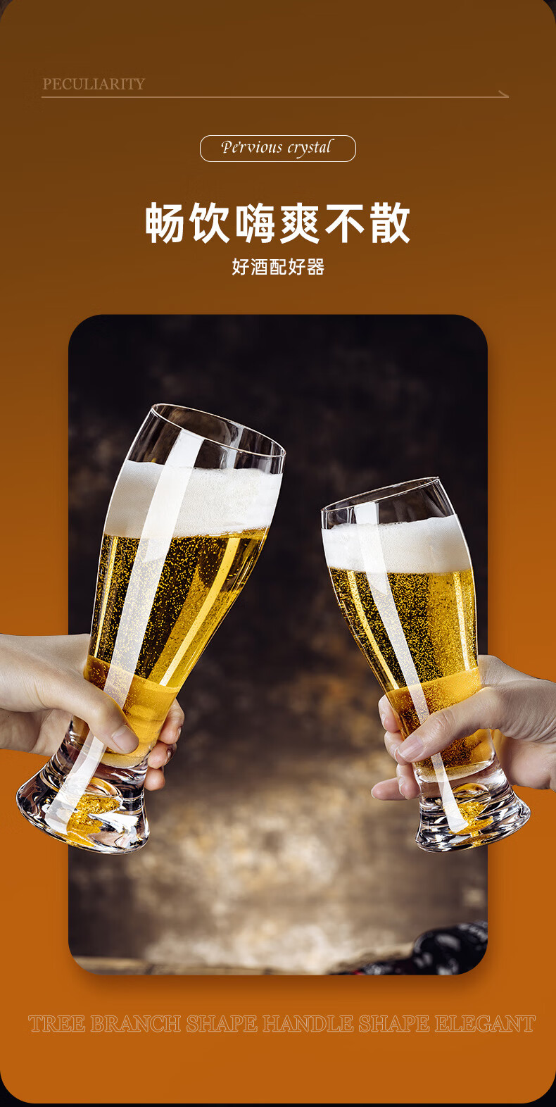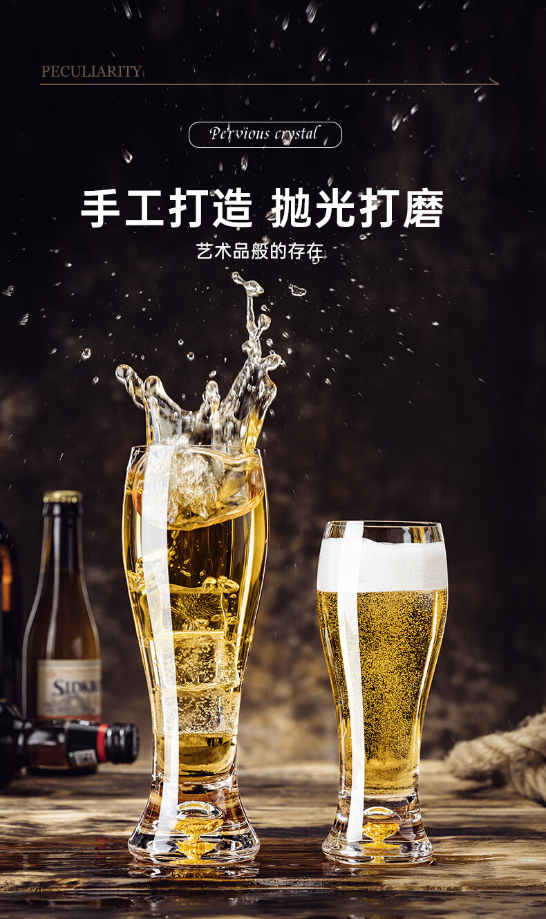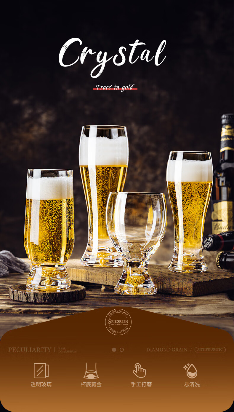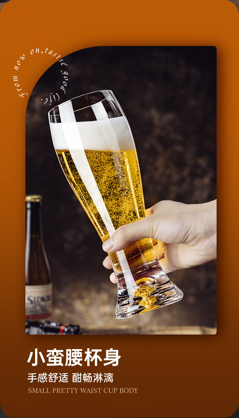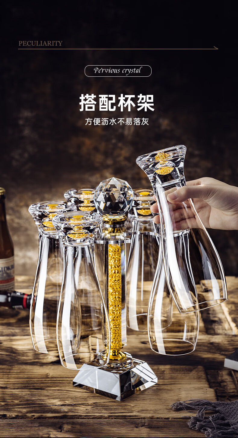 VINOS high-end glass waisted beer mug, household large-capacity draft beer mug, creative craft beer mug with cup holder, high-looking cup holder + gold foil tall beer mug, 6 pieces 370ml