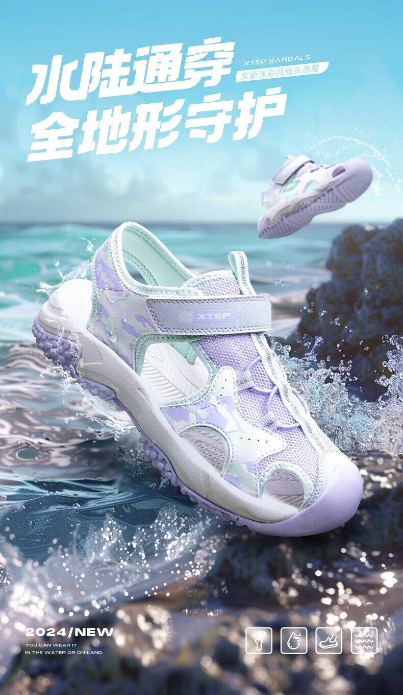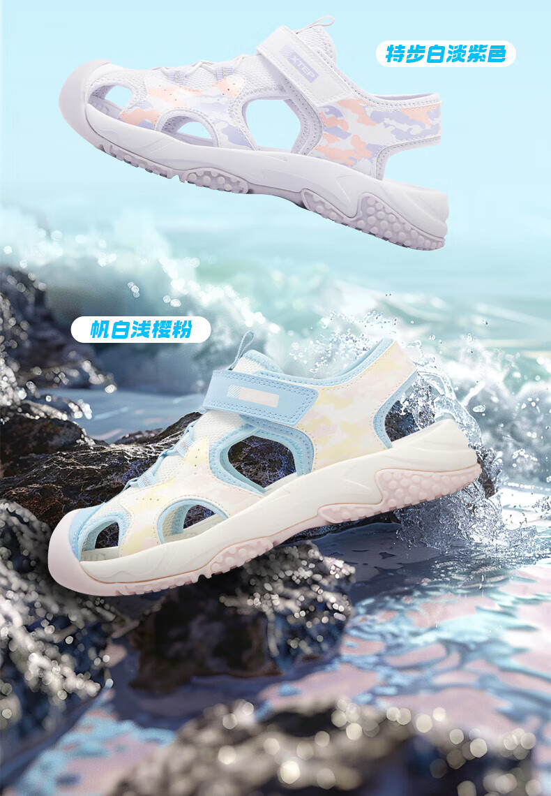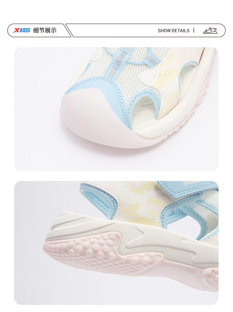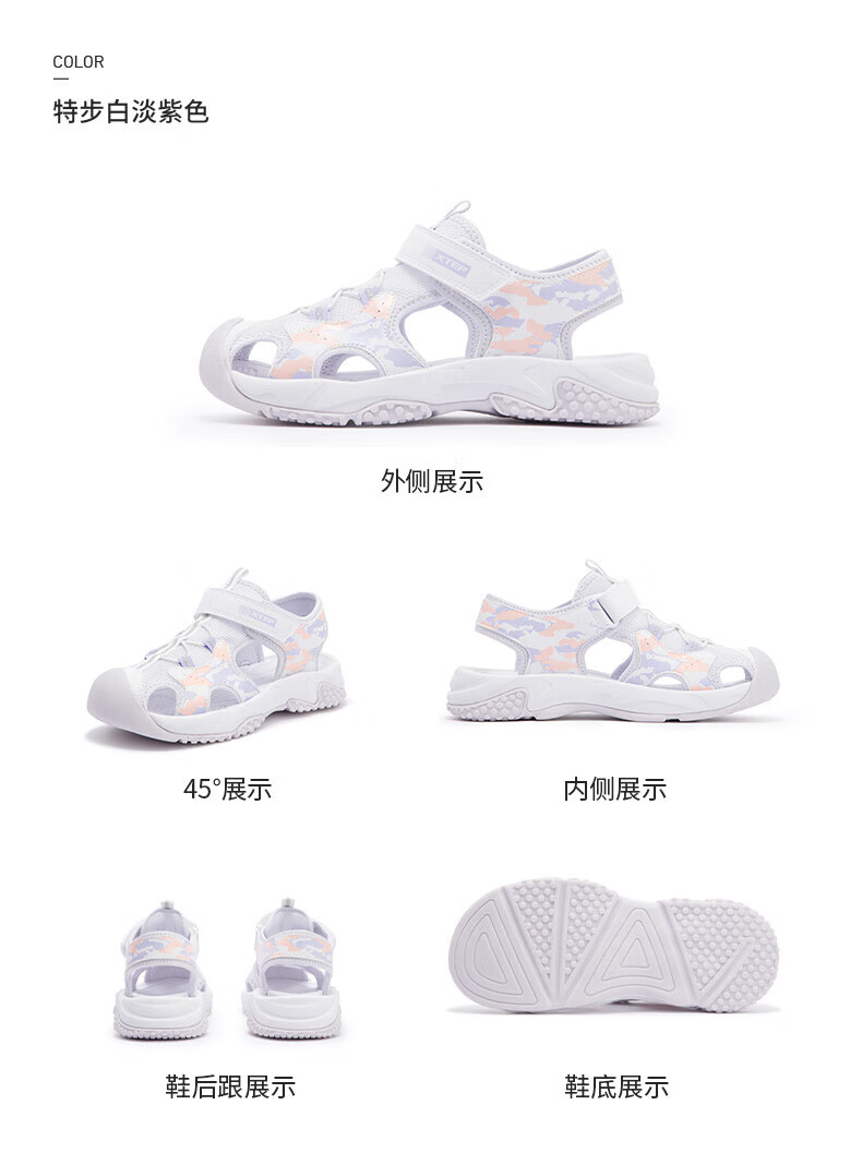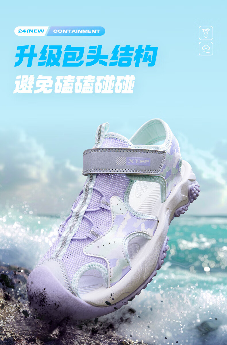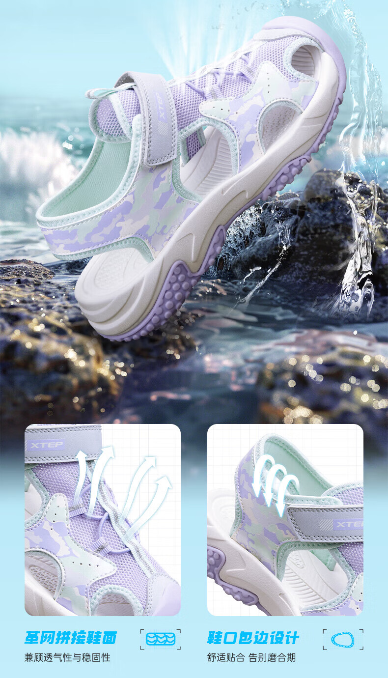 Xtep children's sports and leisure sandals for middle-aged and older girls summer toe-cap non-slip sandals Xtep white/lilac 34