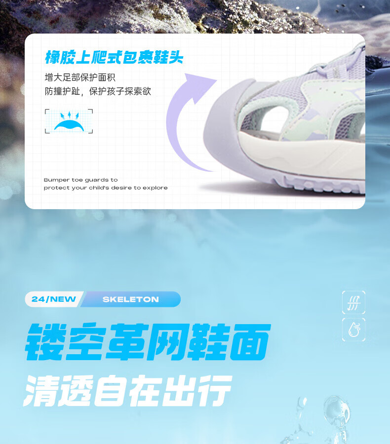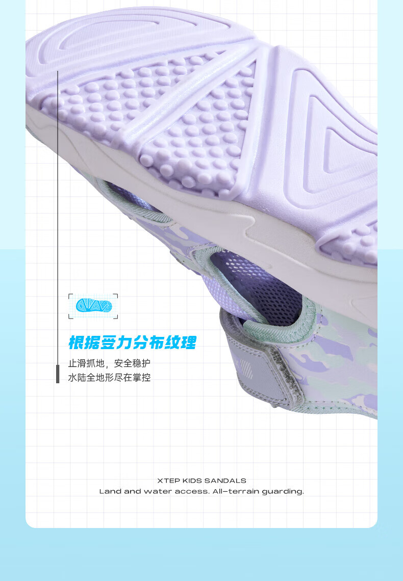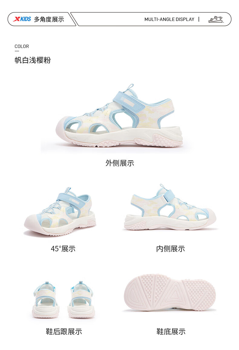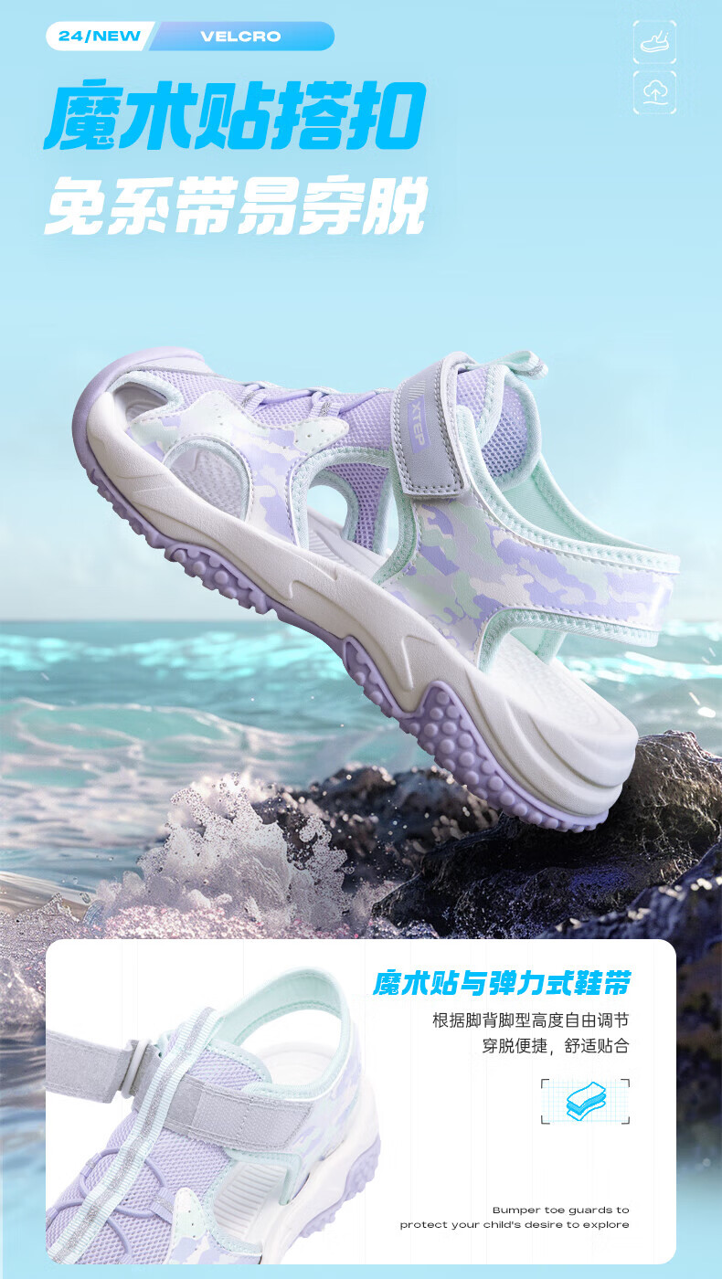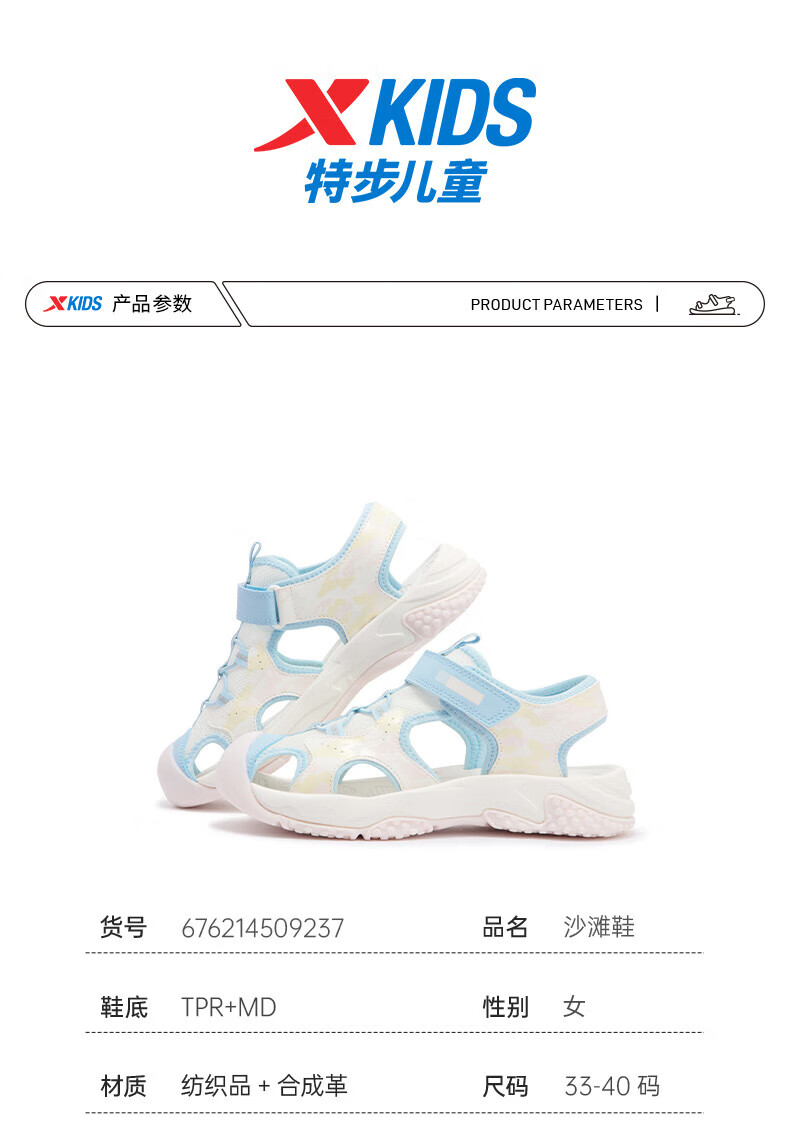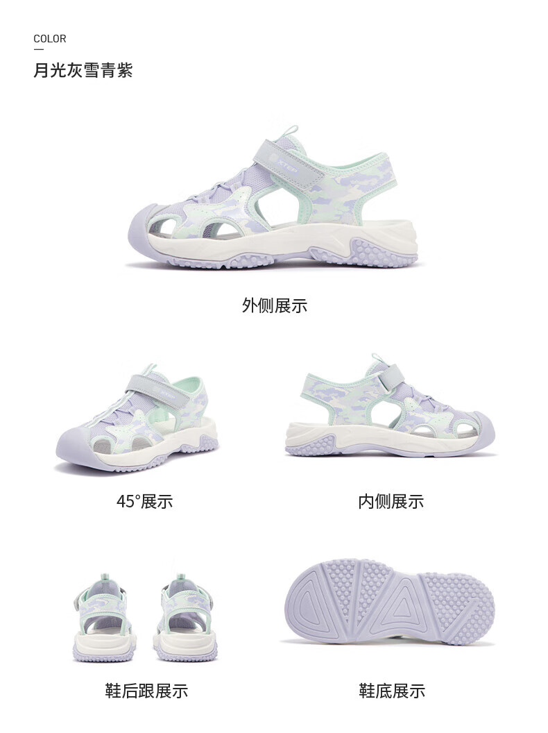 Xtep children's sports and leisure sandals for middle-aged and older girls summer toe-cap non-slip sandals Xtep white/lilac 34