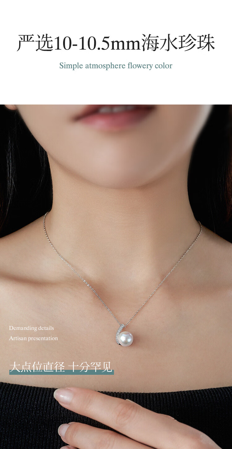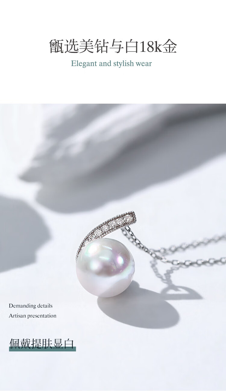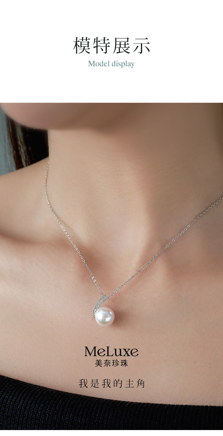 Meluxe 18K gold akoya saltwater pearl necklace pendant single piece, birthday gift for girlfriend, wife, nearly round - strong light - slightly imperfections 10-10.5mm