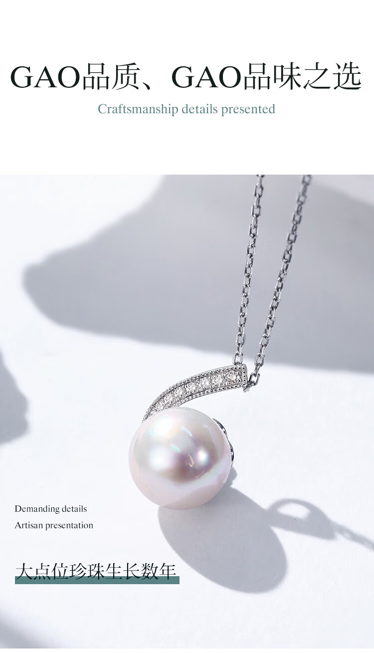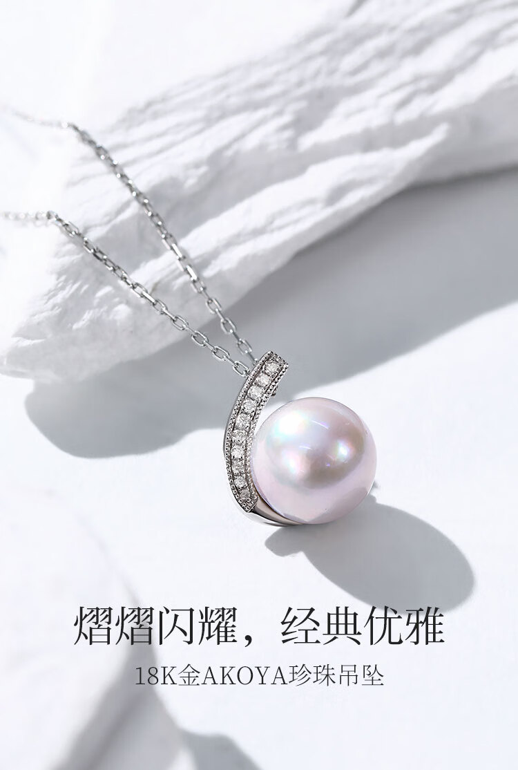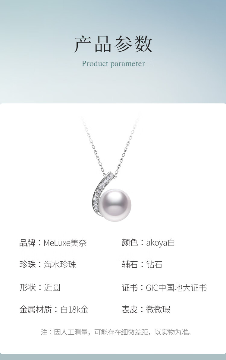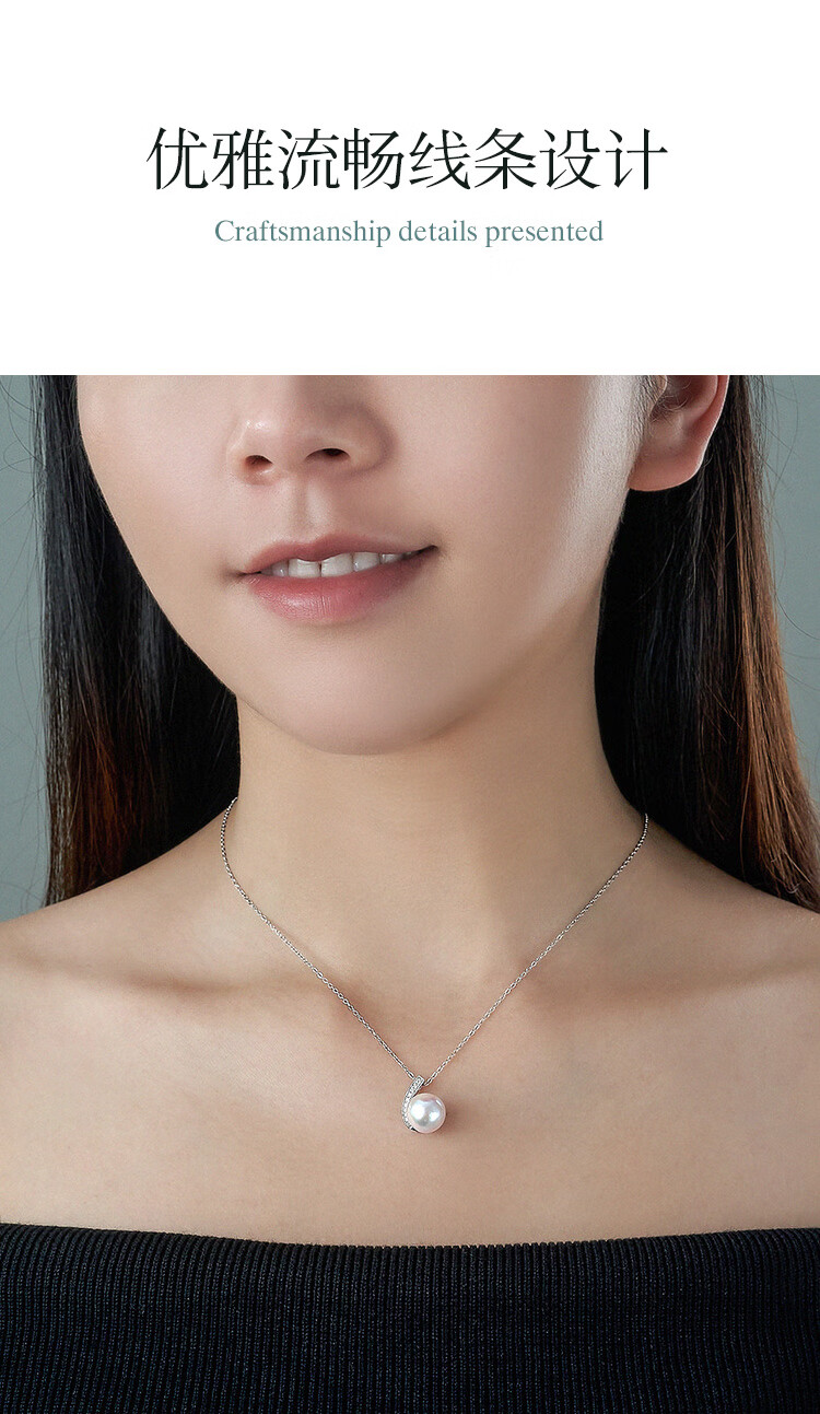 Meluxe 18K gold akoya saltwater pearl necklace pendant single piece, birthday gift for girlfriend, wife, nearly round - strong light - slightly imperfections 10-10.5mm