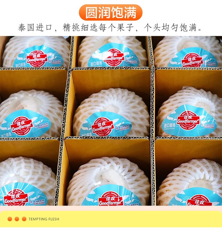 Goodnon Thai Coconut Green Fresh Coconut 9 Original Boxes Seasonal Fruit Imported Coconut Perfume Yeqing Free Coconut Opener 9 Whole Boxes (Single Fruit 750g or More)