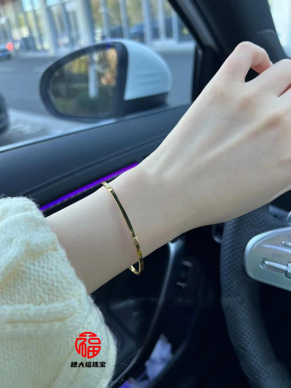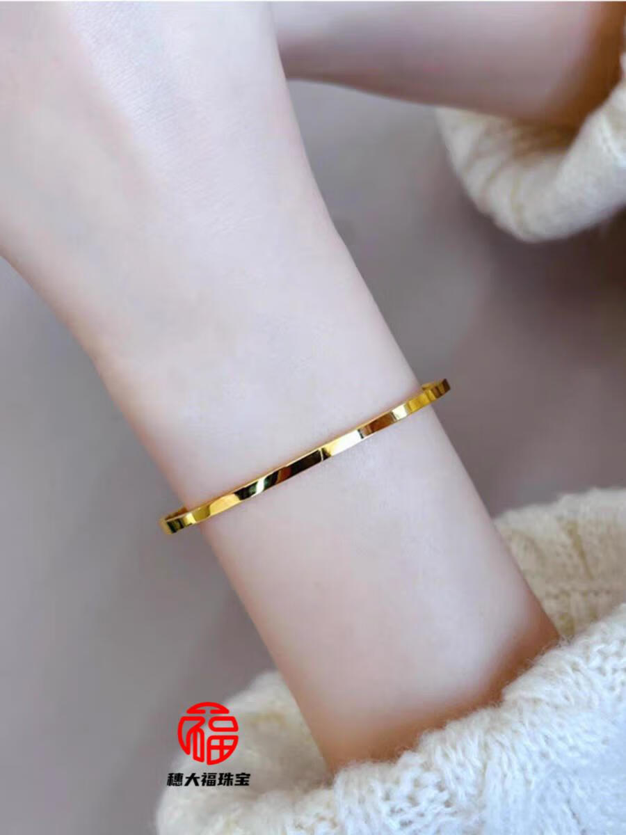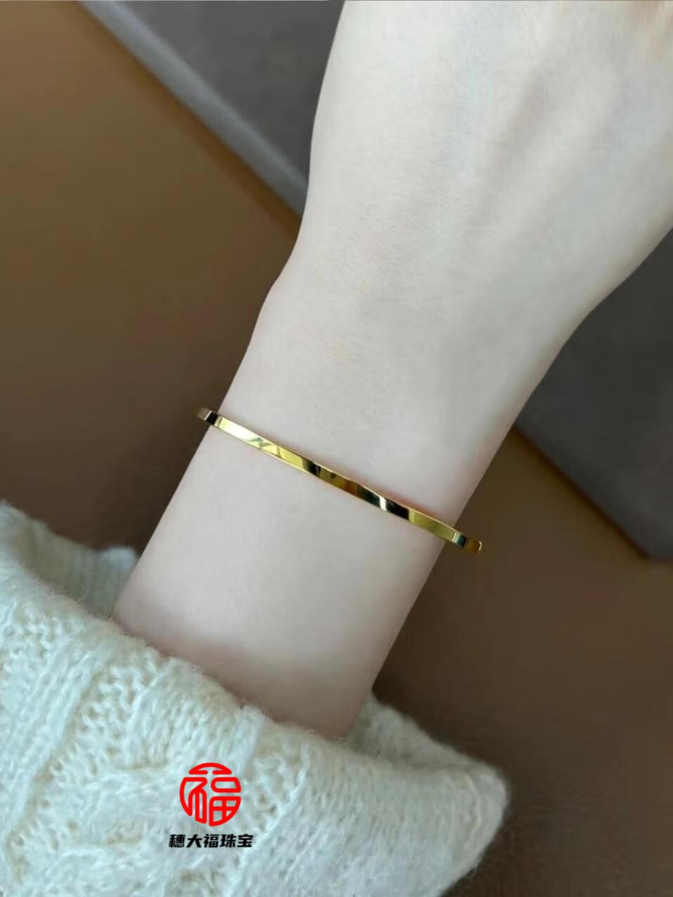 Fat Donglai's same style 18k gold thin bracelet with aperture, plain ring, shiny surface, titanium steel, non-fading, gold-plated texture, gold 60mm (width 2mm)
