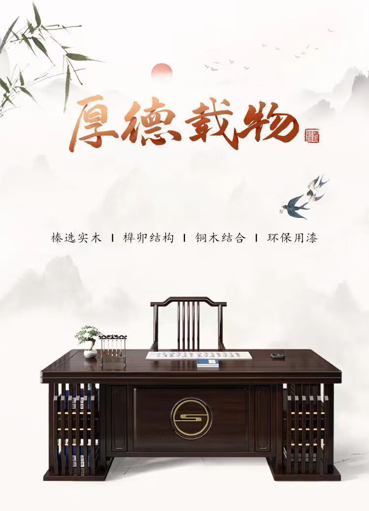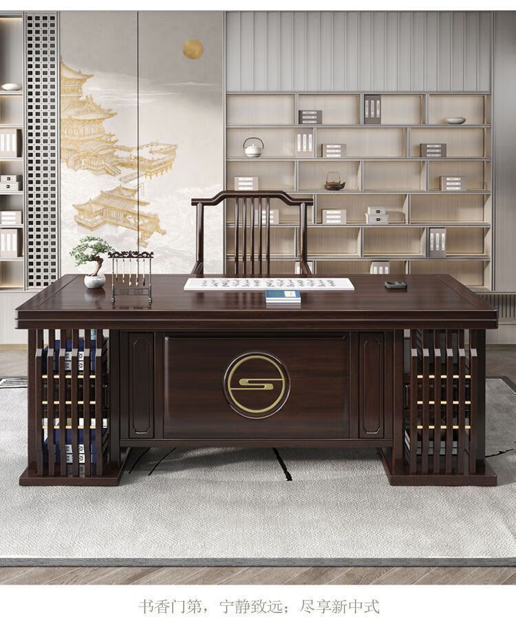 2025 new new Chinese style solid wood desk and chair combination desk study calligraphy and painting table home writing desk walnut color Houde single desk 1.6 meters