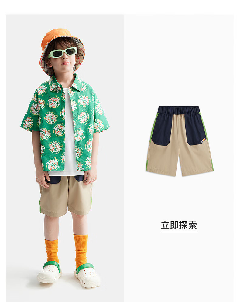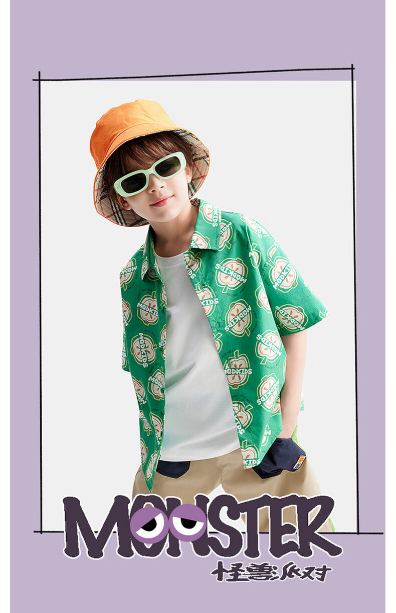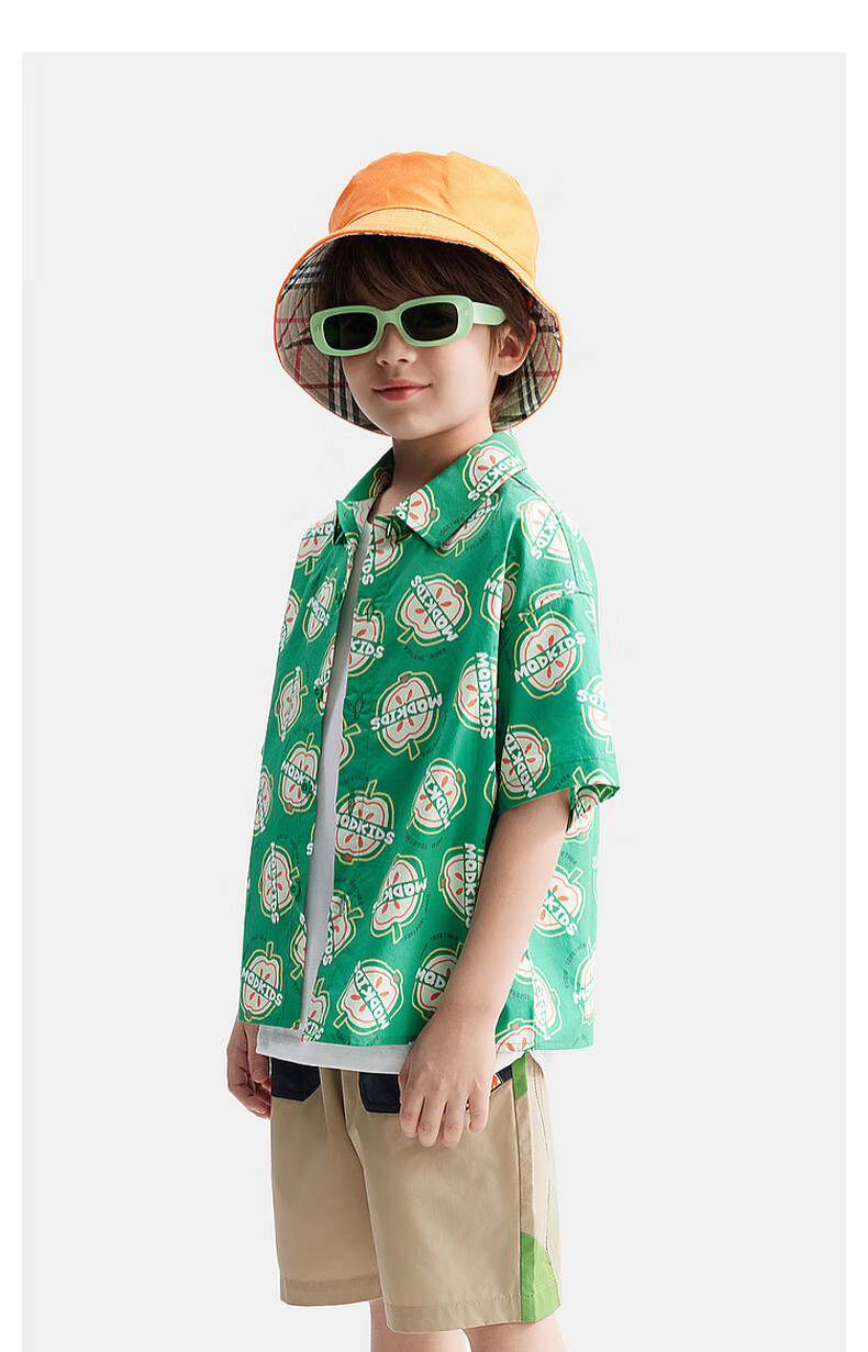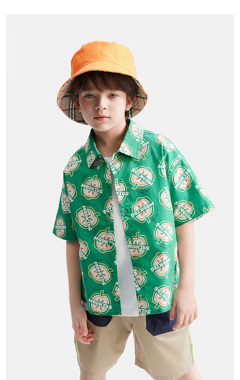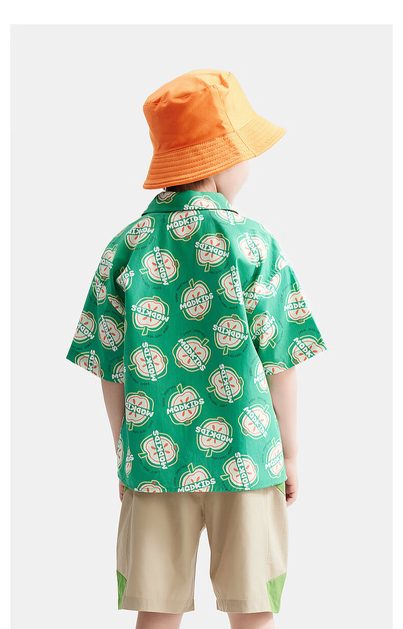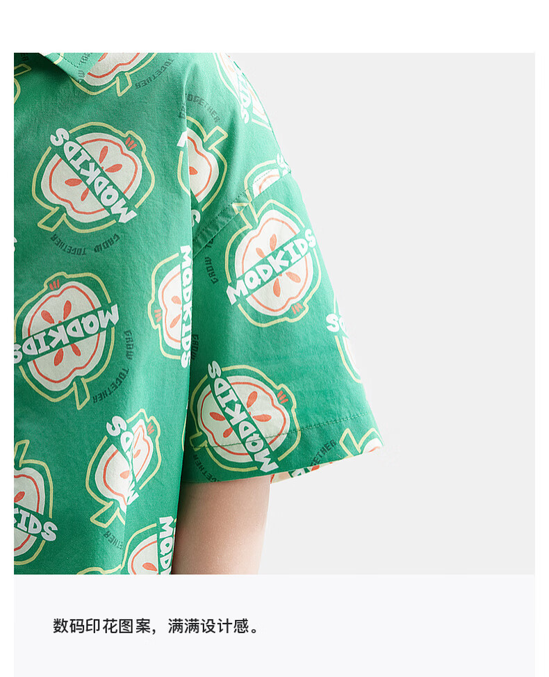 MQD (MQD) MQD children's clothing boys summer printed shirt green fruit pattern trendy full version short-sleeved shirt forest green 140