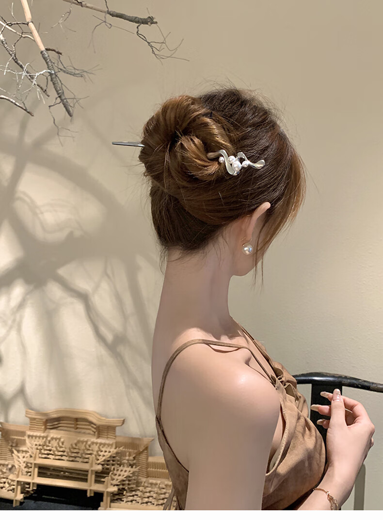 Su Shiliu's new Chinese-style pearl hairpin with cool feeling for women, high-end metal plate hairpin hair accessories, birthday gift for girlfriend and wife, cool-looking pearl hairpin + gift box