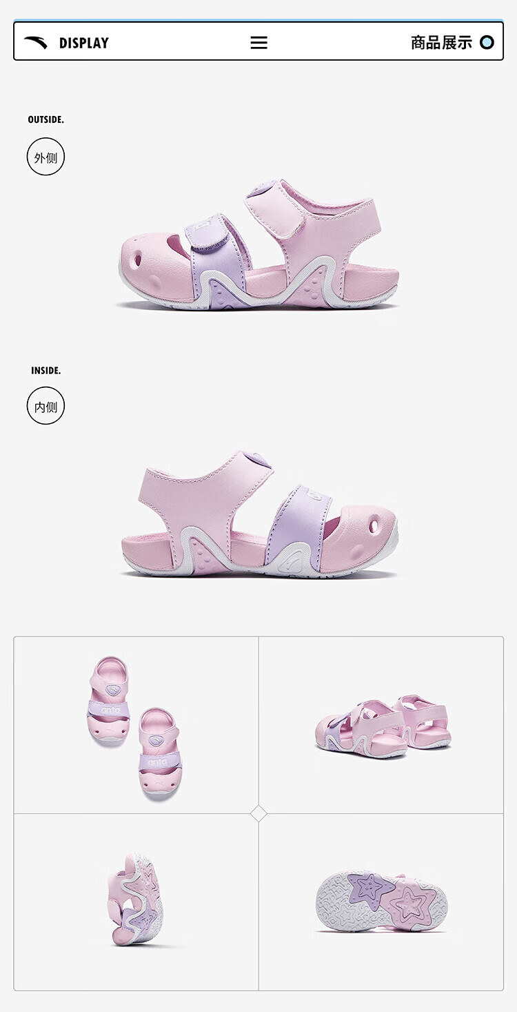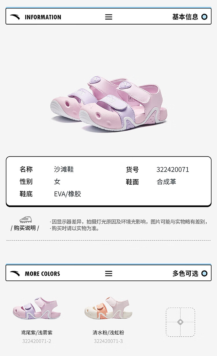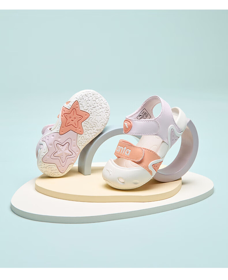 ANTA Children's Sandals Baby Girls Beach Shoes 2024 Summer New Baotou Comfortable Baby Toddler Shoes Iris Purple/Light Mist Purple-2 24 Size
