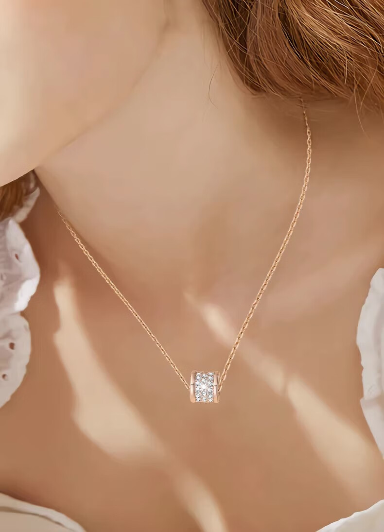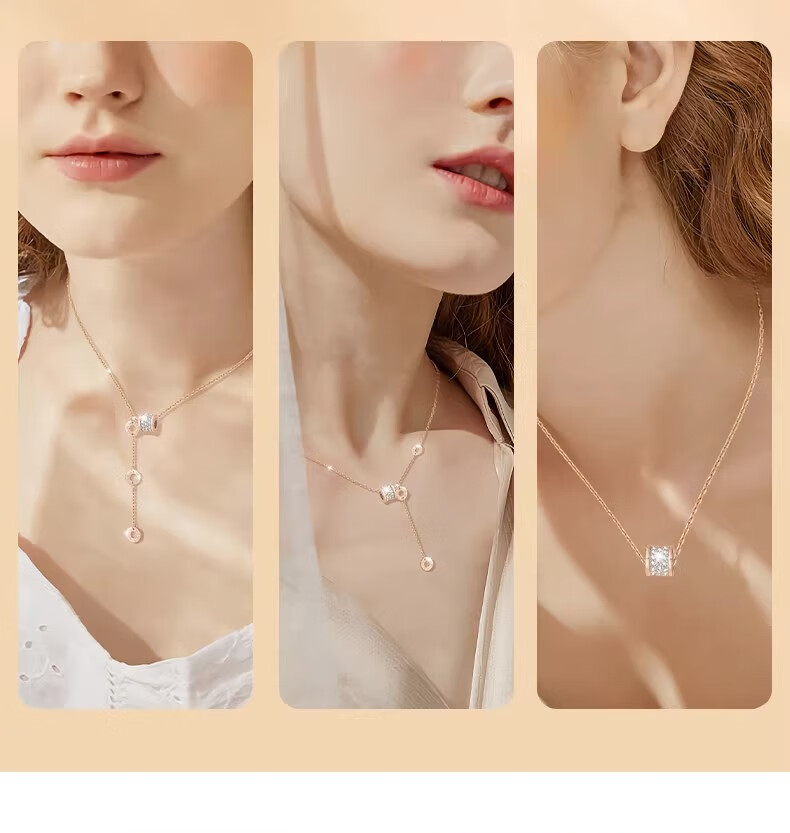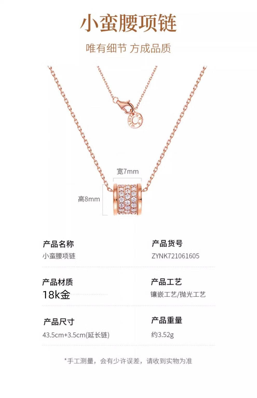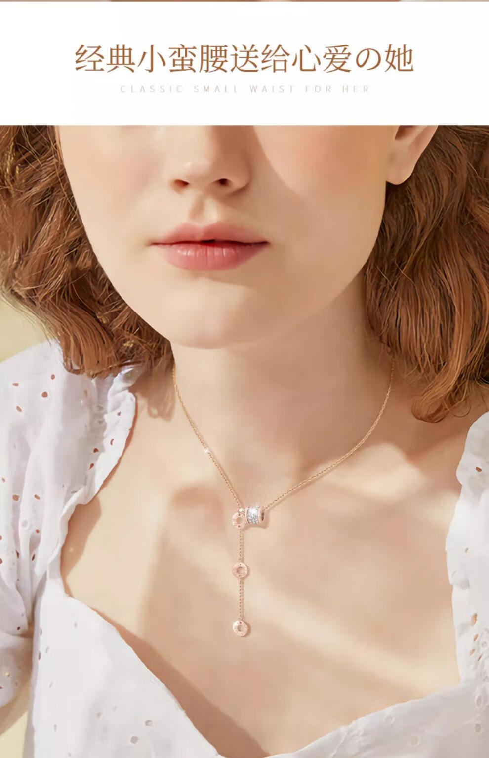 Fat Donglai's same style 18k gold small waist necklace 18K rose gold full diamond women's Au750 color gold light luxury clavicle chain 18k full diamond small waist (rose gold) + counter gift box