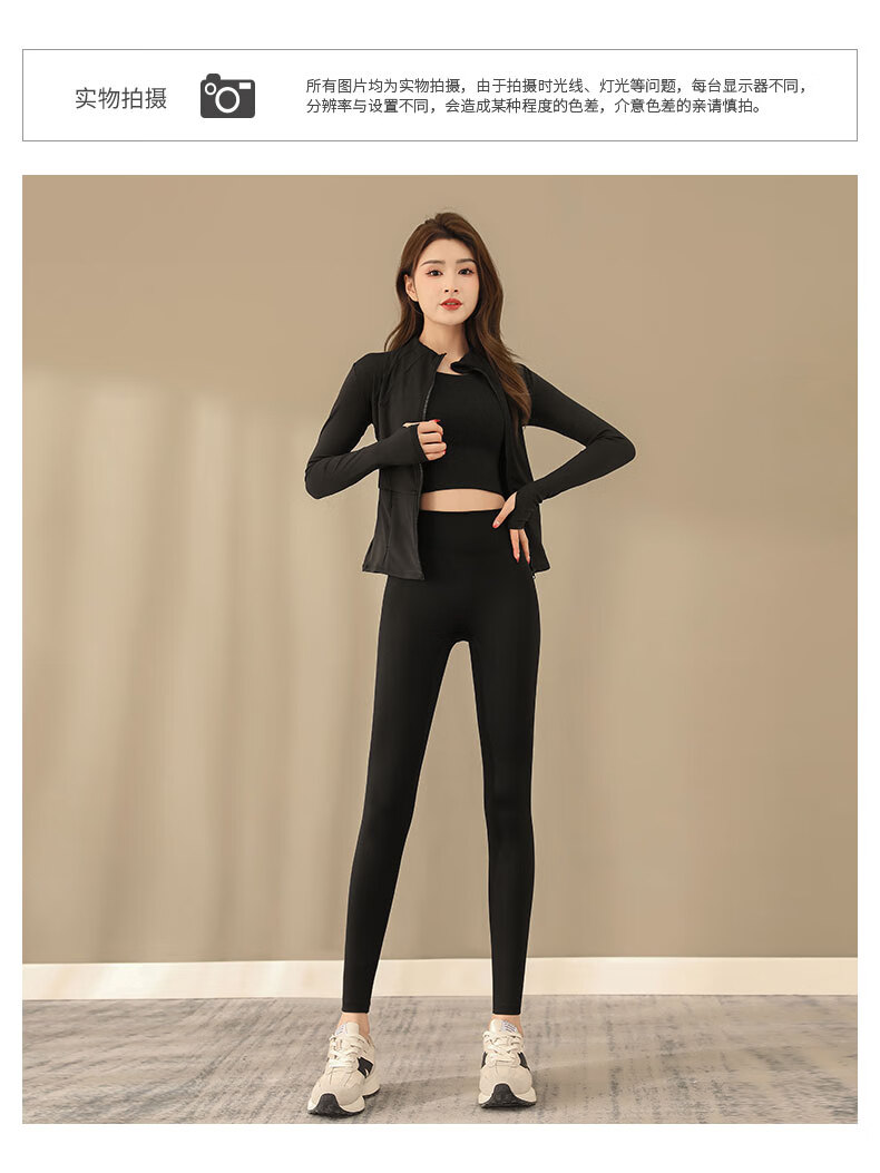 Aimengniao yoga clothing set, high-end three-piece set for women, 2024 new Pilates training clothing, running fitness quick-drying clothes, three-piece set/black+black+black M (refer to bust and waist for size selection)