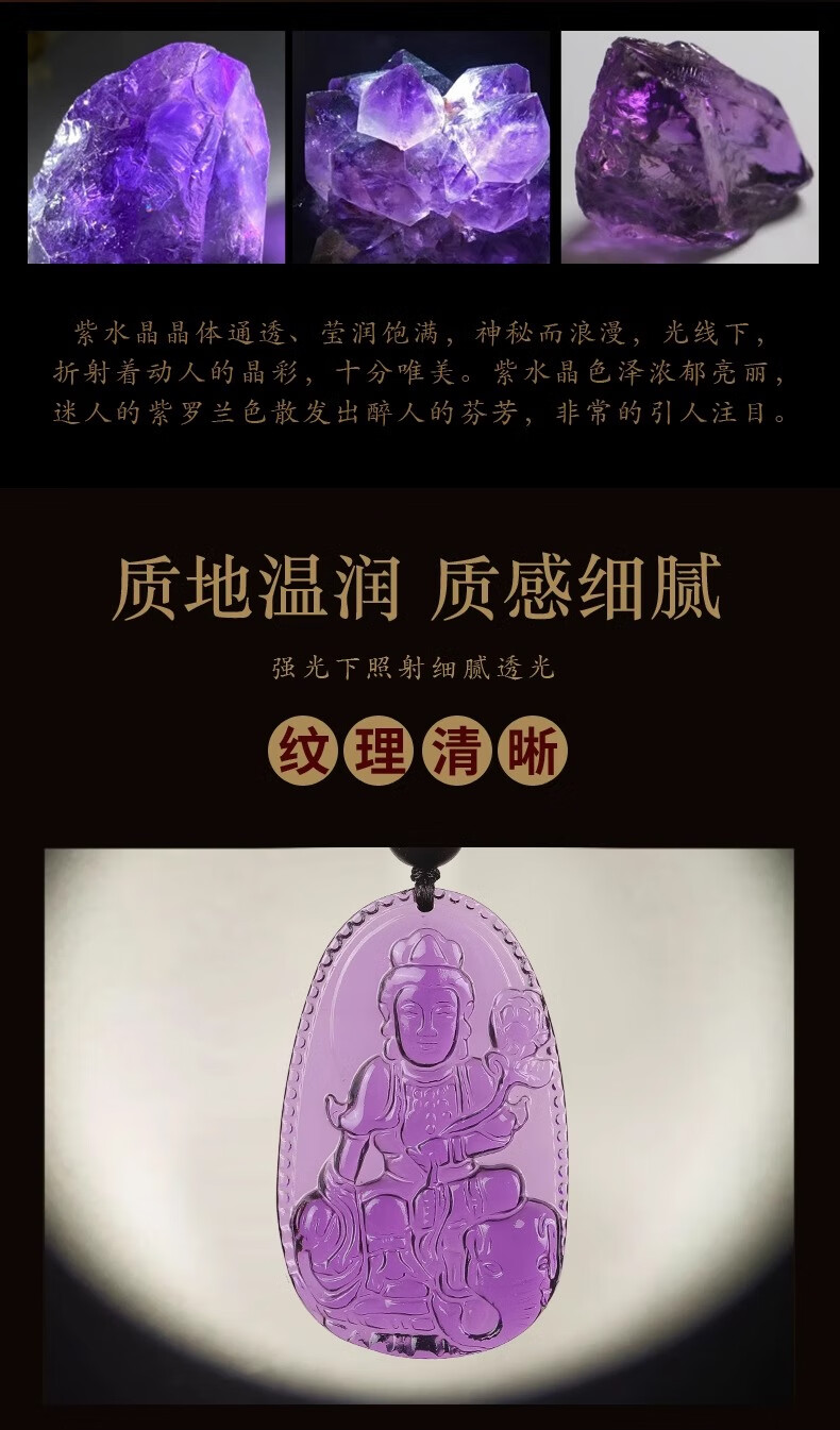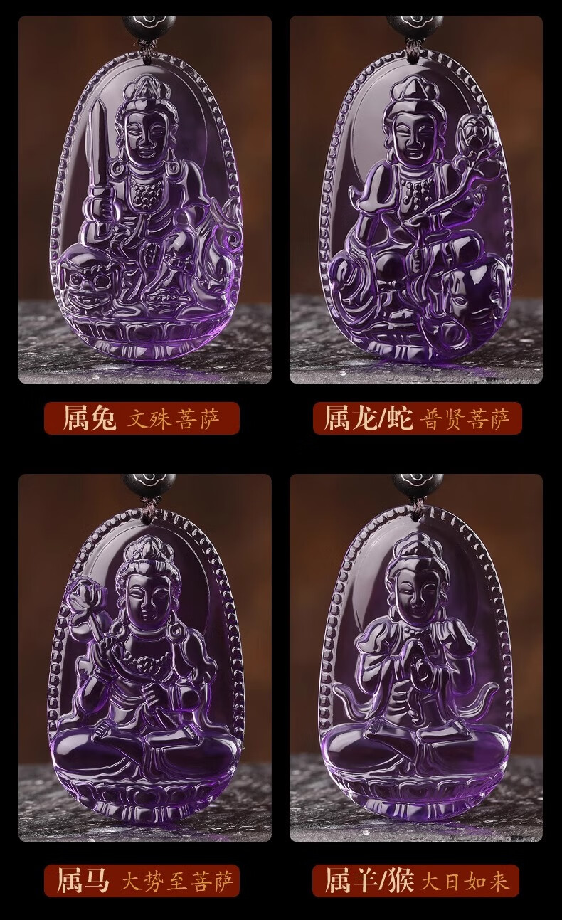 BOSFRU Amethyst Necklace Puxian Bodhisattva Pendant Dragon Zodiac Year Amulet Snake Guardian Pendant Men and Women Gifts Ox and Tiger Void Tibetan Bodhisattva