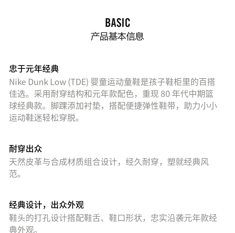 Nike baby easy to put on and take off flat sneakers winter boys and girls sneakers NIKE DUNK CW1589 100 white/black/white 27