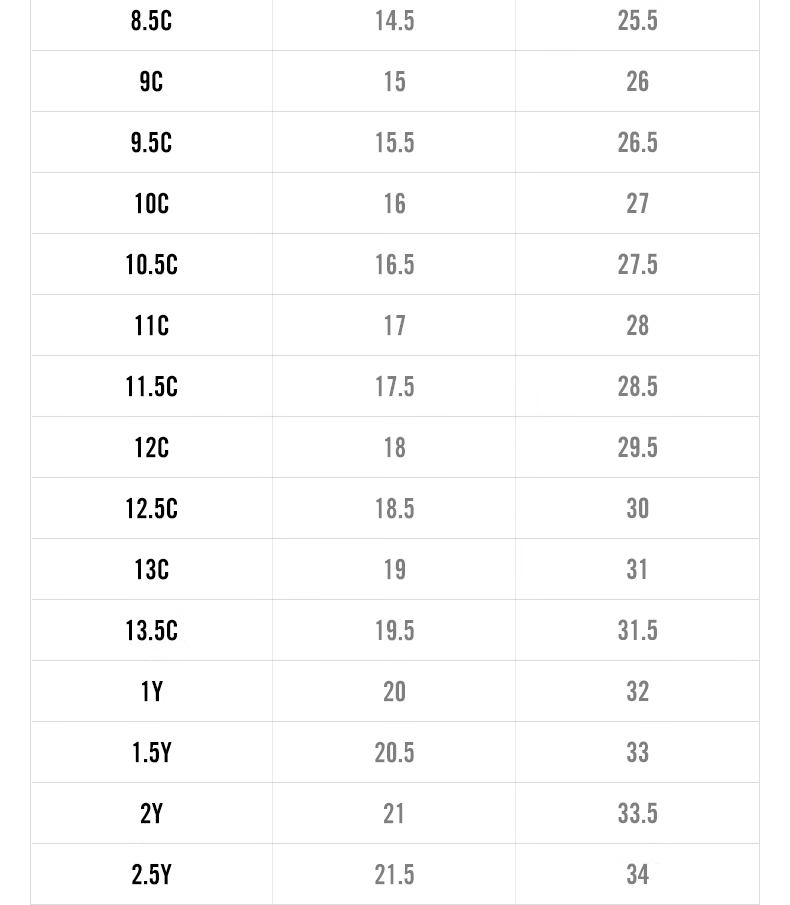 USA 5 5.5 6 7 7.5 8.5 9.5 10 10.5 12 13 14 15.5