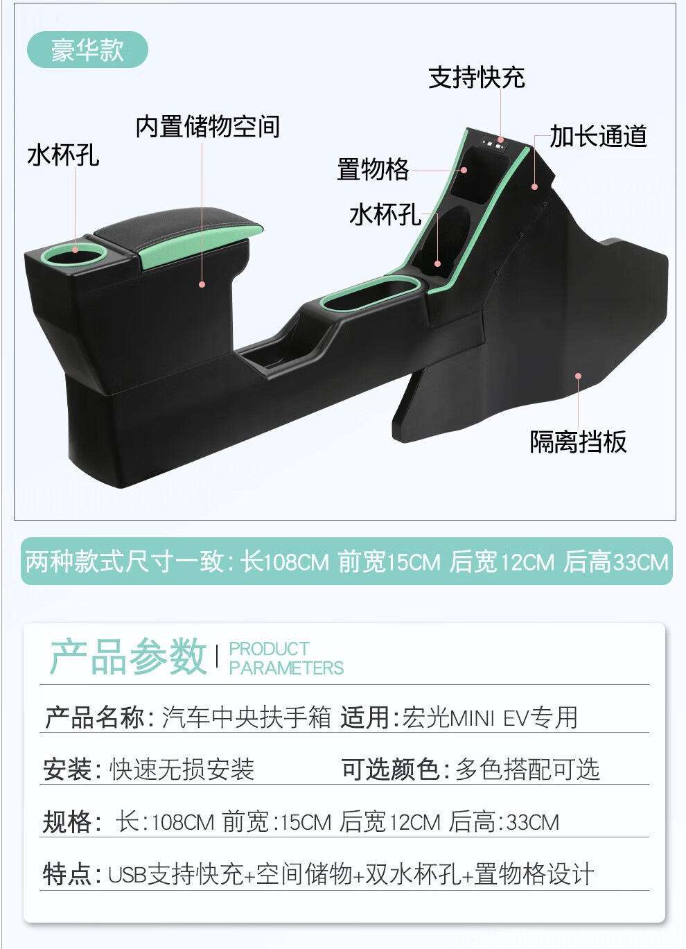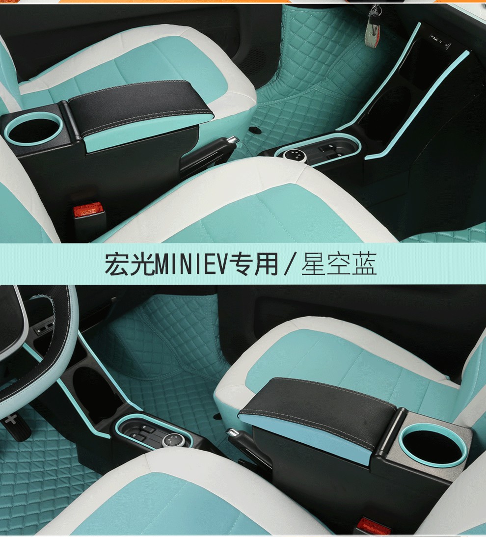 Shunike old model 20-23 years Wuling Hongguang miniEV armrest box mini modified interior first and second generation macaron armrest extended model + fast charging - starry sky blue old Hongguang miniEV battery life 120/170 kilometers